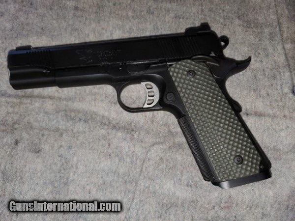 Description: Guns Listing ID: 380332 Nighthawk Custom GRP 1911 chambered in 10mm Auto. Target crown barrel, factory installed Heinie Straight Eight tritium night sights. Comes with original carry case, five 8 round Metal Form magazines, two 9 round Ed Brown magazines. Purchased factory new, less than 400 rounds thru this pistol FEATURES: Finish: black nitride Forged government size recon frame and 5" barrel Match grade .45 ACP barrel Heinie Ledge Straight Eight Tritium night sights G10 Gator Back grips with Nighthawk Custom logo 25 lines per inch checkered front strap and mainspring housing Shortened slide stop and beveled frame Lightweight aluminum Nighthawk Custom tri-cavity trigger Checkered recoil spring plug Completely dehorned for comfortable carry Ultra hi-cut front strap Hand beveled edges Tuned and polished extractor 3.5 to 3.75 pound trigger Polished feed ramp Throated barrel Hand polished ignition components SOLD Manufacturer: NIGHTHAWK CUSTOM Model: GRP 1911 Caliber Info: 10 MM Condition: Used - Non-Certified Barrels: 5 BARREL Finish: BLACK |