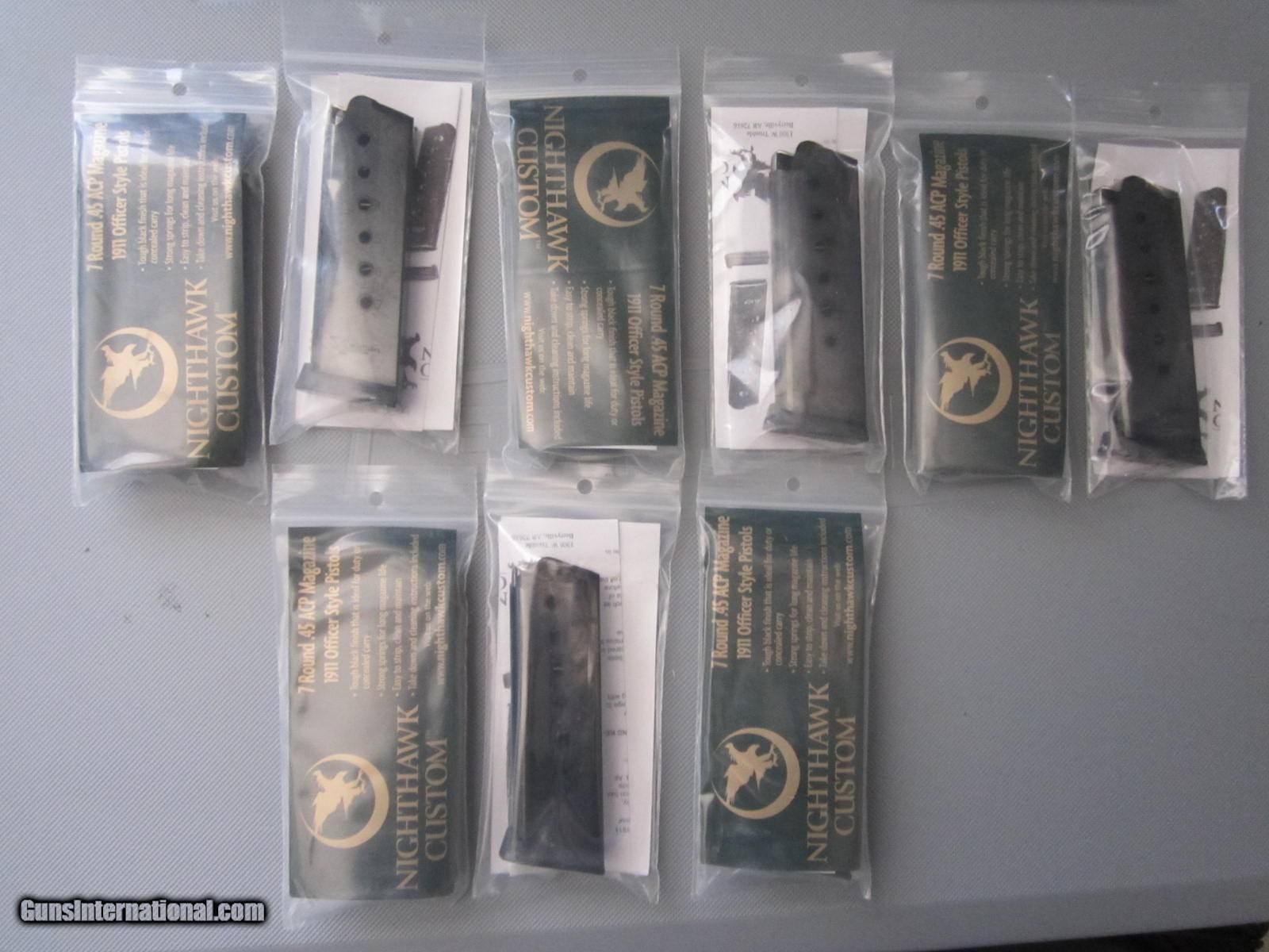 Description: For your consideration is a Nighthhawk Custom T3 1911 in .45. This pistol comes as part of a HUGE package. The pistol was ordered as a custom build from Nighthawk with every upgrade available at the time. The T3 line has an officer frame and a 4.25" barrel. This pistol has seen very little use and is in excellent condition. The Pistol: Bull Barrel Upgraded Slide without Nighthawk Billboard Upgraded checkering on front strap Upgraded checkering under trigger guard Upgraded Extractor Upgraded rear slide serations Upgraded Ambidextrous safety Upgraded Heine sights front and back (night sights) Nighthawk Diamond Black finish The Extras: (12) 18# Commander Recoil Spring (2) Spring Kits (9) Nighhawk Custom magazines Milt Sparks Holster Extra Upgraded AFTEC extracor Extra Upgraded hex head grip screw kit Extra Heine front and rear sights (night sights) The pistol has a very low round count. Unfortunately, the previous owner was a little rough on his initial takedown and scratched the finish around the notch in the slide (see the pics). Other than that, the pistol is near mint. The pictures make the mar look worse than it does in person. The pistol comes with all the original paperwork and bag from the factory. I would like $2175 shipped. Please make sure your FFL will accept delivery from and individual or add $25 to price. SOLD |
