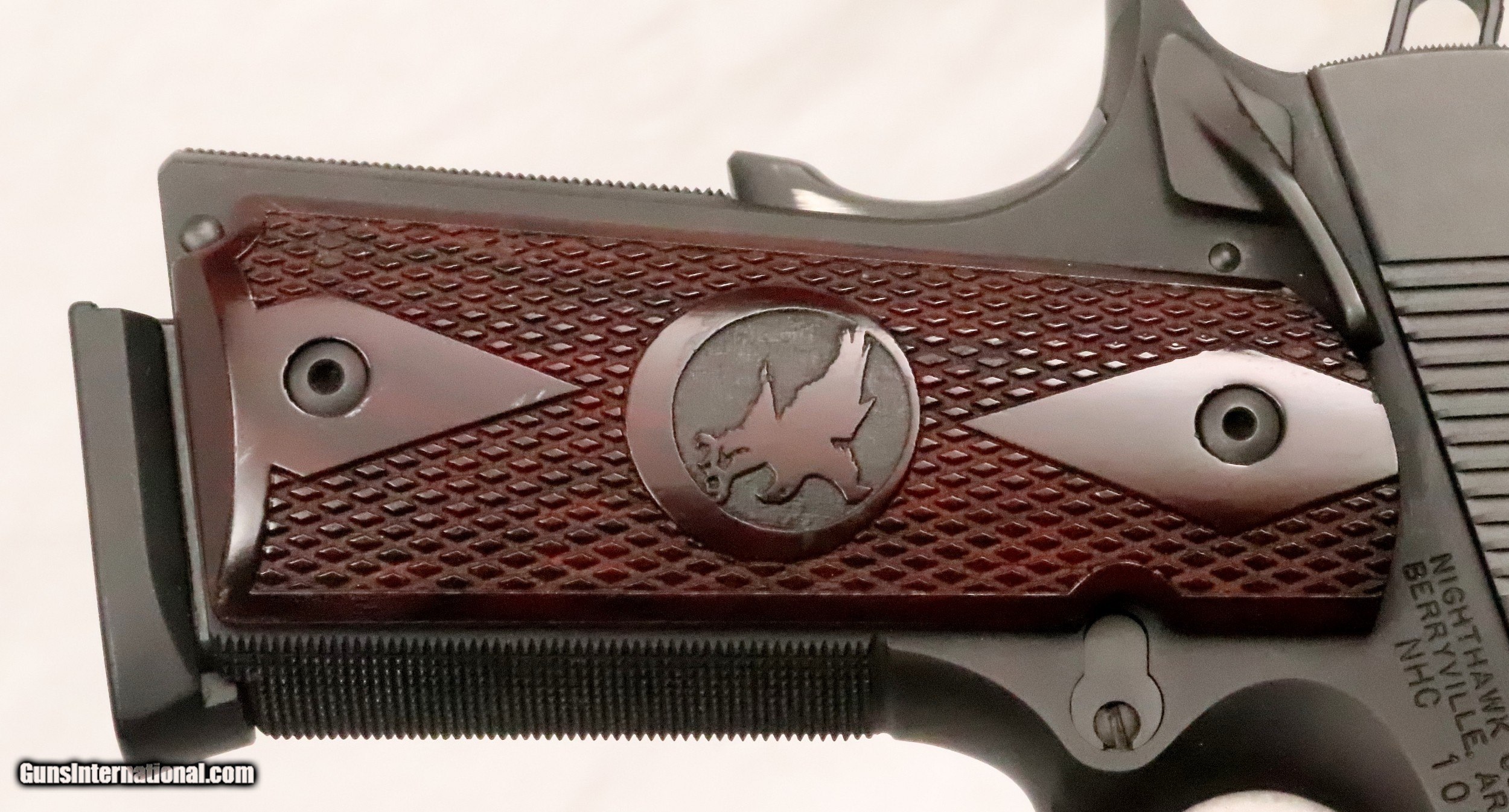 Description: SOLD...PENDING RECEIPT OF FUNDS..........This custom pistol is in excellent +++ condition, apparently test fired only. It has Trijicon Night Sights, Ambidextrous Safety and the level of Quality that NightHawk is known for. It will be shipped with the NIGHTHAWK CUSTOM case, 2 Mags. and paperwork as shown. A precision pistol that may become a family heirloom. Cal. 45 ACP with a 4 ¼” barrel. Serial Number NHC 10750. FFL Required. Beaver Creek Arms TERMS & CONDITIONS Objective: As a collector of 35 years and Licensed Firearms Dealer since 1989 I have a clear definition of a satisfactory transaction. I will be paid as we agreed to, and you will be satisfied with your purchase. My goal is to establish a client list of satisfied repeat customers who will recommend me to other collectors. It’s just that simple. Exiled Saudi princes with secret funds needing change from an over paid purchase need not apply. Notice: ALL Federal, State, & Local firearms laws will be followed. I will take NO shortcuts in the process of a legal sale or transfer, so please don’t ask. SHIPPING: Normally shipments are made via U.S.P.S. Priority Mail, Insured, with Signature required. Packing, Shipping and Insurance cost for this handgun is $40.00. Checks to be made out to: Steve Clark Mailed to: 380 Beaver Creek Rd. Dillsburg PA 17019 FIREARMS: Modern firearms, post 1898, can only be shipped to a Type 01 Federal Firearms License address. Curio-Relic firearms, as defined by the BATF list, can usually be shipped to a Type 03 Collectors License address. Some states have additional restrictions such as CA, CT, DC, IL, NJ and NY. A signed valid FFL license copy either mailed or emailed will be required for shipment to only the license address. Antique firearms, pre 1898 do not require a Federal License. For purchase, a copy of a Government Issued Identification (Drivers License, Etc), showing date of birth and current address will be required. GUARANTEE: Your complete satisfaction is assured, see objective above. If you are not satisfied, please contact me within 3 days of receipt. Please don’t fire the weapon, safety, function and accuracy are NOT Guaranteed. Any weapon offered by Beaver Creek Arms is never test fired nor is there any representation the gun is functional and safe to fire. These guns are sold for collectors and only represented as used firearms that must be checked by a competent person, observe all the necessary safety precautions prior to attempting to load and fire one of these weapons RETURNS: Returns must be made within 3 days of receipt. They must be received in exactly the same condition with no parts exchanged. If it has been altered, damaged, or fired, a refund will not be made. Packing, shipping and insurance cost will not be refunded. All layaway purchases are returnable for merchandise credit only. PAYMENT: Bank check, Personal check, and Money Orders are preferred. Visa and MasterCard are accepted with a 3% processing fee. For Visa and MasterCard orders please provide the account number, code number, expiration date, name on card, phone number and card billing address. This information can be phoned in, or E-Mailed. All orders must be paid in advance, C.O.D. orders are not accepted. Checks, both Bank and Personal must clear before the order will be shipped, usually a 2 week delay. LAYAWAYS: A 20% deposit is required. Balance is due in 30 days. Deposits are non-refundable and are forfeited after 40 days. Layaway sales are returnable for merchandise credit only. SALES TAX: Pennsylvania state sales tax is 6% for in state purchases. The payment of other states sales tax, if applicable, for shipped items is the buyers responsibility. DISCREET: Client information will remain Confidential. Your privacy is protected. SOLD |
