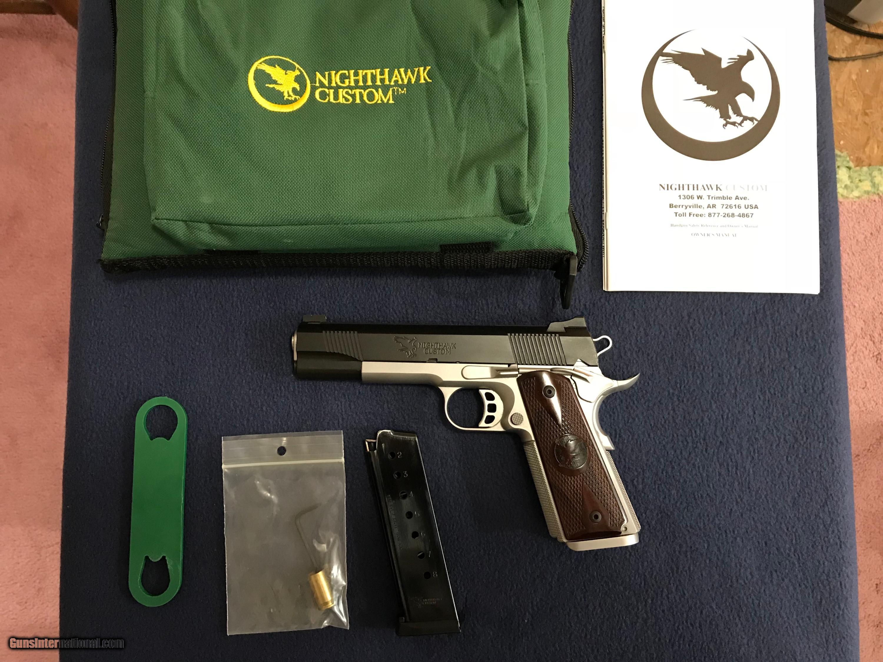 Description: 5", Heinie Rear, Trijicon Front, original Nighthawk magazine, sweetest trigger pull on any firearm I have ever had or tried. Close to ANIB, excellent condition. Any questions just ask. This has been a mostly unfired Safe Queen for me. Selling from personal collection to feed a Side by Side addiction, this beauty deserves a new home. Life is short, own one of the best 45s there is once in your life at least! Shipping my FFL to your FFL to Lower 48 $50, AK, HI will be actual charges, Insurance required and additional. NO Sales to CA, MA or any other prohibited states. If unsure check with your local Law Enforcement or Dealer. 3 day Non-Firing inspection - you will just be required to pay return shipping and my FFL transfer. USPS Money Orders Only Please. Don't worry - if you want one of these this is a peach, as nice a "used" as you'll see. SOLD |