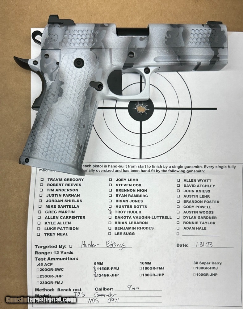 Description: Nighthawk Custom TRS Commander 9mm Artic Tundra 1911 2011 0476 - Factory New SOLD |