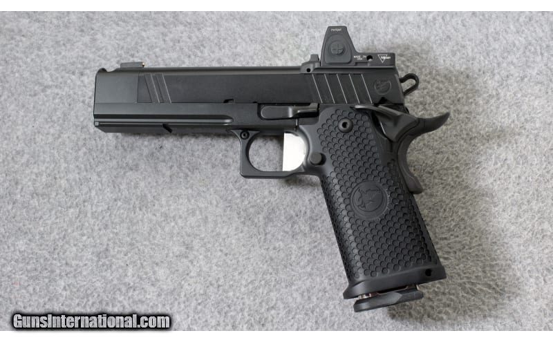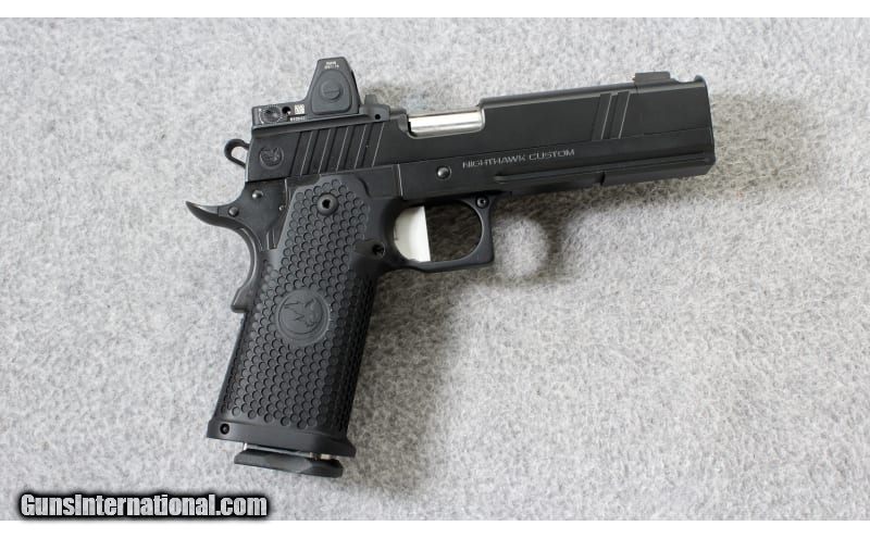 Description: The Nighthawk Custom Tactical Ready Series Comp pistol is built on a full size 1911 double stack frame. The frame is a solid aluminum billet machined a pistol with 17 round capacity. This a a quality-built pistol for the serious shooter that demands the best in performance. 9mm Parabellum SOLD Metal Condition: Excellent Bore Condition: Excellent with signs of use Barrels: 5 inch barrel Triggers: Single action Weight: 43 oz. Sights: "Trijicon RM06 2PE1:19 Optic, square notch rear sight with gold bead front Item Location: Lehi, UT |