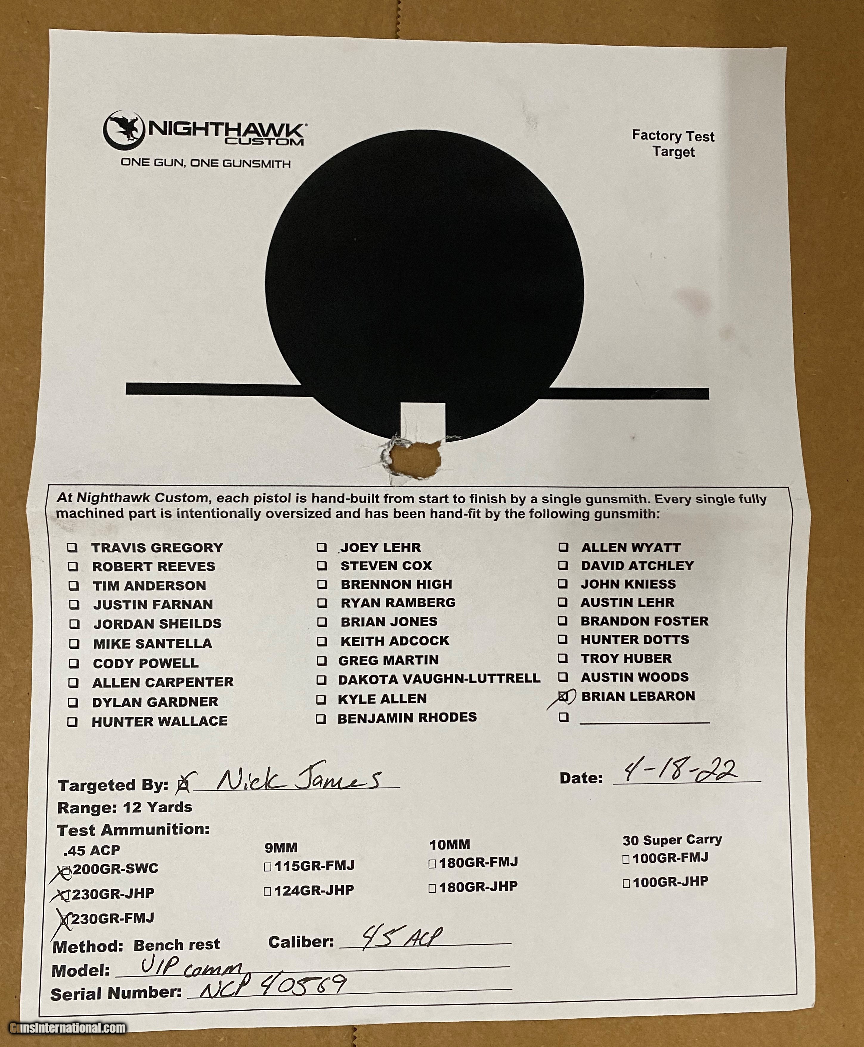 Description: Nighthawk Custom VIP Black Commander 45 ACP - Factory New SOLD |