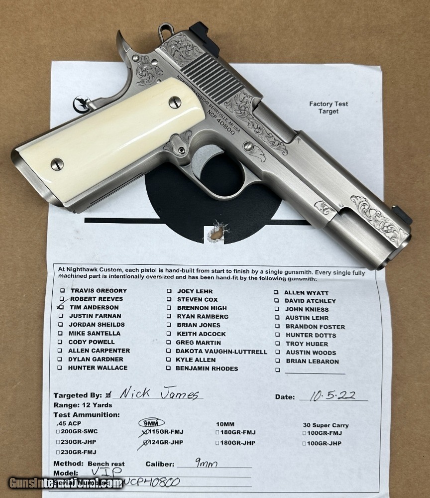 Description: Nighthawk Custom VIP Government 9mm Nickel Engraved Giraffe Grips - Factory New SOLD |