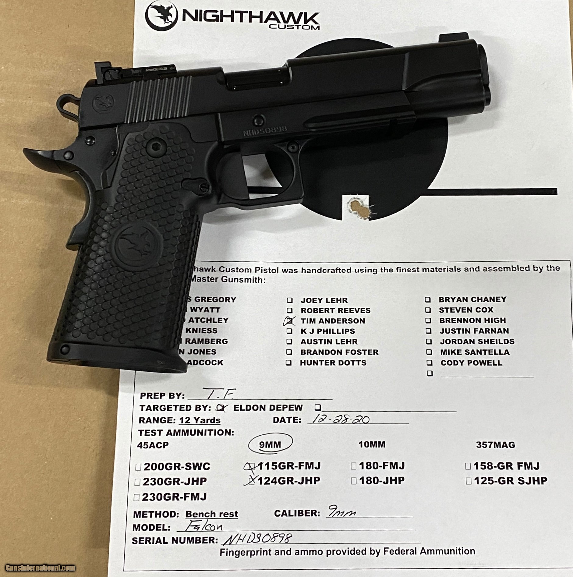 Nighthawk Falcon 9mm Government 1911 Double Stack Blackout 9234