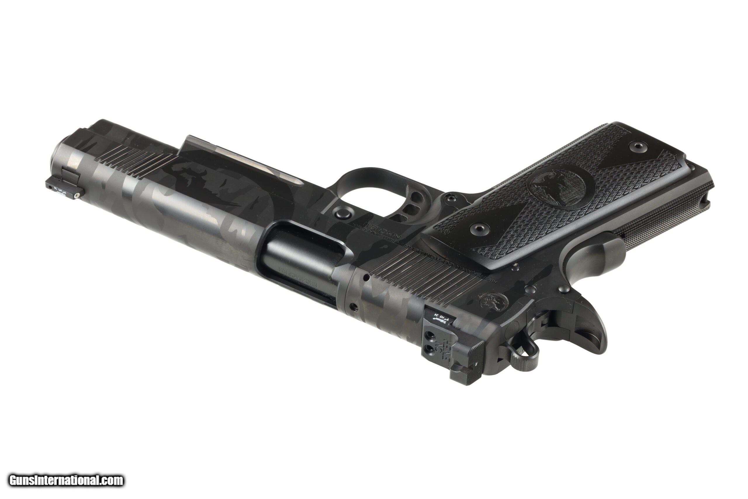 Description: The Nighthawk Custom GRP, or Global Response Pistol, serves as the entry-level model in the company's lineup but is far from basic in its features and quality. Each GRP, like all Nighthawk Custom pistols, is meticulously hand-fitted by a single gunsmith, following the company's "One Gun, One Gunsmith" philosophy. This approach ensures that every part of the pistol is assembled with care and precision, resulting in a firearm of exceptional quality. This example has been outfitted with the Shadow Camo upgraded finish and a set of checkered ebony grips. Manufactured in: USA Hand: Right Hand Metal Finish: Original Barrel Length: 5" Barrel Condition: New Stock Finish: Original Stock Condition: New Grip: Pistol Manufacturer: Nighthawk Model: GRP GOV Caliber Info: .45 ACP Condition: New Metal Condition: New Action: Semi Automatic Triggers: Single Finish: Original Weight: 2.4 lbs Case: Maker's Canvas Case Price: $4,899.00 Contact Seller |