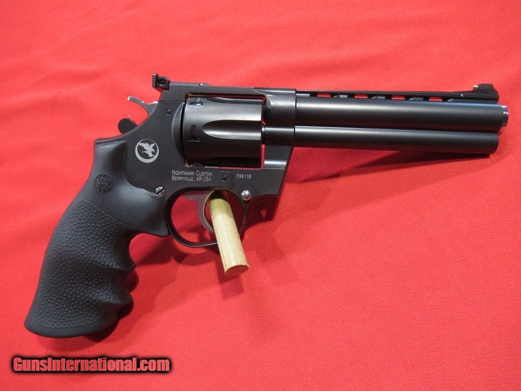 Description: Nighthawk/Korth Mongoose 357 Magnum 5.25" DLC Black (NEW)-- Nighthawk Custom/Korth Mongoose: This revolver frame and internal parts are machined from the finest billet steel before being hand polished and fit to ensure unequaled performance. The finish is a sleek looking black DLC (Diamond Like Carbon) coating that is extremely thin and ultra durable, four way adjustable rear sight, gold bead front sight, skeletonized hammer, easy access cylinder release to make cleaning and/or caliber changes simple and fast, comes standard with Houge finger groove rubber grips. Includes owner's manual, wrench for sight adjustment, and wrench for disassembly. This revolver has a ventilated top rib. This firearm is in stock for immediate delivery. SOLD |