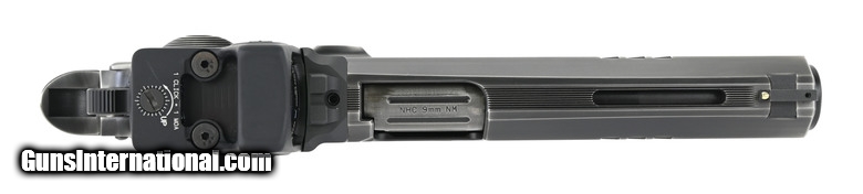 Nighthawk President 9mm caliber pistol. Top of the line model with Trijicon RMR, custom slide cuts, Tac rail and gold bead front sight. Excellent condition with bag.
