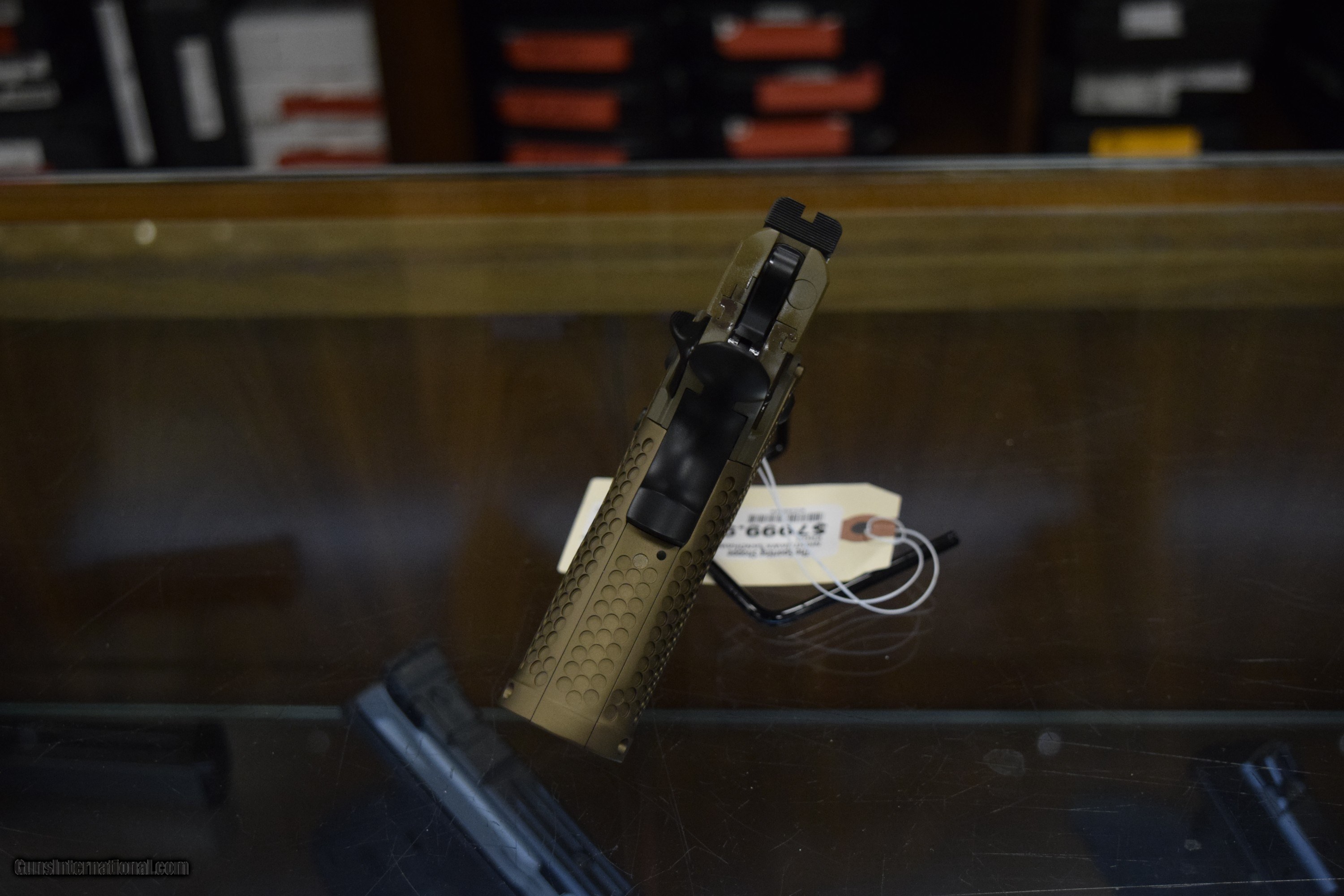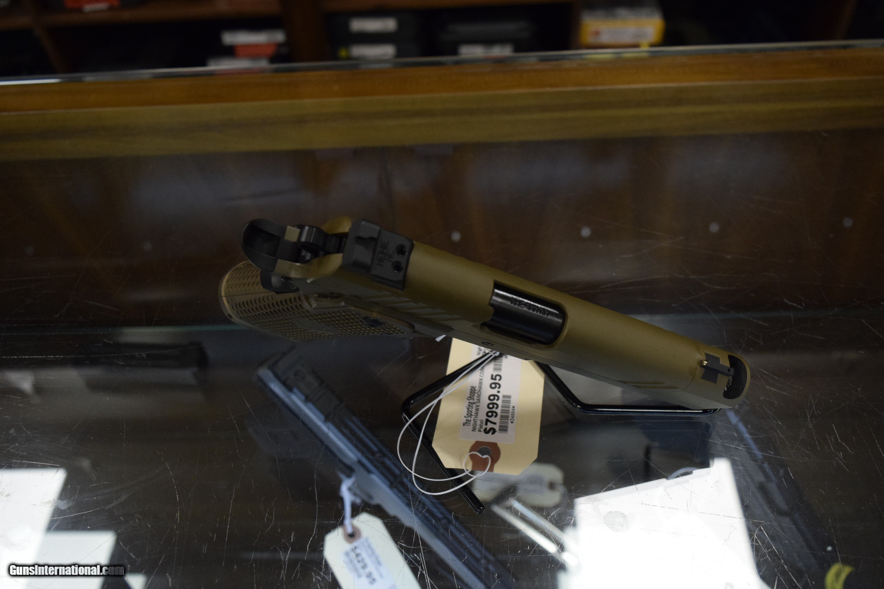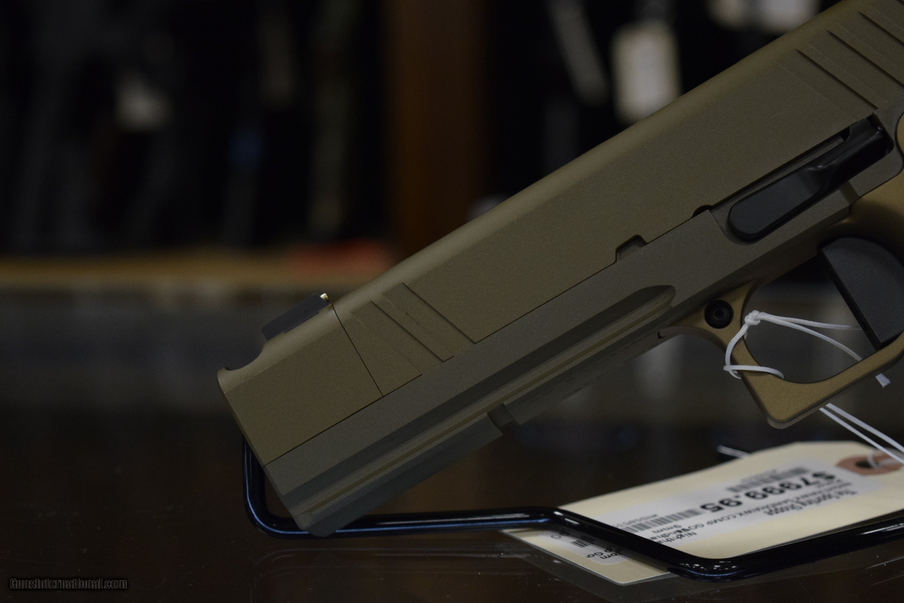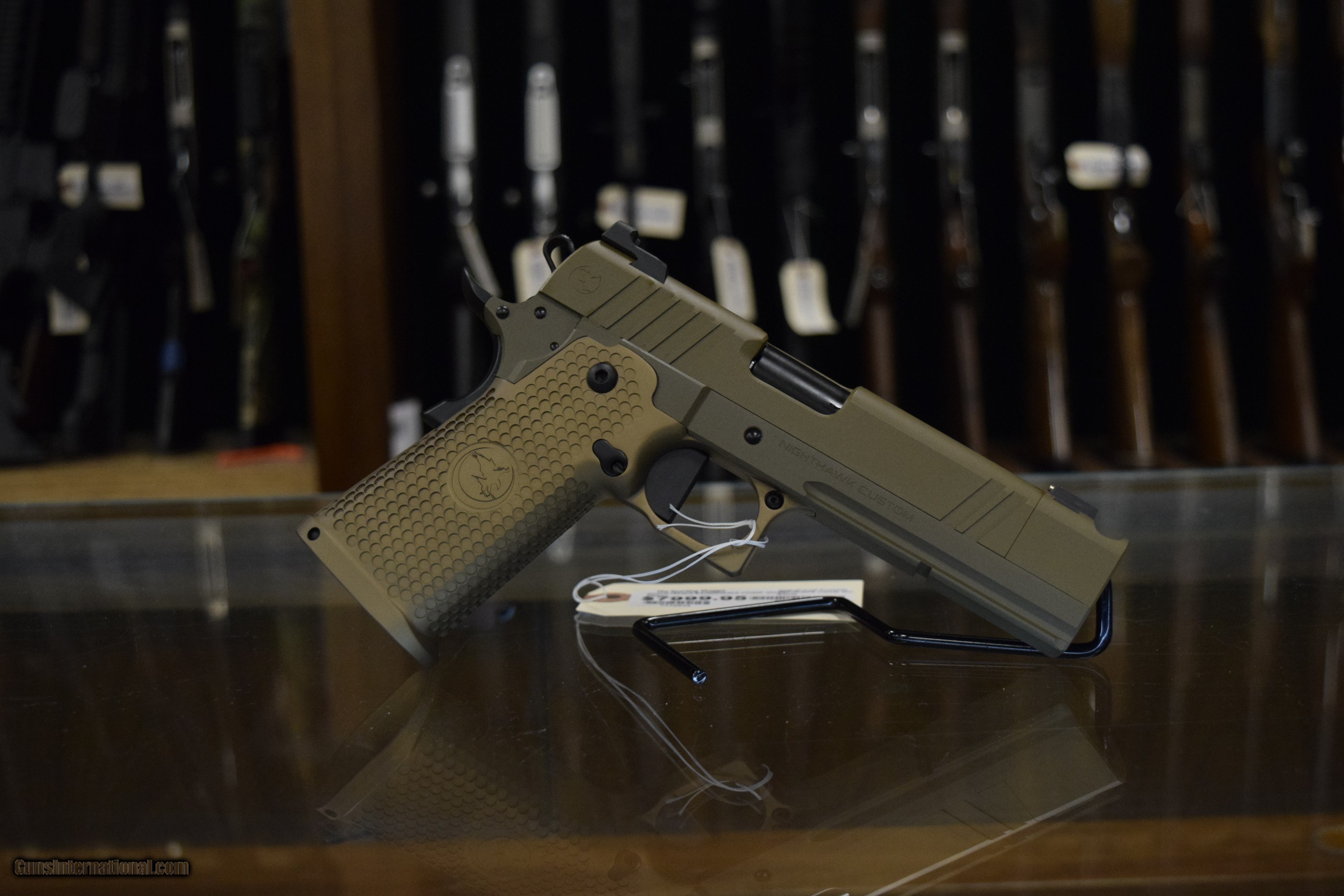 Description: The pinnacle of precision and performance: the Nighthawk Custom Sand Hawk double stack 1911. Meticulously crafted to redefine excellence in firearms, this masterpiece seamlessly blends innovation with tradition, delivering an unparalleled shooting experience. Crafted with expertise, every component of the Sand Hawk is fully machined from billet steel and meticulously hand-fit by a single gunsmith. Engineered for optimal performance, the Sand Hawk features a billet steel double stack frame and anodized aluminum grip. Designed with a custom Cerakote finish, the Sand Hawk boasts three shades of Flat Dark Earth (FDE) and tan anodize, elevating aesthetic appeal while ensuring durability in any environment. Equipped with a single port compensator, the Sand Hawk effortlessly tames recoil, providing the ultimate control and extreme accuracy with each shot. Experience the single port compensator, allowing you to maintain focus on your target without compromise. At the forefront of precision shooting is the 14k gold bead front sight, offering excellent visibility and alignment. Combined with a full-length dust cover, the Sand Hawk achieves great balance, enhancing stability and reducing muzzle flip for swift follow-up shots. With a capacity of 17+1 rounds of 9mm, the Sand Hawk ensures you're always prepared for whatever the situation demands. You can also add the Interchangeable Optic System, ambidextrous safety, aggressive grip, fluted barrel, French border, etc. Experience the pinnacle of precision with the Nighthawk Custom Sand Hawk. It’s more than a firearm, it's a legacy of hand-crafted excellence.