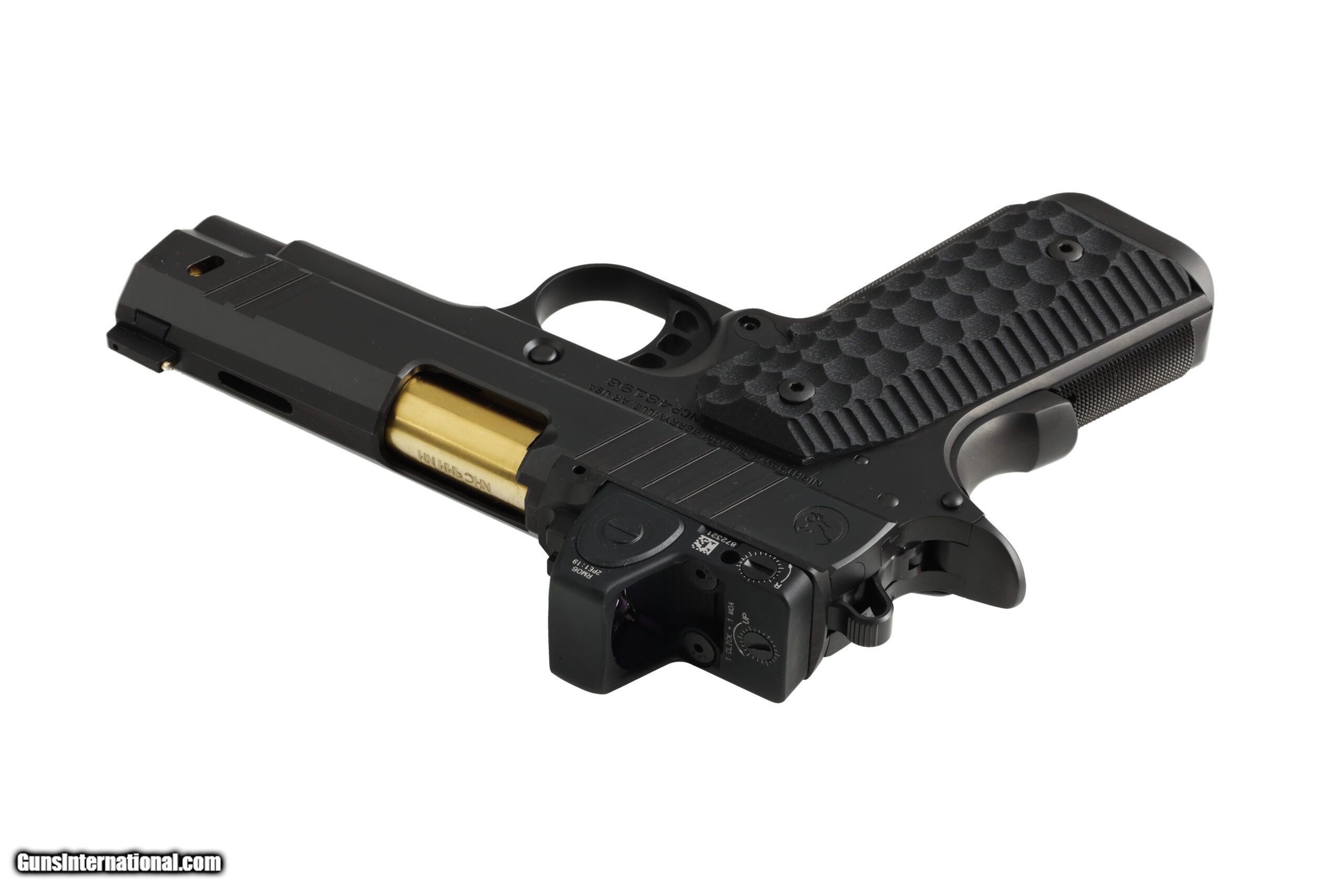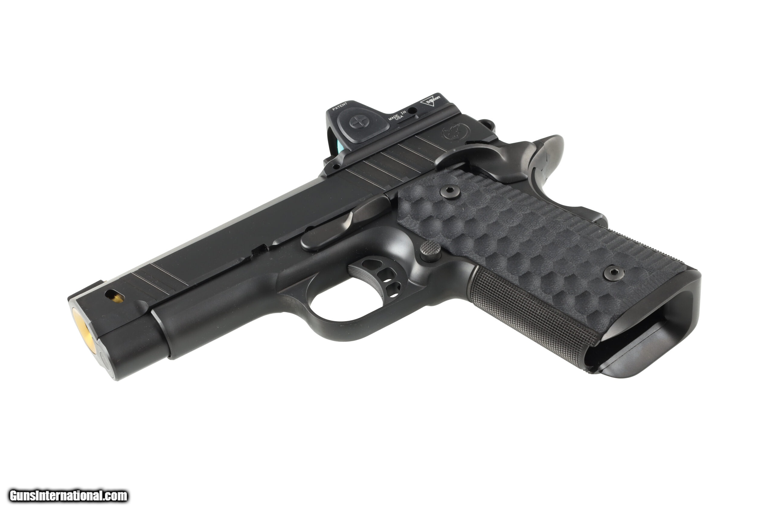 Description: The Treasurer, the latest addition to the Boardroom Series of 1911 pistols, represents a pinnacle of craftsmanship and performance, tailored for discerning shooters seeking excellence in their firearms. Built on an officer frame and featuring a 3.8" bull barrel chambered in 9mm, the Treasurer offers a balance of compactness and power, making it suitable for a variety of shooting applications. The heavy angle cuts in the slide not only enhance the pistol's aesthetics but also aid in faster cycling, catering to the needs of competitive shooters who demand rapid and precise performance. One of the standout features of the Treasurer is its Gold Titanium Nitride crowned barrel, visible through windows in the slide. This distinctive touch not only adds a touch of luxury but also reflects the precision engineering and attention to detail that went into its design. Manufactured in: USA Hand: Right Hand Action Finish: Plasma Black DLC Metal Finish: Original Barrel Length: 3.9 Inches Barrel Condition: New Stock Finish: Original Stock Condition: New Grip: Pistol SOLD Manufacturer: Nighthawk Model: Treasurer Caliber Info: 9x19 Condition: New Metal Condition: New Action: Semi Automatic Triggers: Single Finish: Original Weight: 2.2 lbs Case: Maker's Canvas Case |