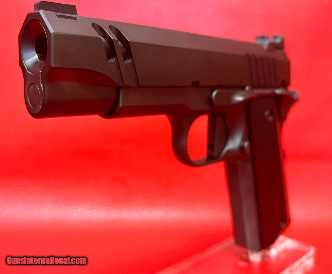 Description: JUST IN AT ROYAL SPORTING ARMS! The Tri-Cut Carry is a custom design that came from one of our innovative gunsmiths as part of his successful application into the American Pistolsmith's Guild. It is a 9mm, commander-sized 1911 pistol, built around a tri-cut, angled design. The slide, frame, and grips have all been tri-cut for a futuristic design. These unique cuts not only add to the appearance, but they make the gun feel thinner and more comfortable in your hand. A pneumatic stippling device is used to hand stipple the front strap, mainspring housing, bottom of the trigger guard, the flattened trigger, slide stop, and magazine release to achieve a cutting-edge design. To top off this distinct model, the polished barrel gleams through the two cuts toward the front of the slide. FEATURES:
