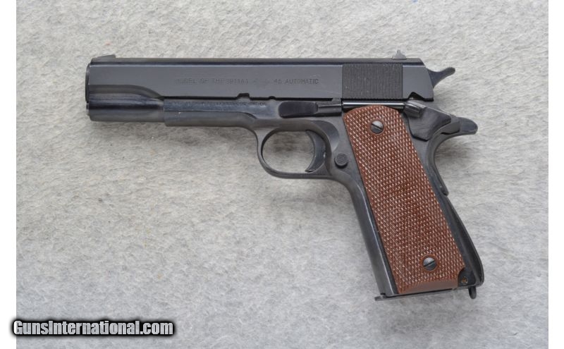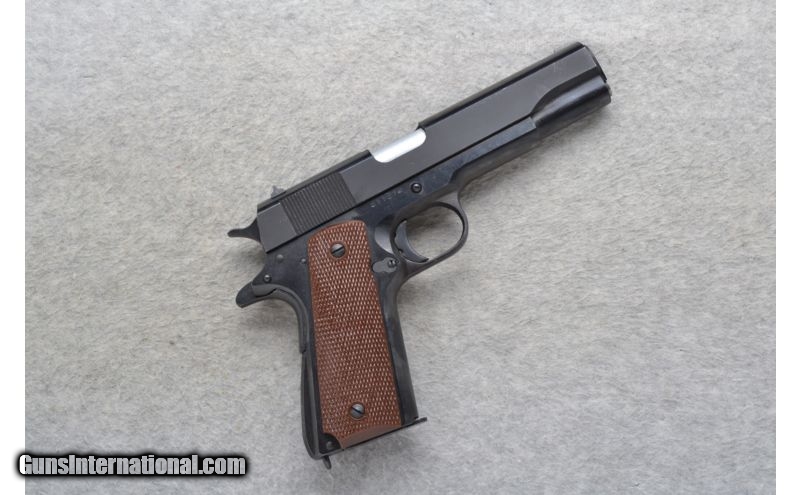 Description: This Norinco Model 1911A1 is a semi-auto pistol in .45 Auto Cal. It has a 5 inch barrel, two tone black slide and diamond checkered hard brown plastic grip panels. In overall good condition it comes as is with one magazine. SOLD Manufacturer: Made in China. Caliber Info: .45 Auto Chambers: 7 shot magazine. Metal Condition: Good with minor handling marks. Bore Condition: Very good. Barrels: 5 inches. Black slide. Triggers: Grooved. Solid. Stock: Diamond checkered hard brown plastic. Weight: 42 oz. Sights: Blade front. Notch rear. 3 white dot. Item Location: Richfield, WI |