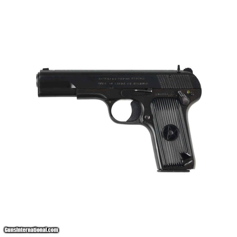 Description: Very clean pistol with factory box. Manufactured in: China Hand: Right Hand Action Finish: Blue Metal Finish: Original Barrel Length: 4.5 Inches Barrel Condition: Very Good SOLD Manufacturer: Norinco Model: 213 Caliber Info: 9x19 Condition: Preowned Metal Condition: Very Good Action: Semi Automatic Finish: Original Case: Factory Box |