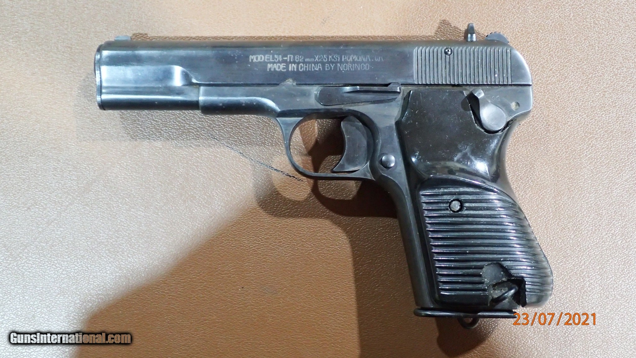 NORINCO Model 54  Description: Guns Listing ID: 318326 This gun is on consignment from a client. SOLD Manufacturer: NORINCO Model: Model 54 Caliber Info: 7.62X25 Condition: Used - Non-Certified Barrels: 4.5 BARREL Finish: BLACK |