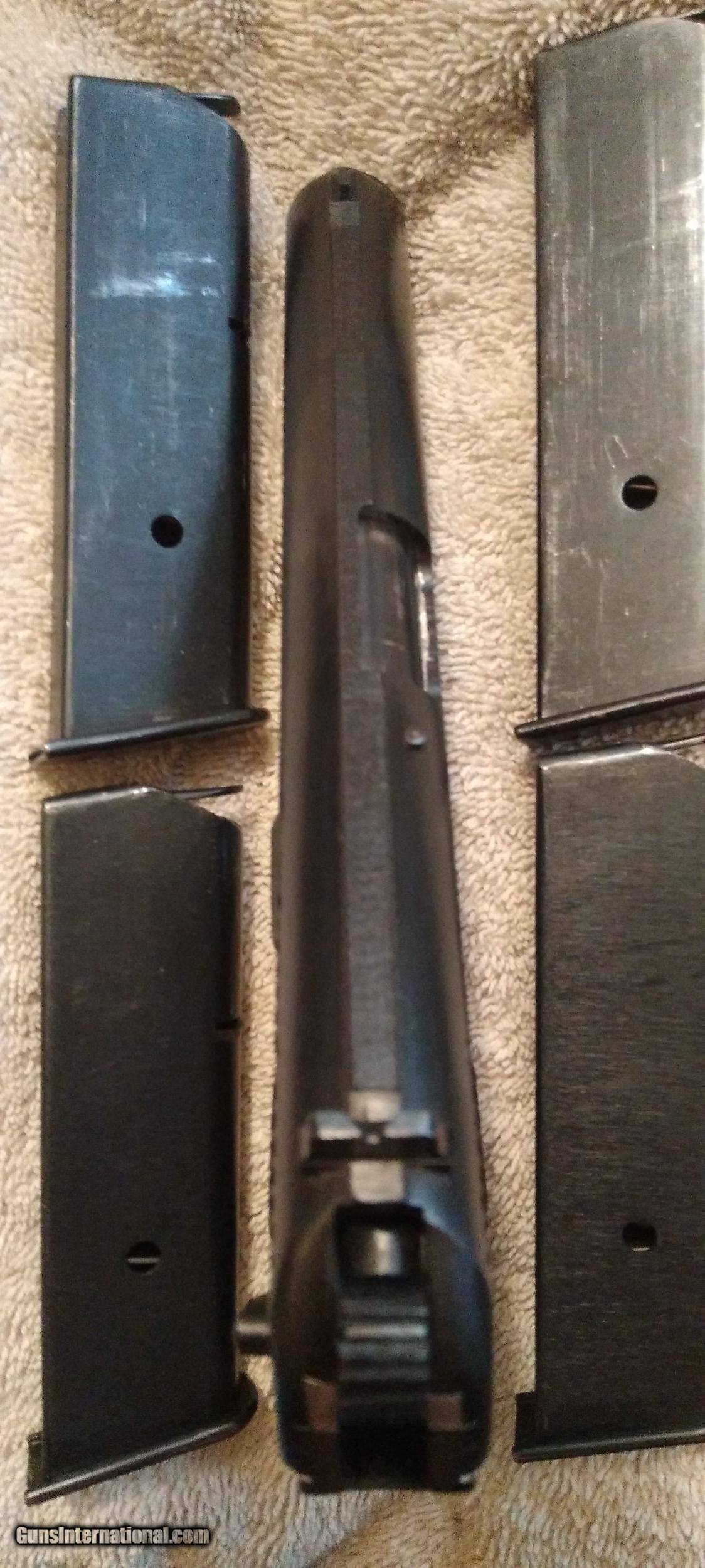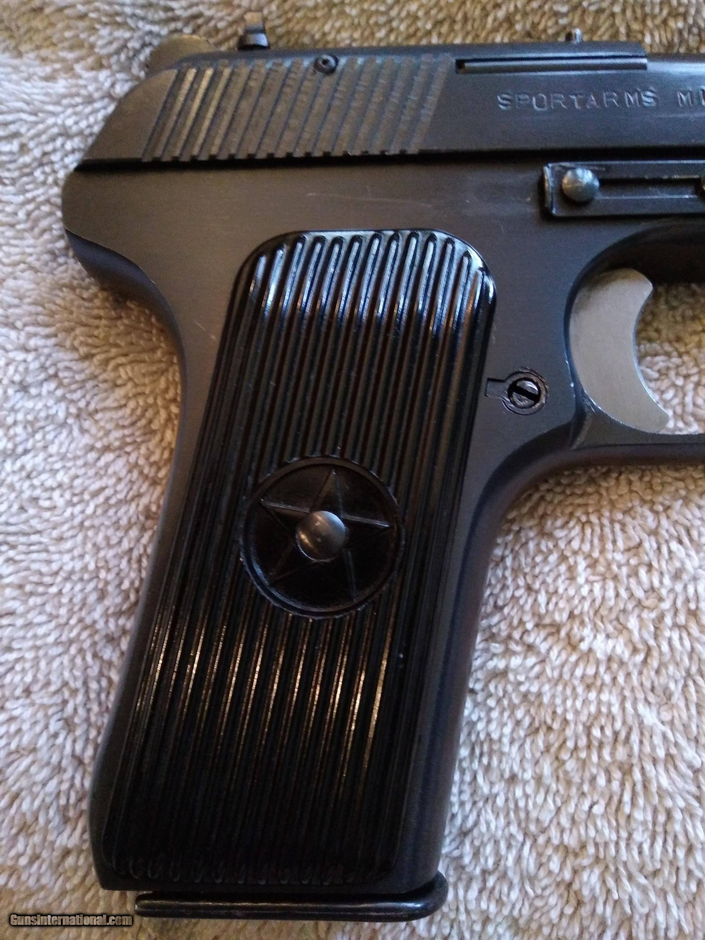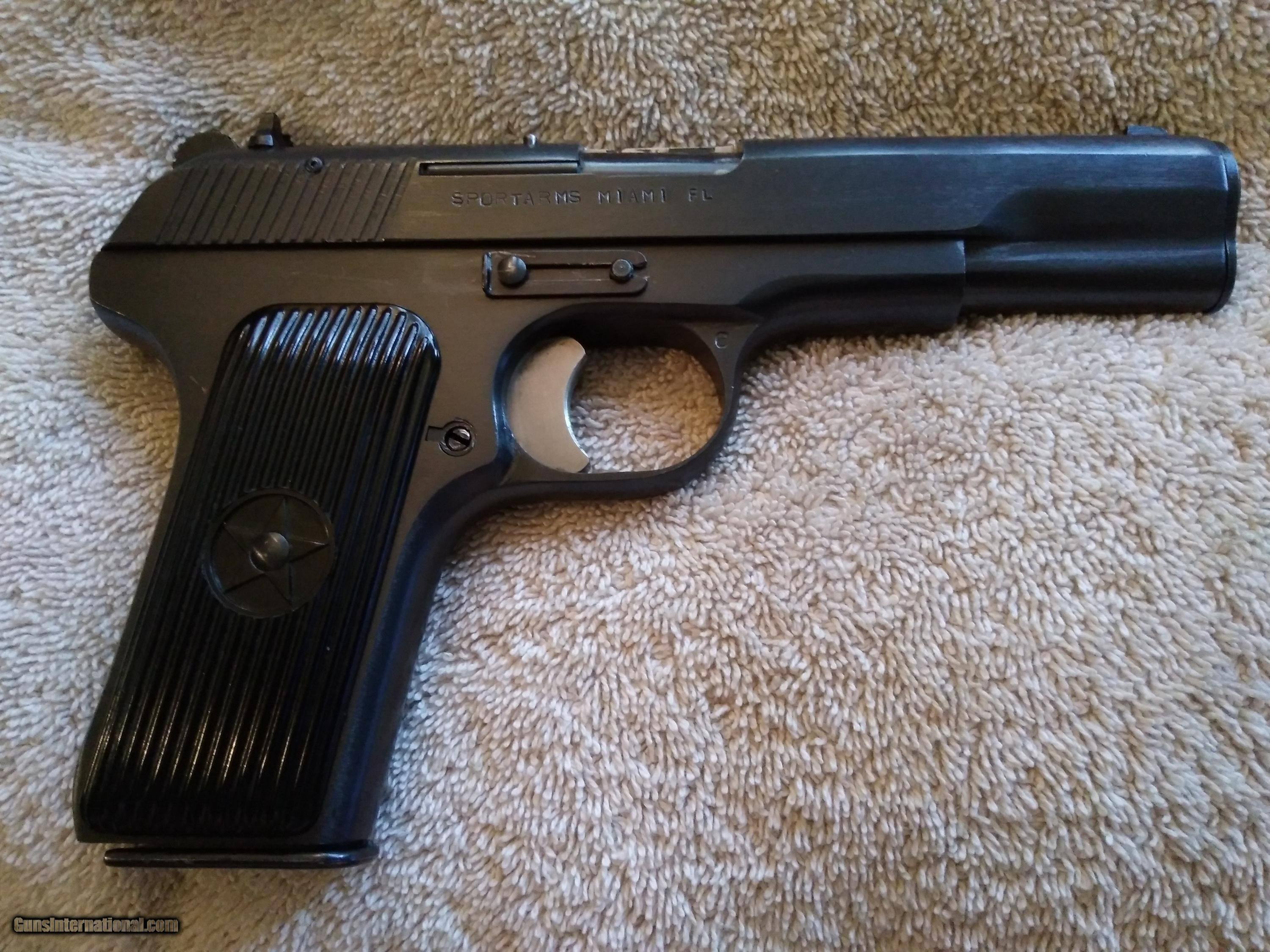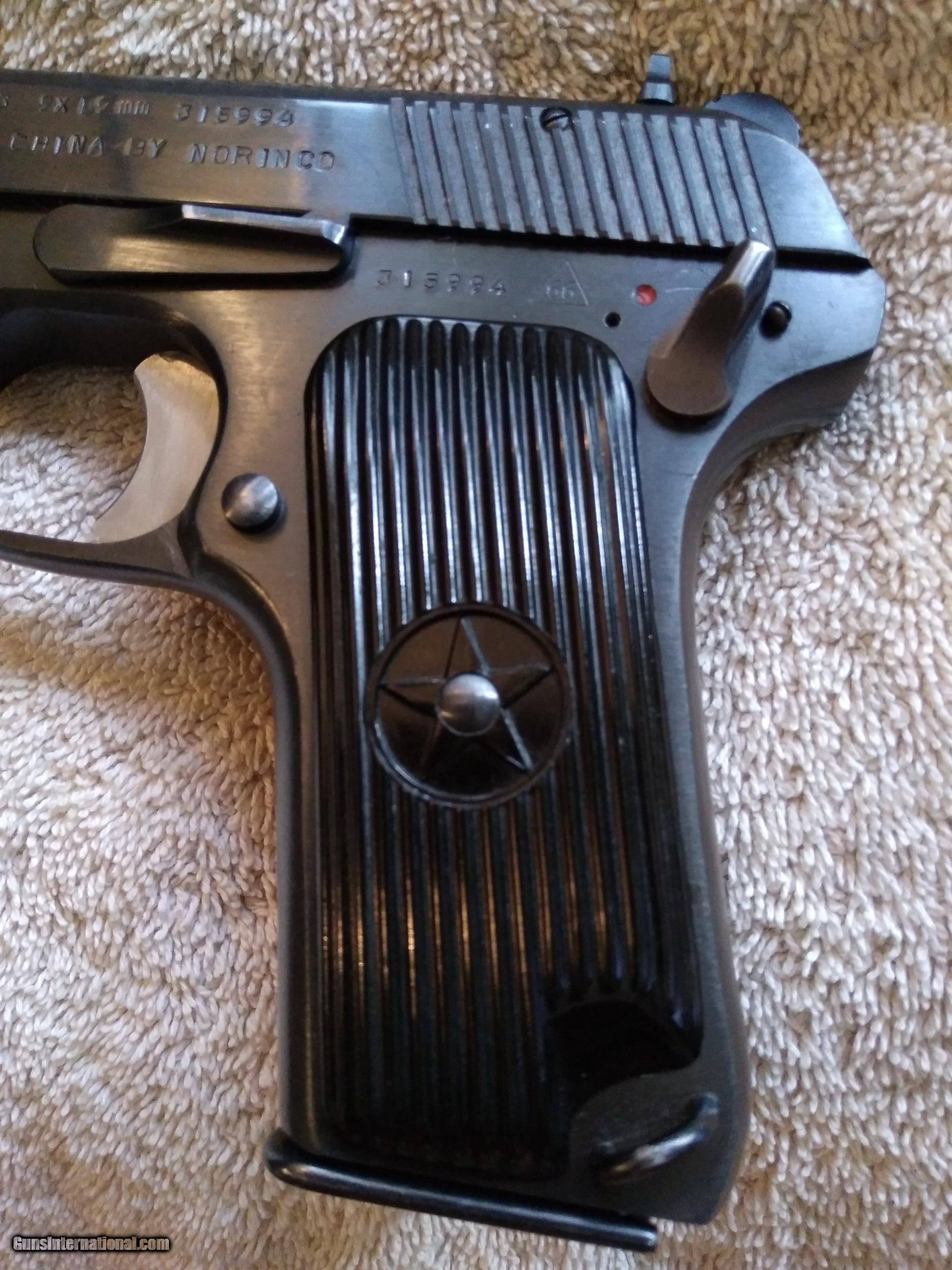 Description: SOLD SOLD SOLD CHINESE NORINCO M213 TOKAREV COPY S/N 315994 CALIBER 9MM S/N MATCHING ON MAGAZINE SLIDE-FRAME-BARREL BUSHING HAMMER ASSEMBLY AND BARREL CHINESE COPY OF RUSSIAN TT 33 RUGGED RELIABLE ACCURATE ALL STEEL CONSTRUCTION IMPORT REQUIRED THUMB SAFETY ON REAR OF LEFT FRAME IMPORT MARKED ON RIGHT SIDE OF SLIDE BLUING IS 99% WITH FINISH ON SLIDE AND FRAME EXCELLANT FRONT AND REAR GRIP STRAPS EXCELLENT LIGHT SCRATCH BELOW SLIDE STOP AND BEHIND SLIDE STOP RETAINING CLIP BORE IS EXCELLENT BRIGHT AND SHINY STRONG RIFLING GRIPS ARE EXCELLENT WITH NO CHIPS OR SCRATCHES COMES WITH FOUR MAGAZINES ONE MATCHING S/N MAGAZINE ONE NON MATCHING S/N MAGAZINE AND TWO NON MATCHING S/N MAGAZINES THAT ARE S/N MATCHING TO EACH OTHER MUST SHIP TO C&R FFL OR FFL SHIPPING $35.00 SOLD SOLD SOLD SOLD Curio/Relic: Yes Handgun Caliber: 9x19mm Parabellum (9mm Luger, 9x19mm NATO) Manufacturer: NORINCO Model: M213 Serial Number: 315994 Barrel Length: 4.5IN Bore: EXCELLENT Condition: Excellent Metal Condition: Excellent Bore Condition: EXCELLENT Action: SA Sights: FIXED IRON SIGHTS |