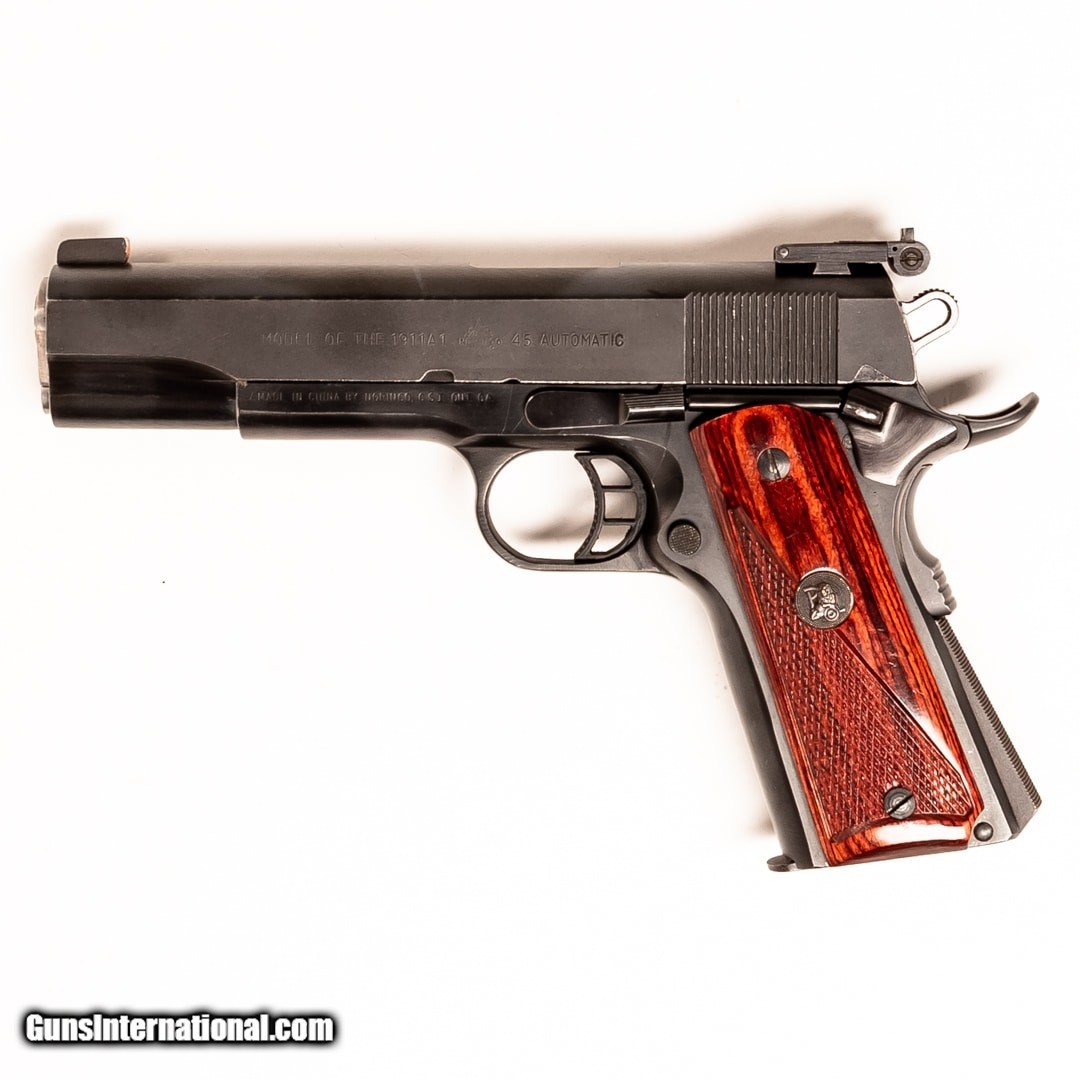 Description: Guns Listing ID: 666028 Offered for sale is a Norinco Model of 1911A1. It‚‚s a Chinese-made faithful reproduction of the USGI government model that served the US Army for more than 70 years. This model has a skeletonized trigger and includes one 7-round magazine. Get the best bang for your buck when you get a Certified Used Firearm . When you see the Certified Used stamp on any of our firearms, you can be confident that you’re getting exactly what you want – a gun only in very good to excellent condition and held to the highest quality standard. All Certified Used Guns come with a ‘no questions asked’ return policy . PLUS, ALL CERTIFIED USED GUNS SHIP FREE SOLD Manufacturer: NORINCO Model: MODEL OF THE 1911A1 Caliber Info: .45 ACP Condition: Used - Certified Barrels: 5 barrel Finish: BLACK |