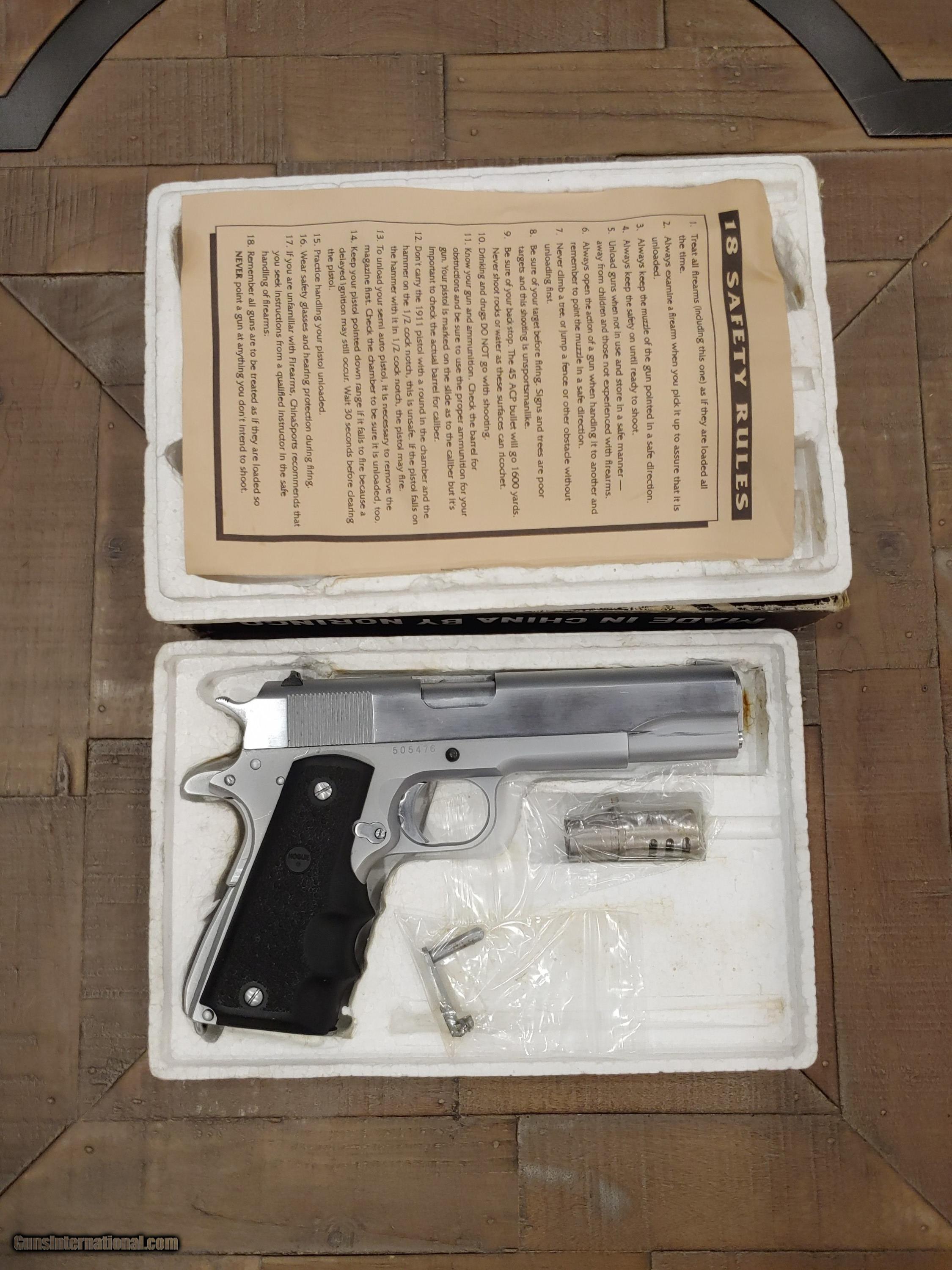 Looking for more information? Please call the Sporting Shoppe at (401-247-4867), visit our (TheSportingShoppe) or email (info - - thesportingshoppe) for any questions or concerns. The availability of these products varies each day based on in-store purchases. Please contact the Shoppe to confirm the availability of this firearm. Disclaimer: There is a 24 hour inspection period, upon transfer, to ensure our products are up to your standards. Please read the entire description and review all photographs to understand the product fully. We cannot repair or replace defective merchandise, exchange it, or give you a refund (unless due to shipping damage). Previously owned merchandise is sold “as is” and may not be under warranty. No exchanges are allowed for merchandise you have purchased from us without prior authorization. All sales are final. SOLD Handgun Caliber: .45 ACP (.45 Auto) Manufacturer: Norinco Model: 1911 A1 Barrel Length: 4.75 Condition: Pre-Owned Action: Semi-Auto Item Location: Rhode Island |