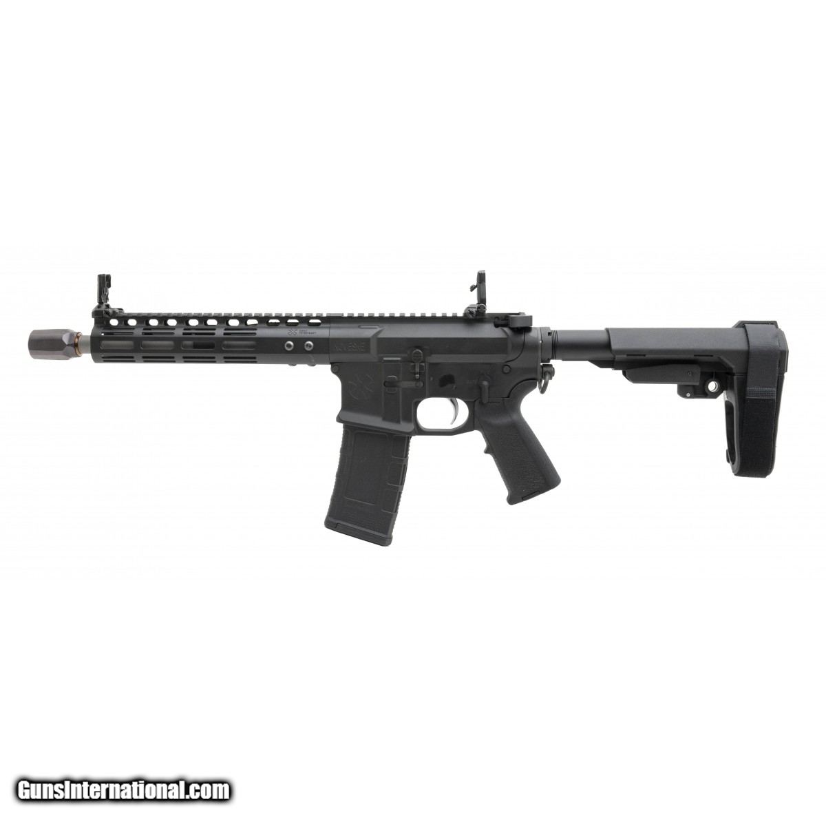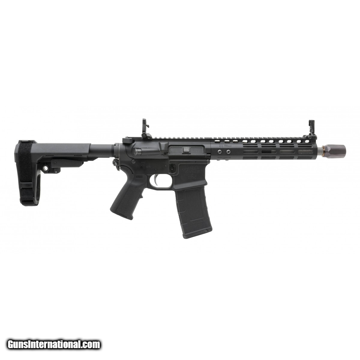 SN:Z12161. 10.5"" tactical pistol with a Q blast diffuser, MBUS Pro iron sights, branded SB Tactical brace & 'Super Badass' charging handle. In excellent condition.