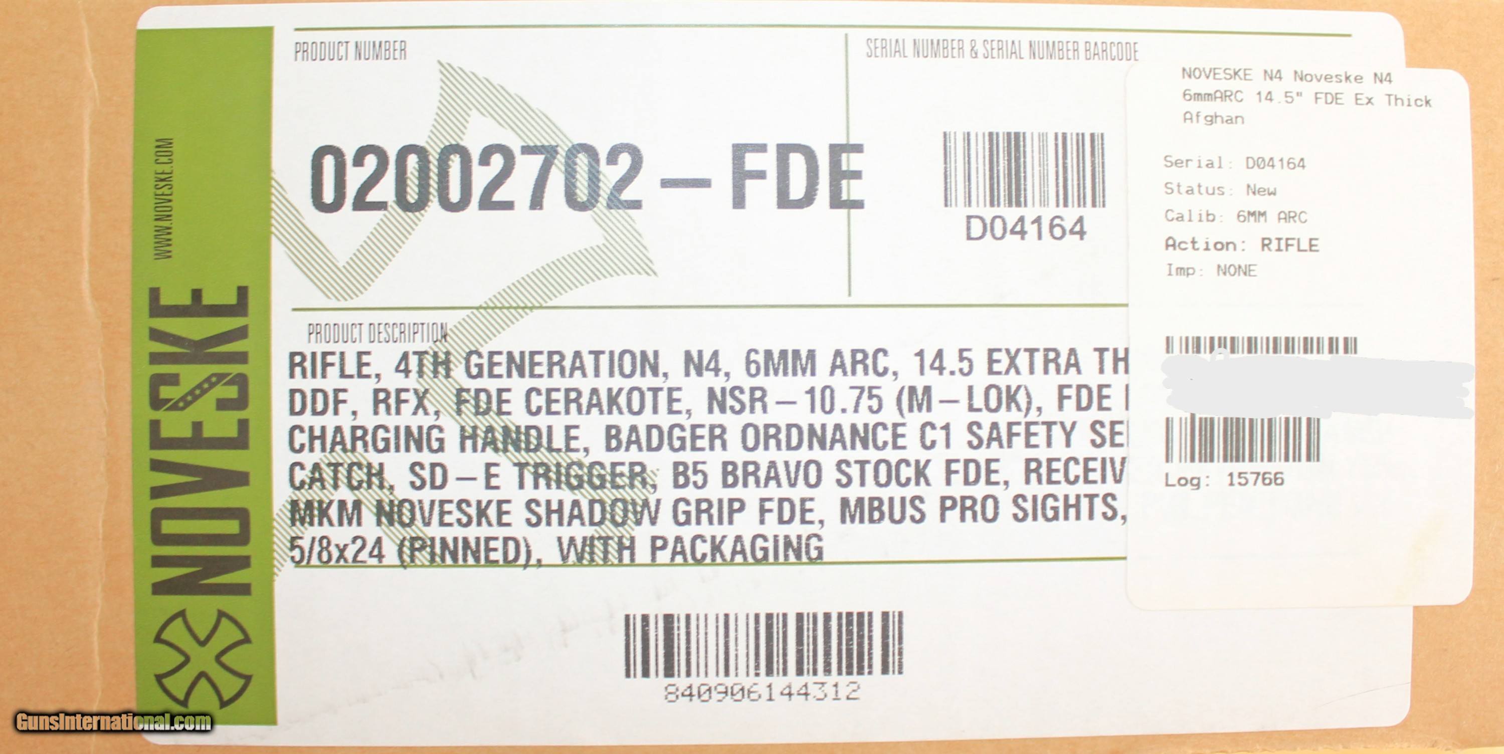 WITH EVERY PURCHASE THERE WILL BE NO CREDIT CARD FEES OR SHIPPING COSTS APPLIED IF YOU SELECT BUY NOW AND DO NOT RESPOND WITHIN 24 HOURS, THE ITEM WILL BE RELISTED SOLD Rifle Caliber: 6mm ARC Manufacturer: NOVESKE Model: N4 GEN 4 Barrel Length: 14.5" P&W Condition: NEW |
