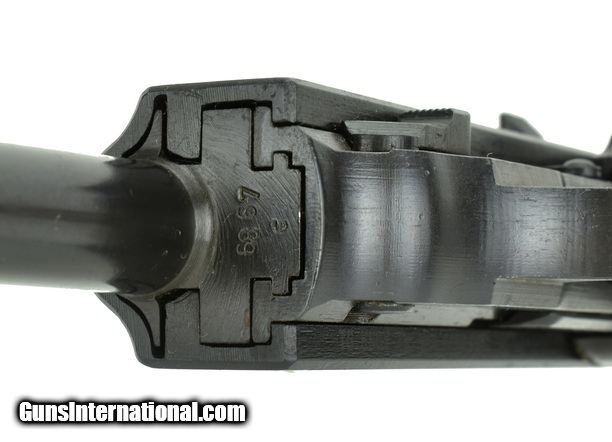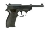 BYF 1943 Code P.38 9mm caliber pistol. Bore is good plus. Action works perfectly. Gun has 98-99% blue. Numbers are matching. Importer markings on underside of slide rails (have to turn it upside down to find them). Grips are excellent. Gun looks perfect and may be a refinish when imported.