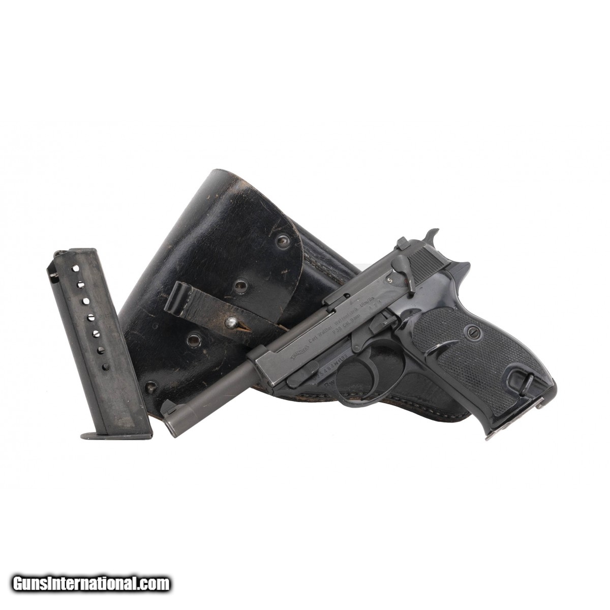 Description: " West German police pistol. Slide is marked P38 and dated 1956. Bore is excellent. Very good overall condition with holster and extra mag. SOLD Curio/Relic: Yes |