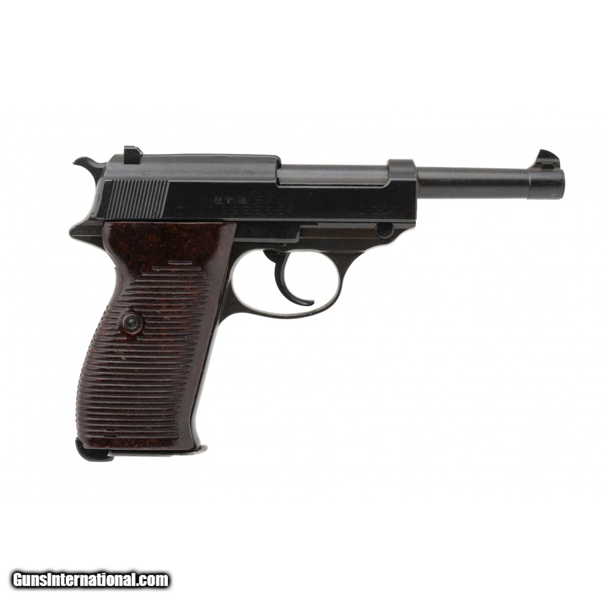 Serial No. 5828M, made in 1943 by Mauser, 9mm, 5"" round barrel. Original finish is starting to thin into a grey patina. Serial numbers are matching, bore is excellent. Bakelite grips show minor wear with no cracks. Waffenamts are present and visible along the slide and frame. Action functions correctly. c&r