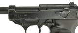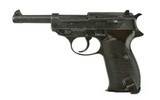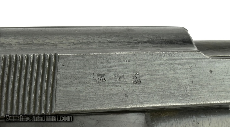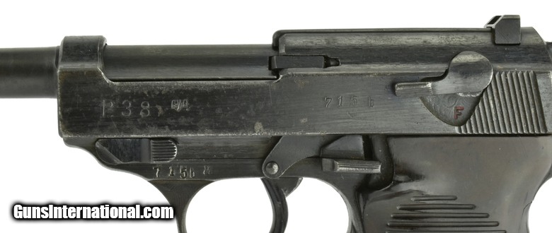 Description: Spreewerk CYQ CODE P38 9mm caliber pistol. WWII German Military issue. Serial numbers are matching. Bore has strong rifling with frosting. Slide has some etching with approximately 85% original finish. Good-Very good overall condition.