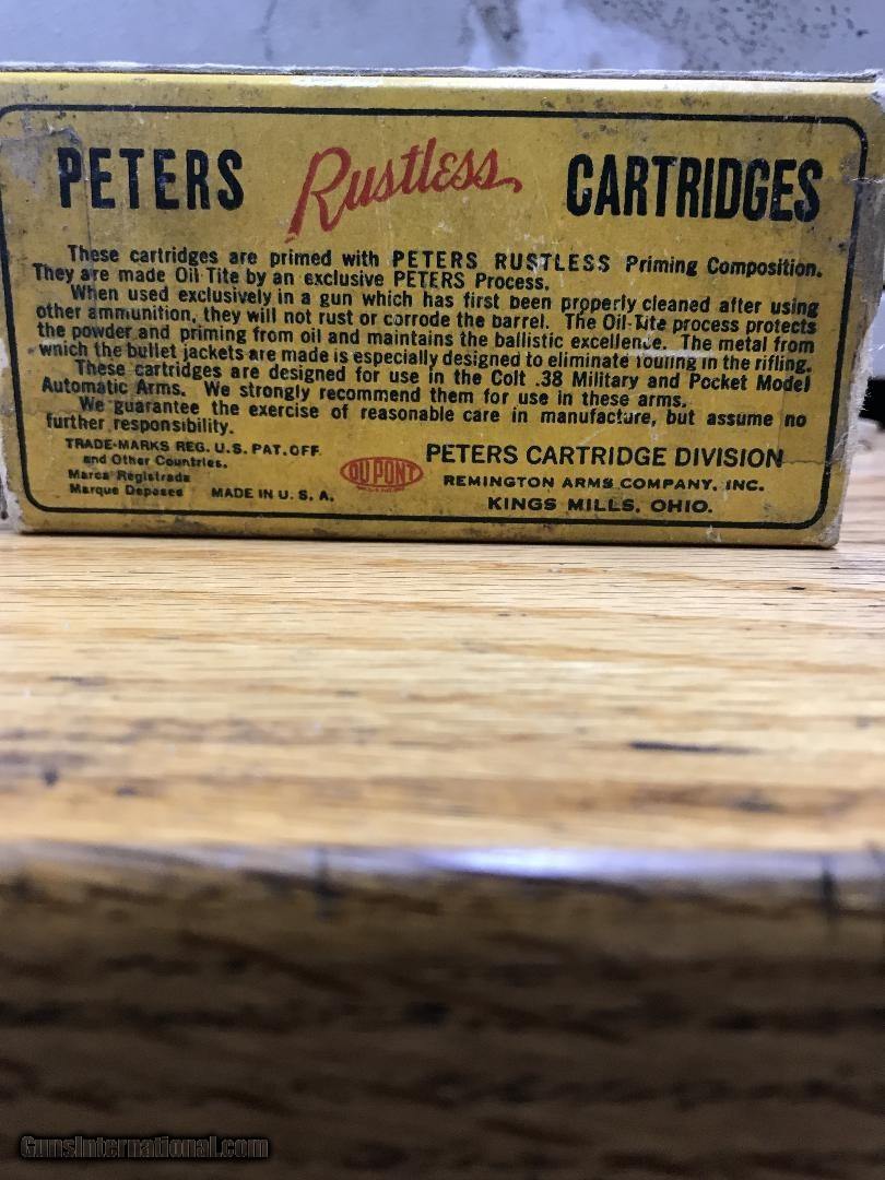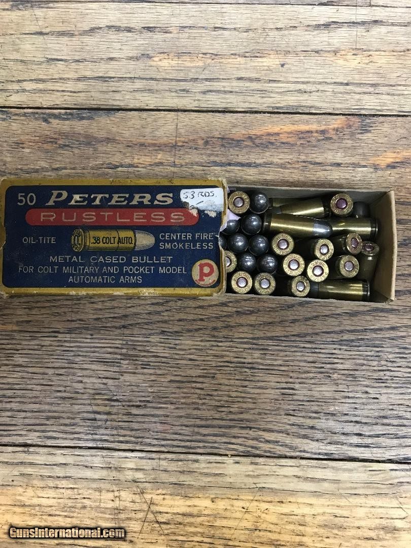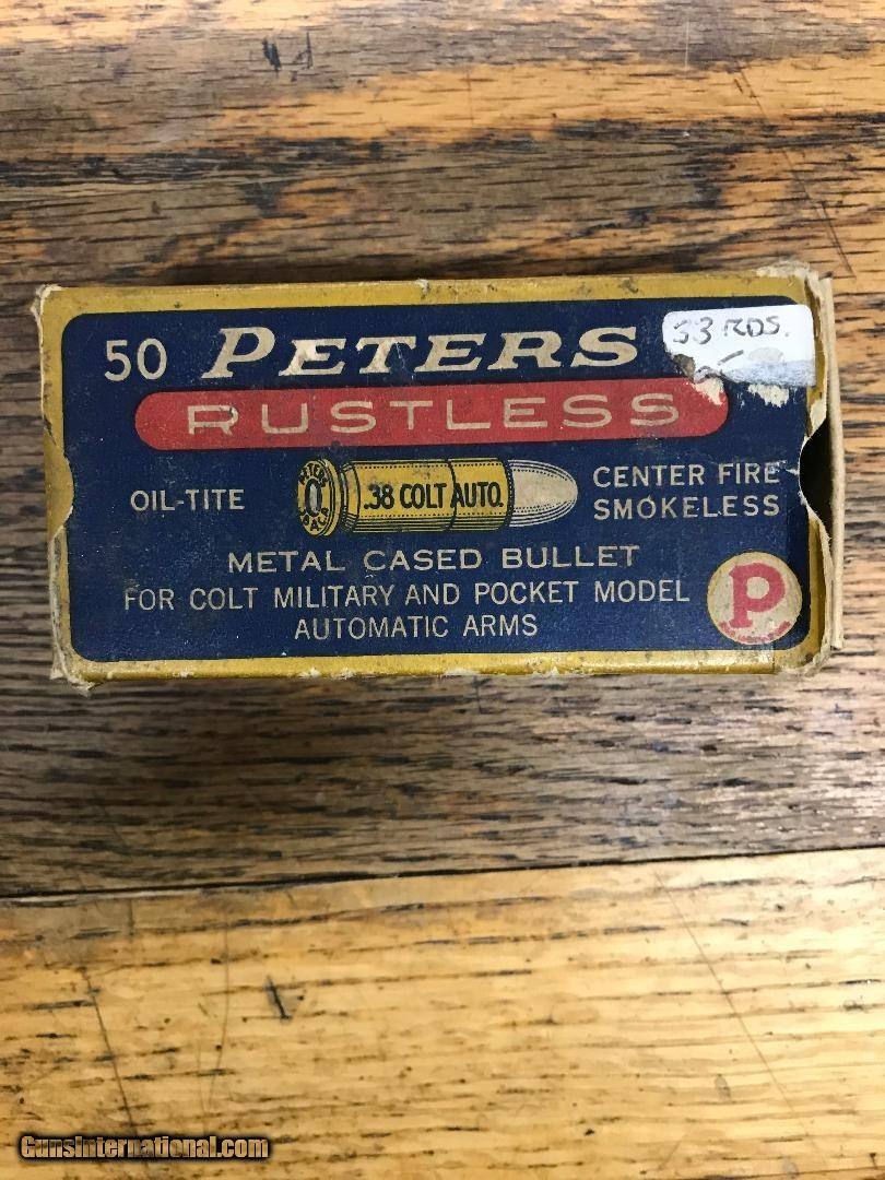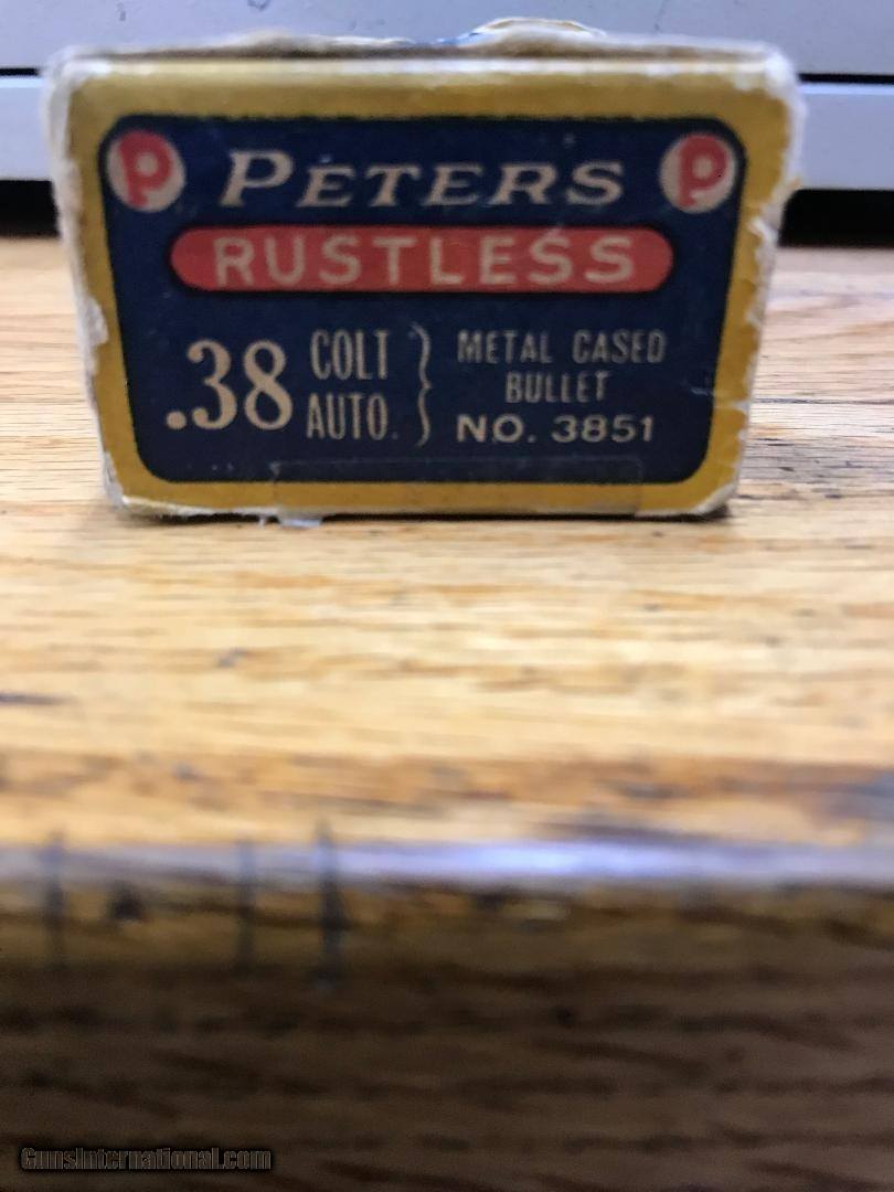 Description: 50 Peters Rustless Ammunition. .38 Colt Auto. Very rare ammo to find. SOLD |