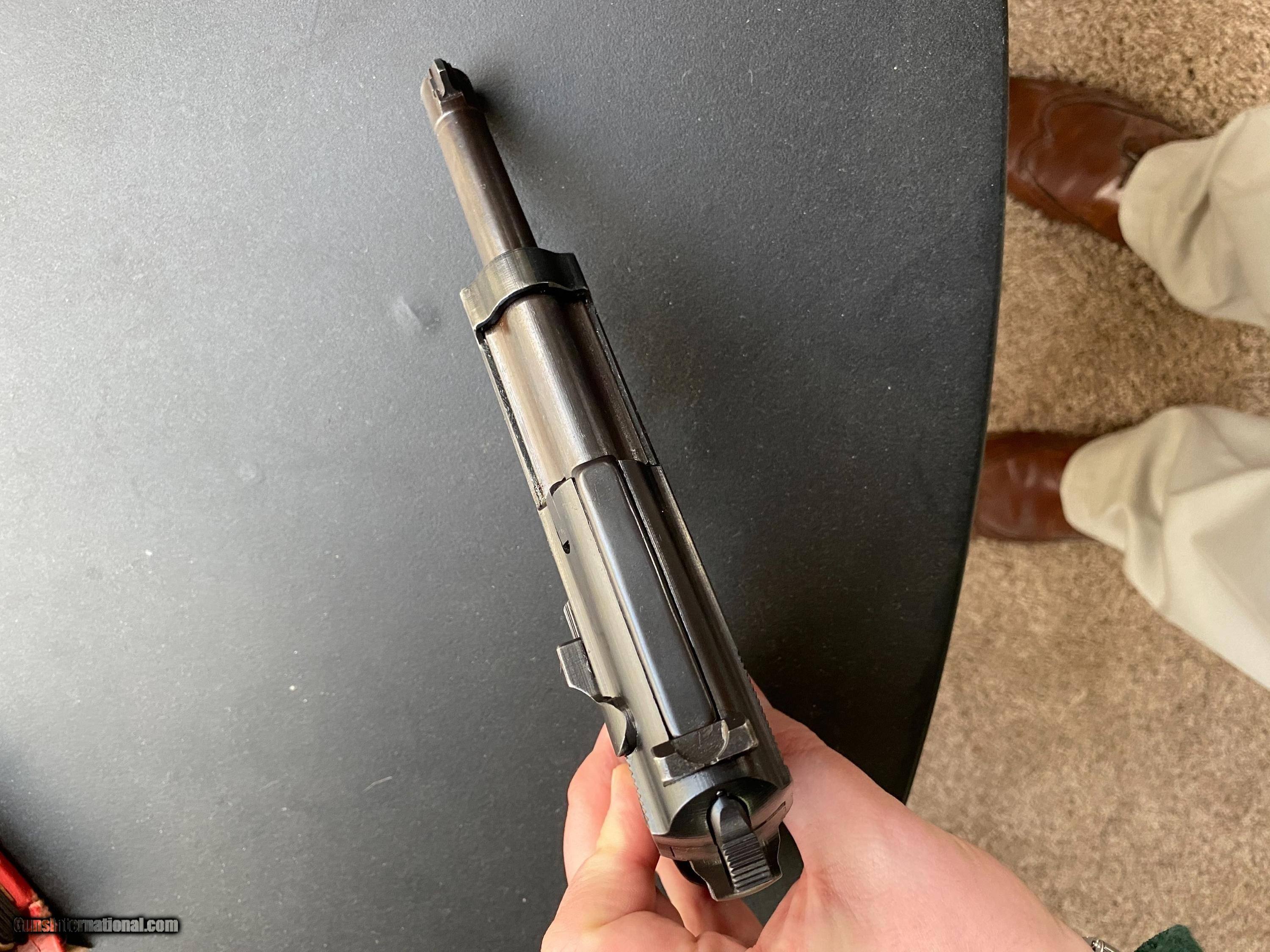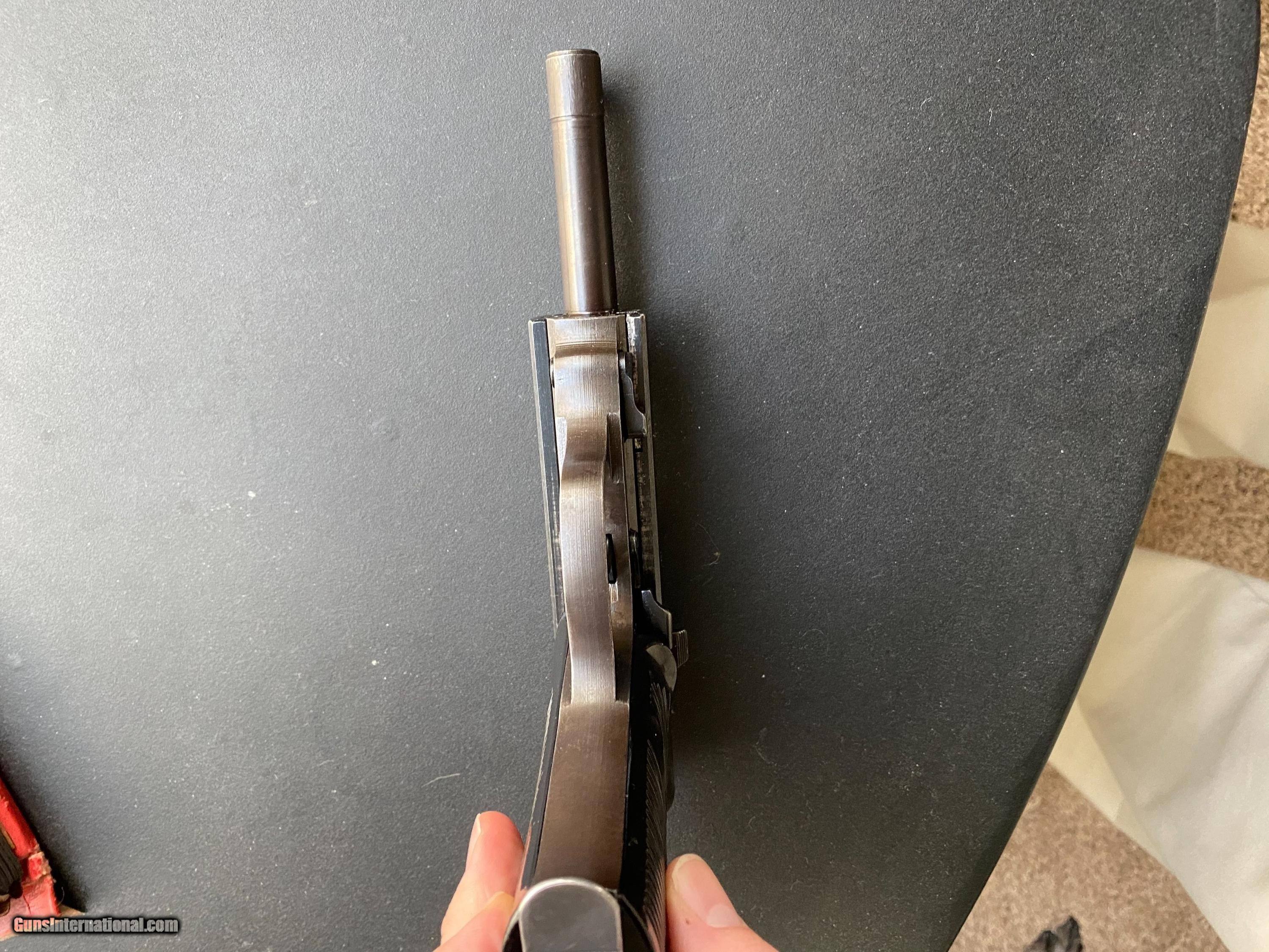 Description: Mauser BYF 44. This is a true beauty. Mechanically excellent. Excellent bore. Almost two tone (blue and straw) in finish which I'd rate at 98%. All matching numbers less the mag. No import stamps. Vet bring back. This is a safe queen! PayPal ok no mention of firearm - send as gift or add 3%. Cashiers checks and money orders work too. Shipping is 25.00 from my C&R. SOLD Curio/Relic: Yes Handgun Caliber: 9x19mm Parabellum (9mm Luger, 9x19mm NATO) Manufacturer: Mauser Model: P38 Condition: Excellent |
