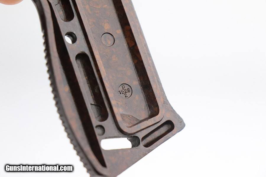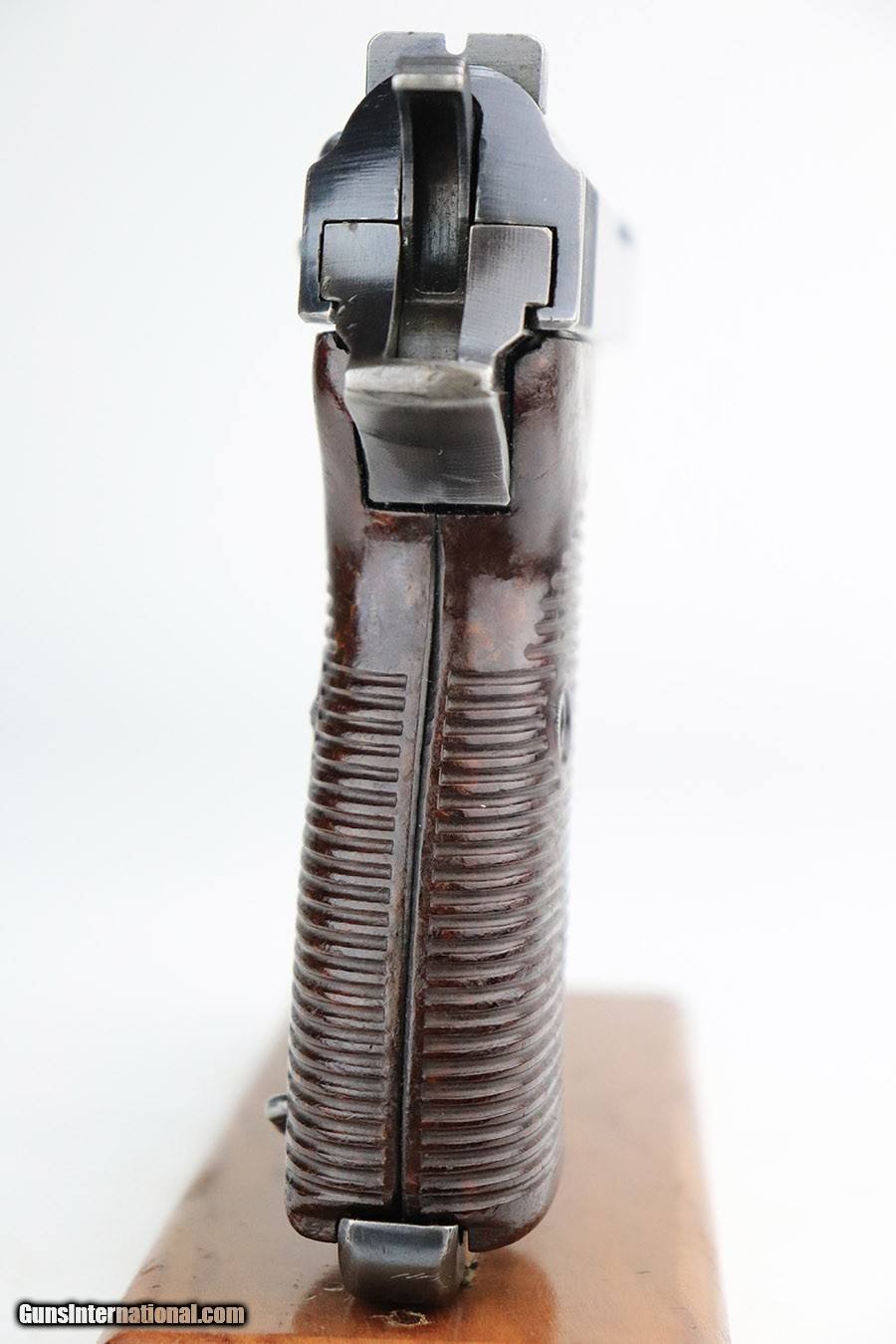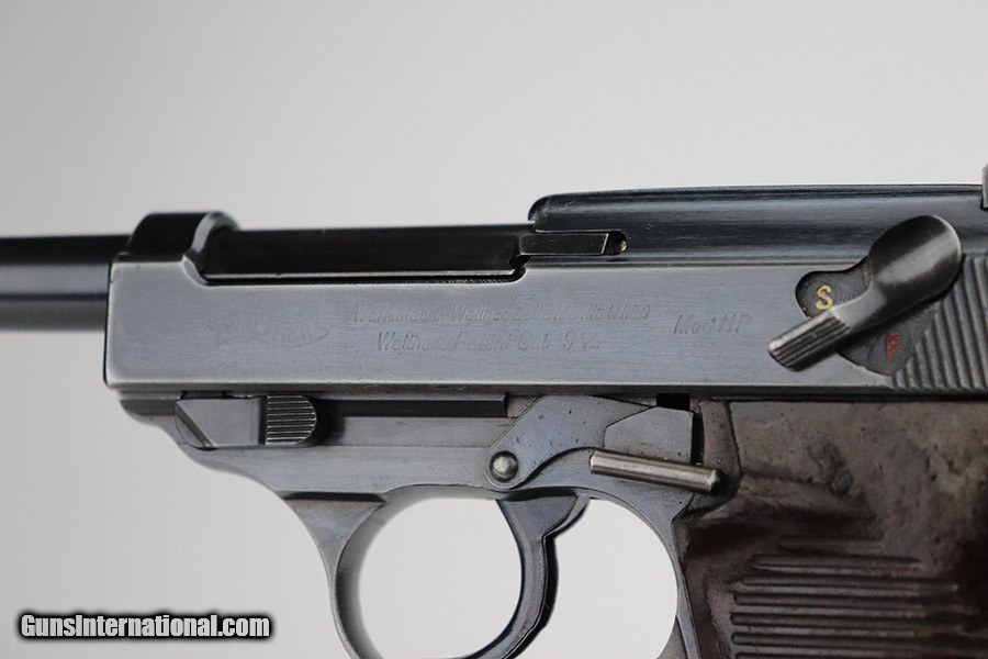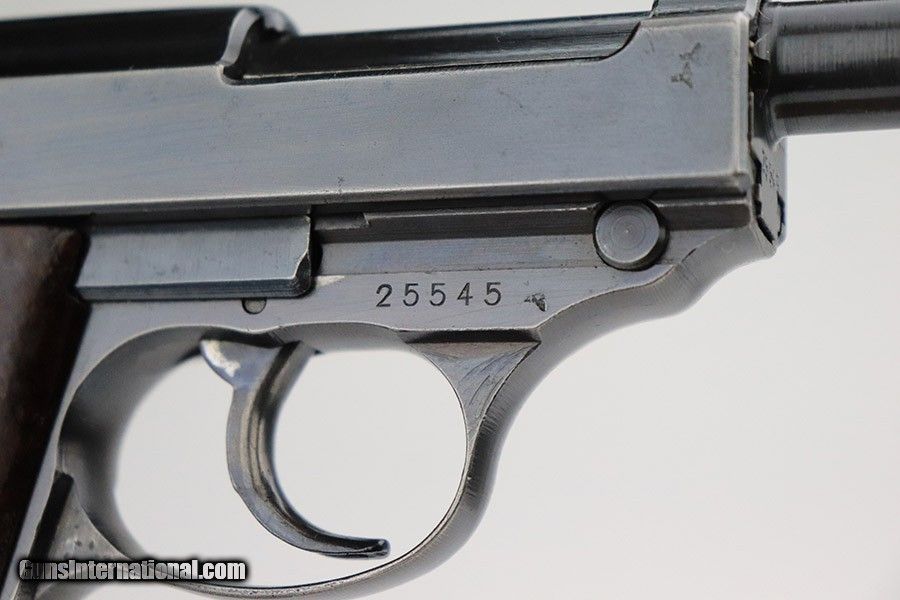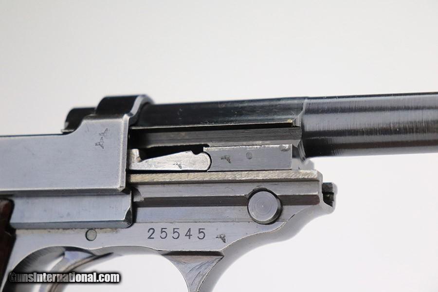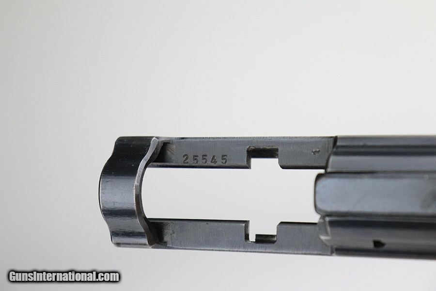 Description: This is an excellent example of a Walther Mod HP sold in the commercial market during WW2.. It is all matching and has the proper "Eagle N" commercial proofs. It has retained about 97% of its original finish. There is very minor thinning along the barrel and very minor wear around the muzzle and high edges of the slide. Comes with excellent reddish-brown bakelite grips and one magazine that has been force-matched. The bore has good rifling with very minor pin-pricking throughout. De-cocker is functional. SOLD Curio/Relic: Yes Handgun Caliber: 9x19mm Parabellum (9mm Luger, 9x19mm NATO) |