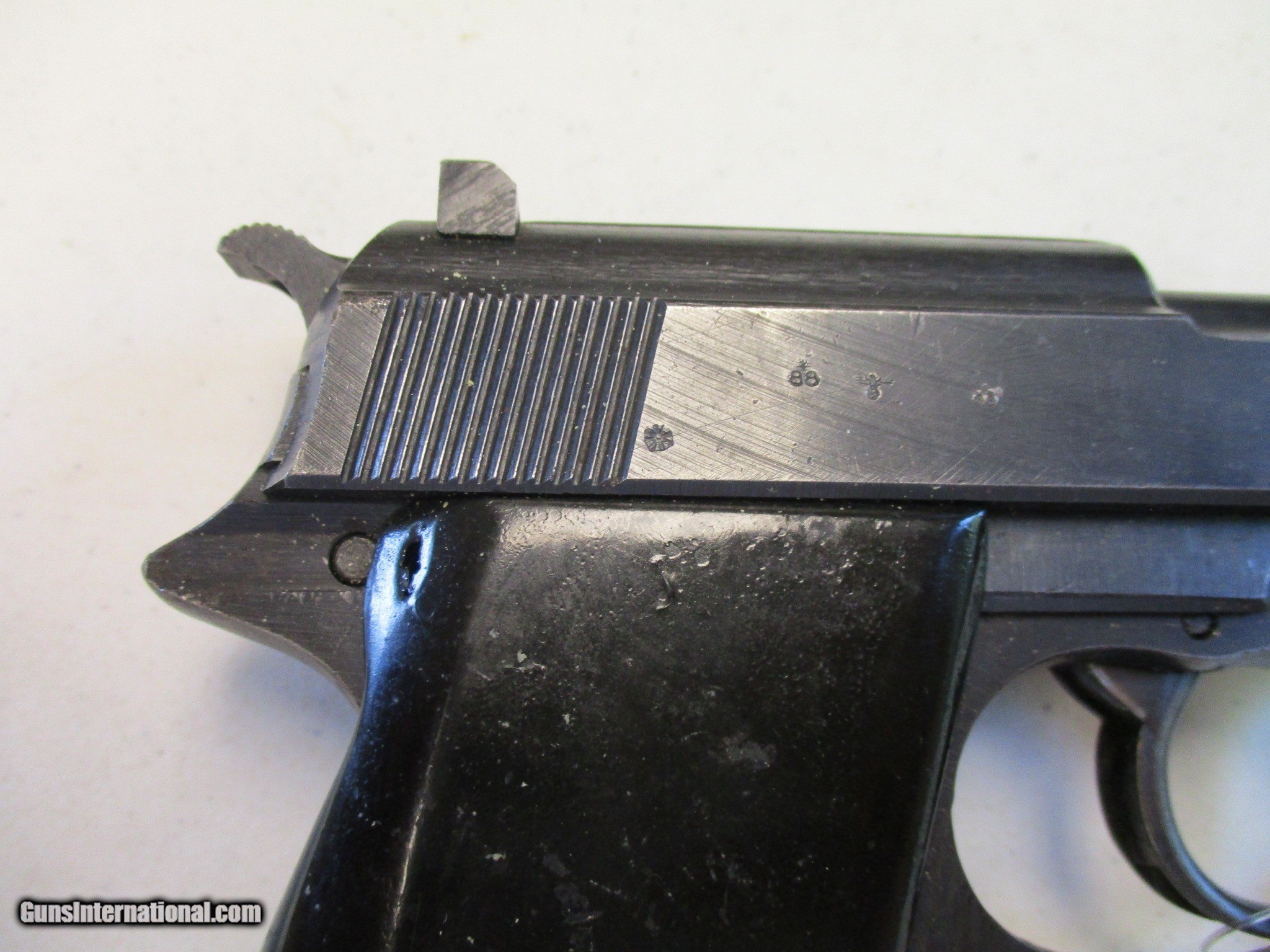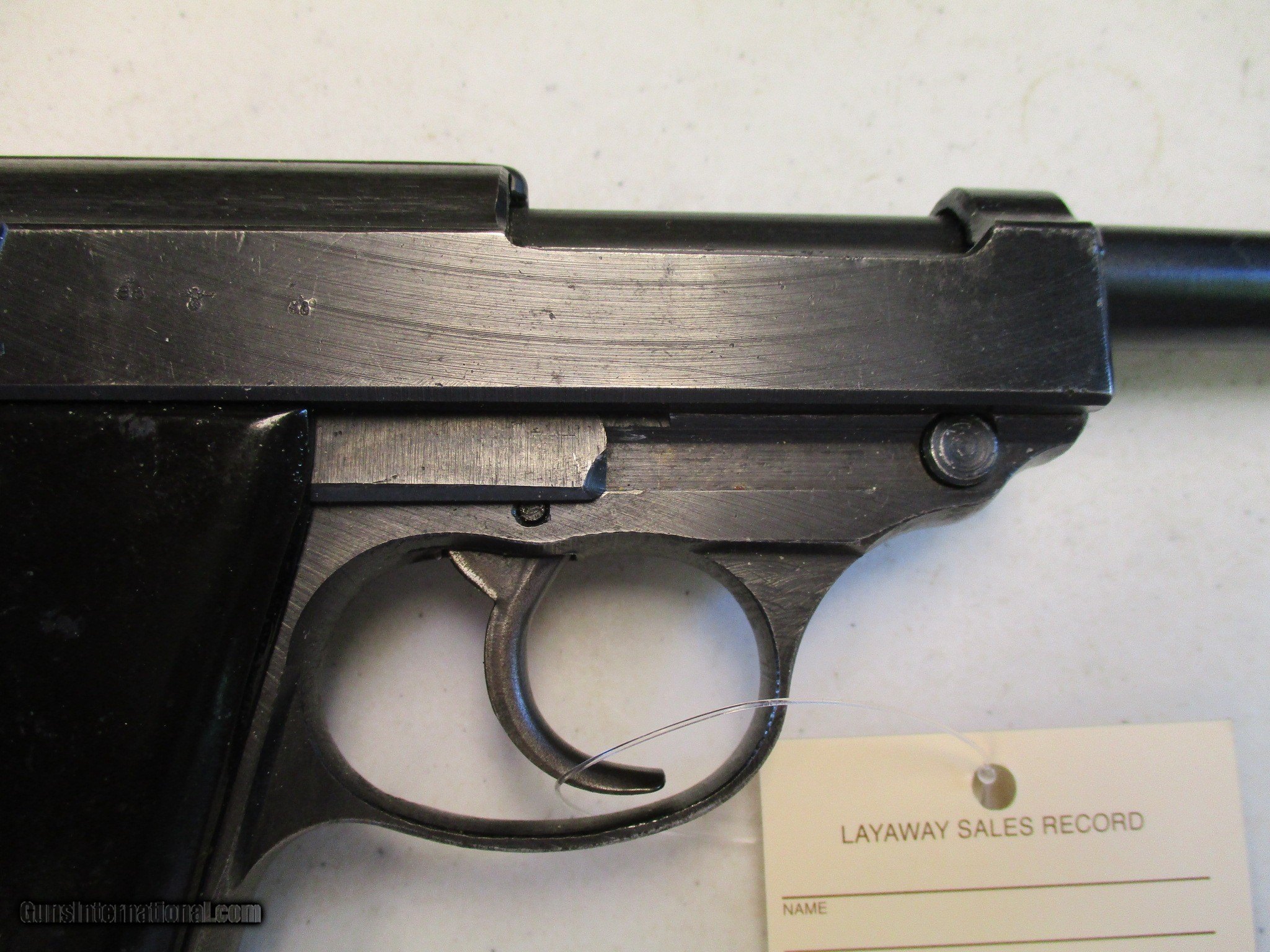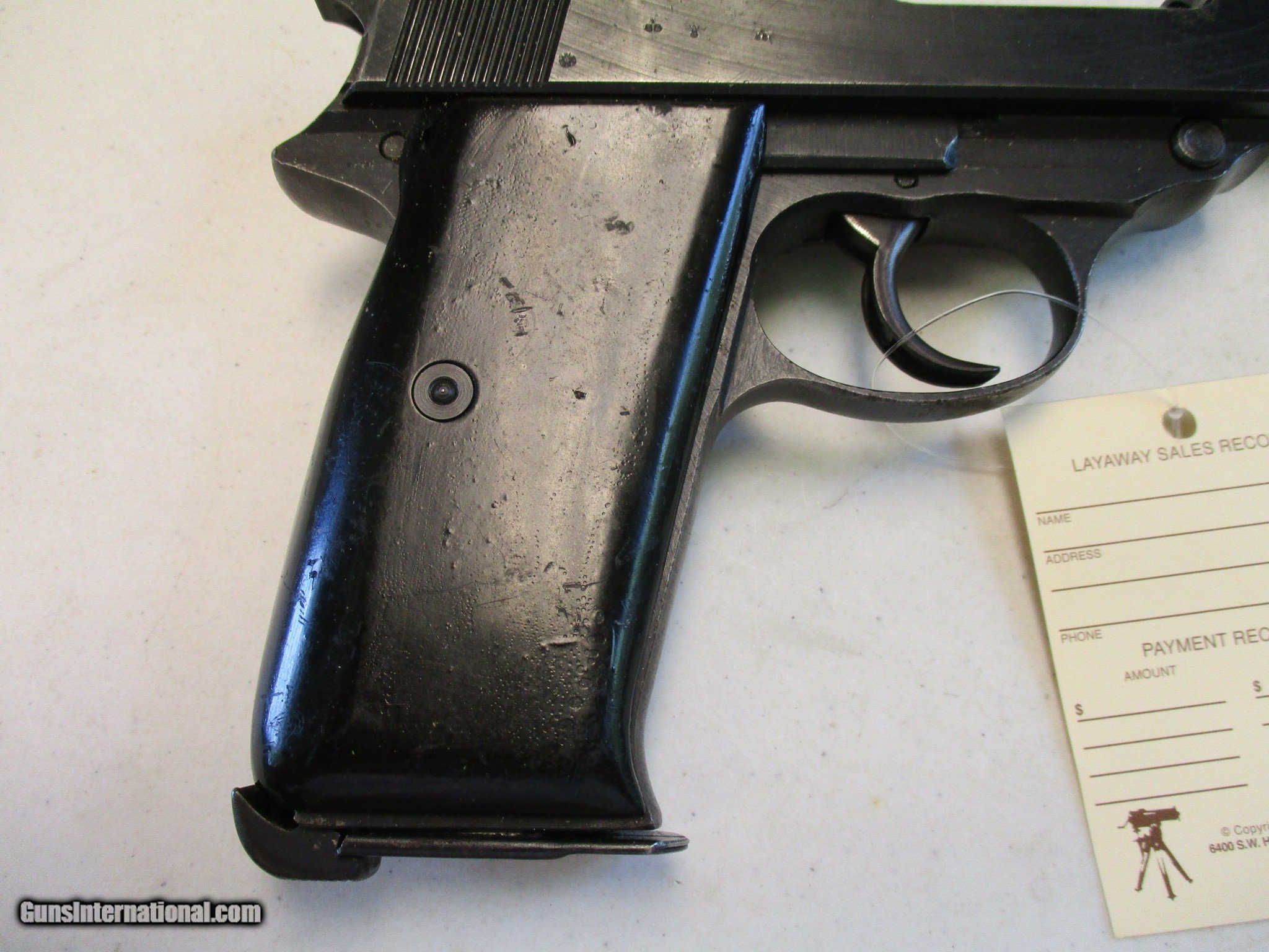 Description: German P38 by Spreewerk. Code is cyq, no date I can see. Sn is 7849U. Looks to be all original, all serial numbers match. Has the Eagle over 88 on both frame and slide. Mag has a jvd code. Nice WW2 German pistol! Email me if you would like these pics sent to you, they will come through bigger and better than on the listing page here. Email me with any questions. I am a store front dealer, and I will close s if the gun sells locally. Once ahas reached my reserve, I will pull it from my shelves. Please check your local laws to confirm it is legal to own in your state! Buyer pays $25 shipping and insurance to your FFL, in the lower 48. AK, HI or PR is extra. I will ship to California, NO PROBLEM! All my guns come with a non firing, 3 day unconditional return privilege, from the day UPS delivers to your dealer. Buyer pays shipping both ways if the gun comes back. I can add a new hard case by PLANO for secure shipping for $25 if the buyer wishes (highly recommended, cheap insurance, really helps keep the UPS monster from eating my guns!). No sales tax on guns ship out of Kansas, guns sold in Kansas are subject to Kansas sales tax. I am a licensed FFL, and will include a copy of my FFL with the gun for your dealers records. I will ship to a C&R if the gun is eligible (you look it up!). I will ship to California, but you need to confirm the gun is legal where you are, California or other. . WE ALSO TRADE FOR CLASSIC CARS AND TRUCKS! I will leave feedback as soon as the buyer leaves feedback on me. Email me with any questions, and good luck! SOLD |