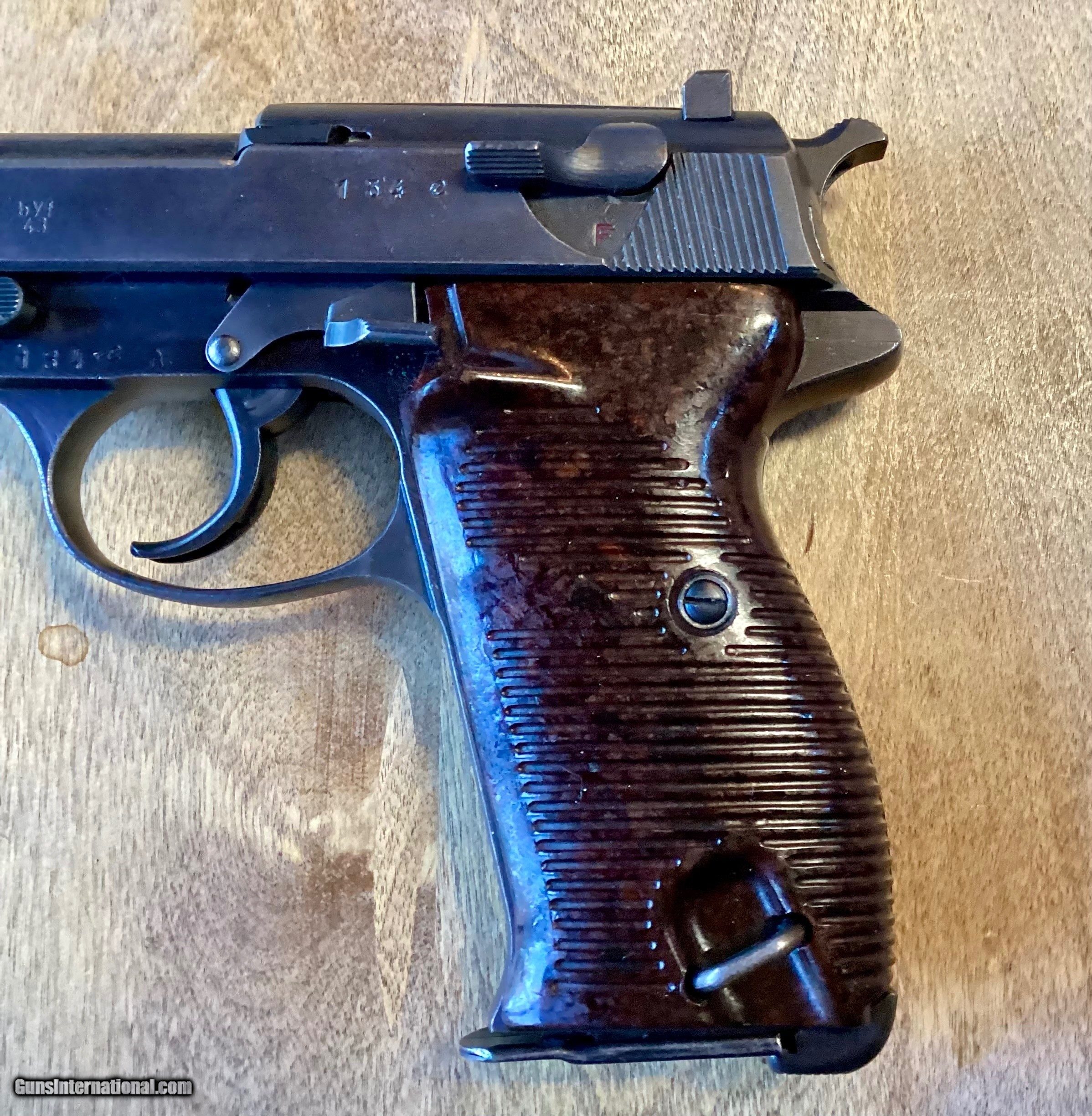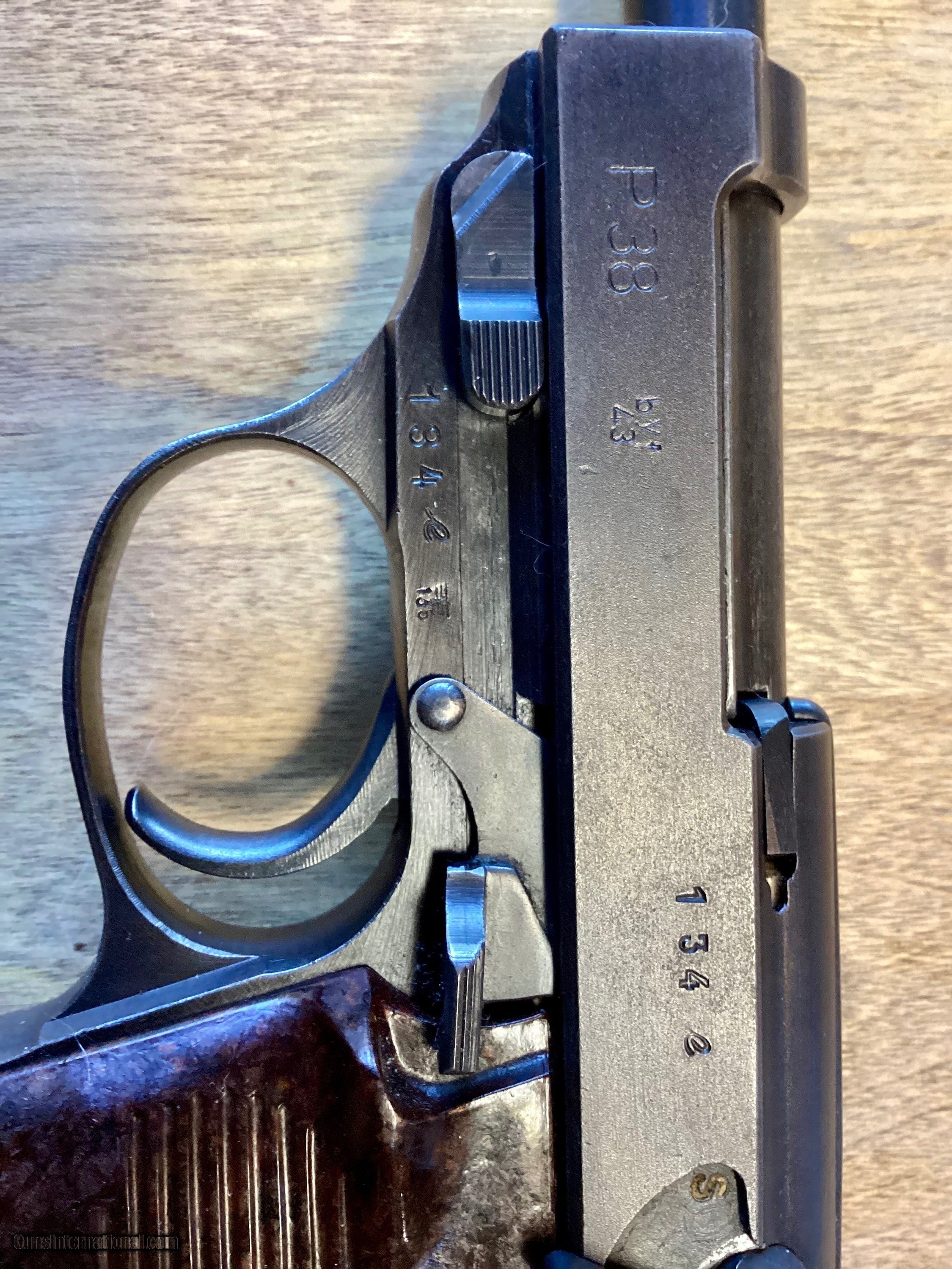 Description: Very nice condition P38 byf 43 mfg by Mauser. All numbers matching,correct magazine . Very nice bore. Overall excellent original condition . Serial number 134 e. SOLD Curio/Relic: Yes Handgun Caliber: 9x19mm Parabellum (9mm Luger, 9x19mm NATO) Manufacturer: Mauser Model: P38 Serial Number: 134e Condition: Excellent Metal Condition: Excellent Wood Condition: Excellent Bore Condition: Very good Manufacture Date: 1943 |