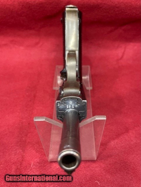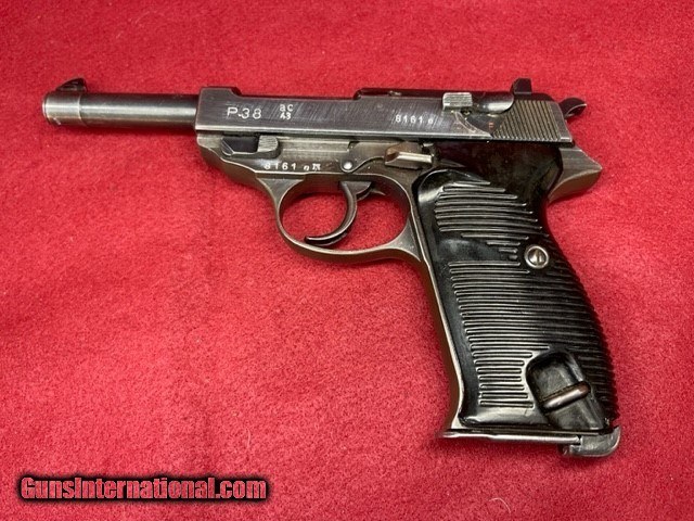 Description: GREAT, WALTHER P-38- (AC/43), CAL 9MM, SER. 8161e, THIS "G.I. BRING BACK" HAS RETAINED ABOUT 80% OF THE ORIGINAL FINISH. IT SHOWS THE TYPICAL SHARP EDGE SILVERING BUT THE BULK OF LOSS IS DUE TO SLIGHT FADING. SUPRISINGLY THERE ARE NO PIN PRICKS, SCRATCHES, RUST PATCHES OR RUB MARKS ANYWHERE. THE FRONT GRIPSTRAP SHOWS NO SIGN OF FADING ALL PARTS MATCH AND HAVE ALL THE PROPER EAGLE/135,** WAFFENAMTS**. THE BLACK PHENOLIC GRIPS AND GRIP SCREW ARE PERFECT. NOT A CHIP OR A NICK ANYWHERE. THE BOLT FACE, SLIDE RAILS AND FEED RAMP SHOW LITTLE IF ANY USE. THE BORE IS GREAT, MIRROR BRIGHT WITH RAZOR SHARP RIFLING.AND JUST A WISP OF VERY LIGHT FROST.. IT COMES WITH ONE CORRECT P-38 MAGAZINE.THIS ICONIC W.W. II PISTOL WOULD FIT GREAT IN ANY COLLECTION , AND SHOULD BE REAL HEAD TURNER AT THE RANGE. MODESTLY PRICED .....$1595.*** ***100% SATISFACTION GUARANTEED. **THE WHITE WAX MARKINGS ARE TO SHOW THE MARKINGS ARE CORRECT. IT EASILY REMOVED WITH LIGHTER FLUID AND A BRUSH, WE WILL REMOVE IT ON REQUEST. SOLD Handgun Caliber: 9x19mm Parabellum (9mm Luger, 9x19mm NATO) |