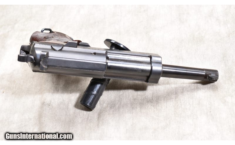 Description: This one was manufactured in May 1943 by the Mauser factory and is in excellent condition featuring a few very minor defects from handling. It doesn't appear to have been fired, and all stampings are sharp and clear. A rare find in this condition. 9mm Luger SOLD Chambers: 8 Metal Condition: Excellent. Wood Condition: Excellent. Bore Condition: Shiny and bright with good rifling. Barrels: 5-inch Triggers: Factory single and double action trigger. Butt Pad: Grooved wood composition (Bakelite.) Weight: 34 oz. Sights: Post and notch Item Location: Rogers |
