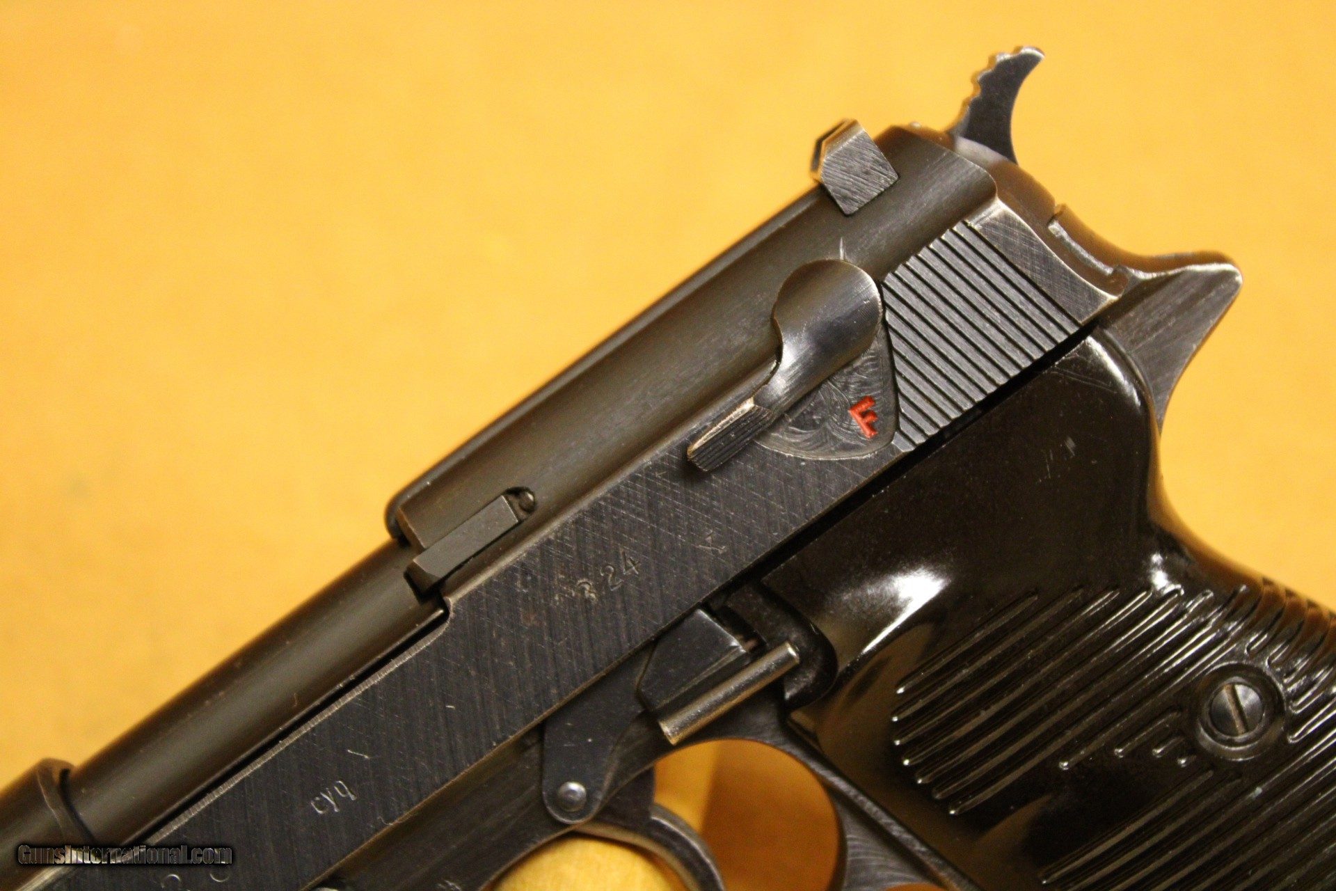 Description: In 95%+ very sharp condition, we have a top example of a late 1943 production cyq code Spreewerke P.38 Pistol, fully rigged out with a pebble grain soft shell holster & a spare magazine. This pistol is from the early “x” block, and it's a nice example of an early production pistol made by that firm in Czechoslovakia. The pistol is completely factory original with a mint bore, with just the slightest hint of holster carry. These earlier production examples are finished much more smoothly than the later production examples. P.38 collecting has really taken on over the past decade and there has been an incredible amount of interest in the pistols made by this firm. This pistol will be of great interest to the dedicated Spreewerke collector and anyone looking for a prime example of a cyq coded P.38. All items are also available for sale in our brick & mortar store and are subject to prior sale. Think long, think wrong. Payment On firearms, we typically only accept credit cards or money orders/cashier's checks.