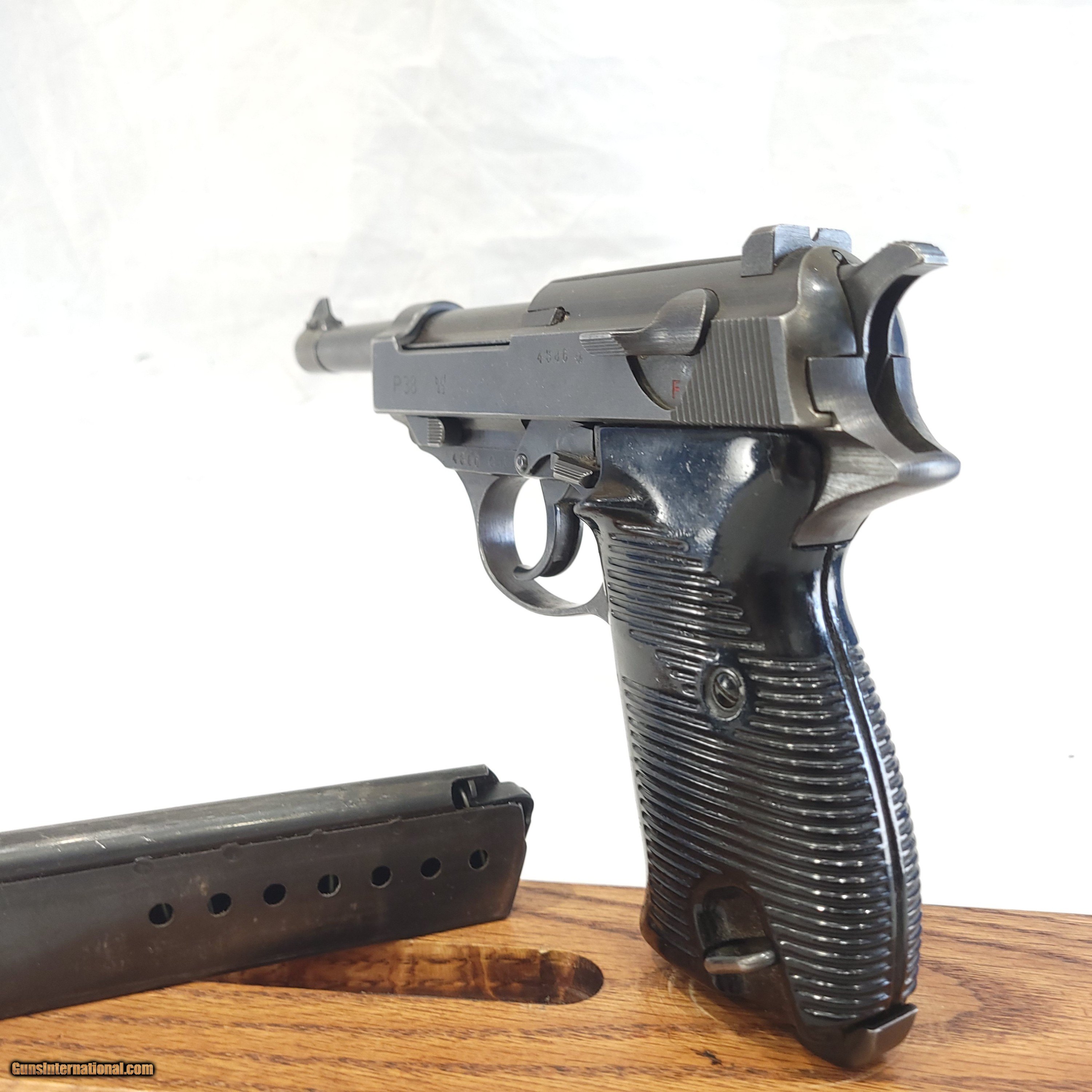 Description: INV. 11242 MINT, MAUSER P-38 (BYF/43), CAL 9MM, SER. 4386 a, THIS MINTY "G.I. BRING BACK" HAS RETAINED ABOUT 99% OF THE ORIGINAL FINISH. IT SHOWS THE TYPICAL BUT SLIGHT MUZZLE LOSS AND A LITTLE SHARP EDGE SILVERING. THERE ARE NO SCRATCHES, RUST PATCHES OR RUB MARKS. THE GRIP STRAP SHOWS NO EVIDENCE OF GRAYING. ALL PARTS MATCH AND HAVE ALL THE PROPER EAGLE/135, WAFFENAMTS. THE BLACK PHENOLIC GRIPS AND GRIP SCREW ARE PERFECT. NOT A CHIP OR A NICK ANYWHERE. THE BOLT FACE, SLIDE RAILS AND FEED RAMP SHOW LITTLE IF ANY USE. THE BORE IS PRISTINE LIKE THE REST OF THE GUN, MIRROR BRIGHT WITH RAZOR SHARP RIFLING. NOT A SPOT OF FROST ANYWHERE. IT COMES WITH ONE CORRECT P-38 MAGAZINE.THIS ICONIC W.W. II PISTOL WOULD PLEASE EVEN THE MOST CRITICAL COLLECTOR, AND SHOULD BE REAL FUN AT THE RANGE. INVESTMENT PRICED .....$1595.*** ***100% SATISFACTION GUARANTEED. THE WHITE WAX MARKINGS ARE THERE TO SHOW THE AUTHENTICITY OF THE PIECE. IT EASILY REMOVED WITH LIGHTER FLUID AND A BRUSH, IT DOES NOT HARM TO THE FINISH. WE WILL REMOVE IT ON REQUEST. To purchase this firearm or if you want to request more information contact us at: Email ckguns[at]ymail[dot]com Phone 201-512-0002 Cell 201-575-6838 FAX 201-215-4759 We accept most major credit cards. Prices shown are Discounted 3% for Cash or Check. The buyer must be familiar with all the laws governing the purchase and the ownership of firearms in their own city and state. The Yankee Armorer, Inc is not responsible for any failure to comply with or observe these laws. The Yankee Armorer, Inc will only ship after full payment and receipt of all required documents. Shipping: Add $35.00 for handguns, $45.00 for long guns. New Jersey buyers are subject to a 7% sales tax. The Yankee Armorer, Inc offers a 3 day inspection period with full refund upon return of intact firearm and in the original condition. The Yankee Armorer, Inc offers a no interest lay away program - 25% down; 25% in 30 days; 25% in 60 days; and full payment in 90 days. Any violation of this policy is subject to restocking and forfeiture of all payments. Any variation from this policy must be agreed to in advance. Unshipped Cancelled sales are subject to a 20% restocking fee. Be advised that all firearms sold by The Yankee Armorer, Inc. or the Gun Exchange, LLC (SELLER) are sold as collector’s items. They have not been fired or tested for safety and must be examined by a license gunsmith prior to use. By purchasing any item from the (SELLER), you are agreeing to hold the (SELLER) free from any damages or lawsuits of any nature. Any item left for transfer or storage will be charged to $25.00 per month, per item from the day of its receipt. Any variation from this policy must be agreed to in advance. Store hours 10:00 am to 5:00 pm Tuesday -Saturday. It's always best to call for appointment. Store 201-512-0002, cell 201-575-6838. SOLD |