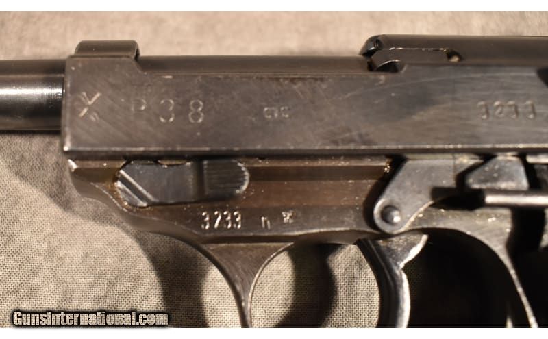 Description: 1944 Spreewerk P38. Manufactured by Spreewerk in the Czechoslovakia factory. All parts have matching Waffin marks with the exception of the magazine. The magazine is of period, but is a Walther manufactured magazine. As indicated by the "X" on the slide of the firearm, this was russian captured and used in the soviet arsenal. 9mm Luger SOLD Chambers: 9mm Metal Condition: Good Wood Condition: N/A Bore Condition: Good Barrels: N/A Triggers: N/A Stock Dimensions: N/A Fore End: N/A Butt Pad: N/A Weight: 3lbs Sights: N/A Chokes: N/A Item Location: Colorado Springs, CO |