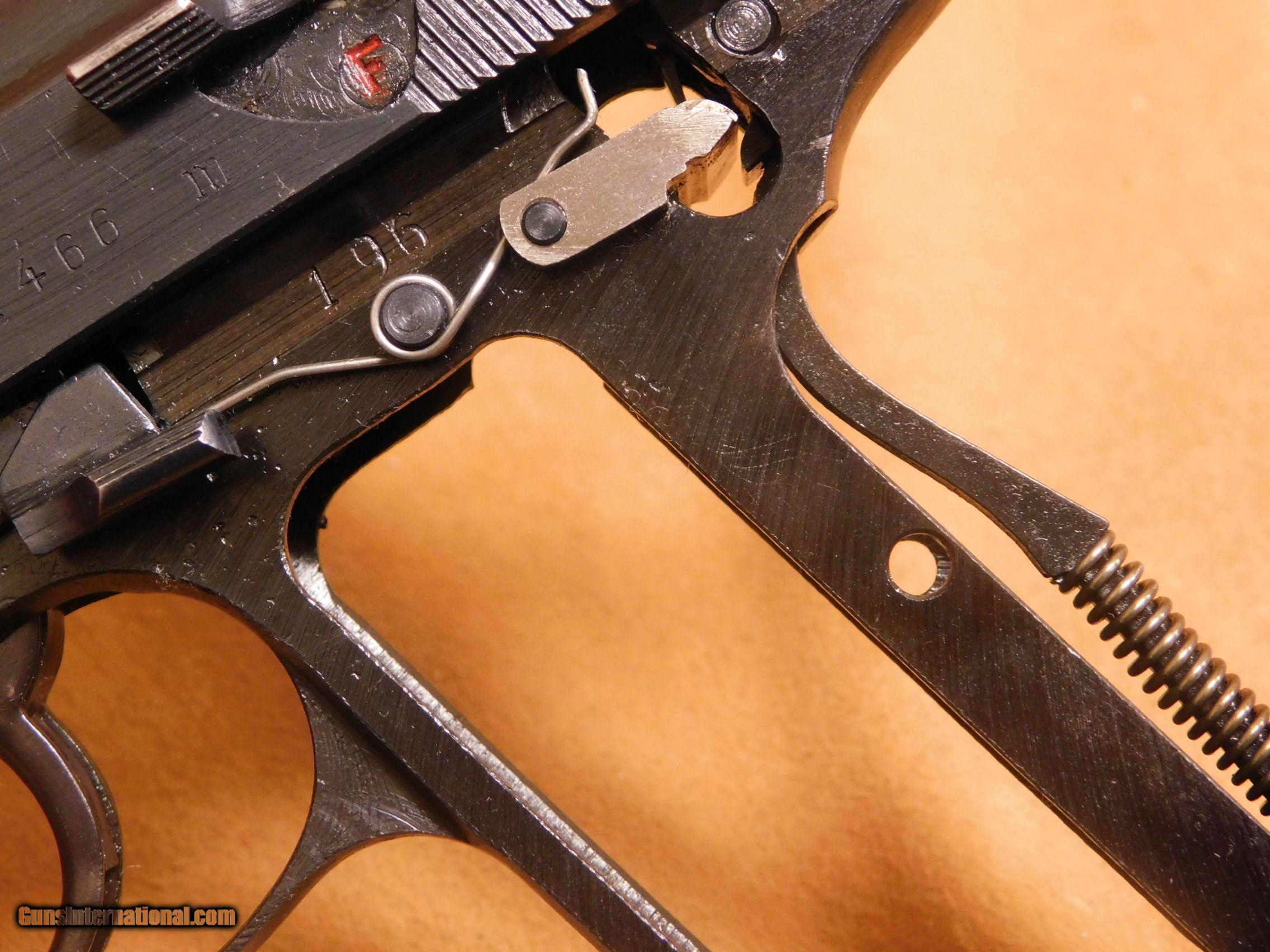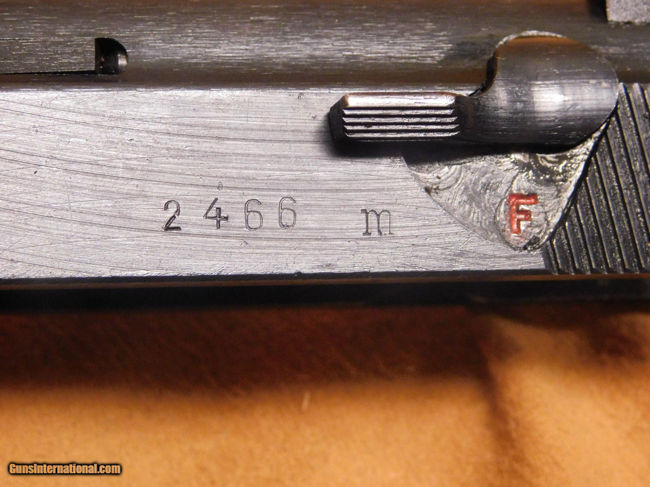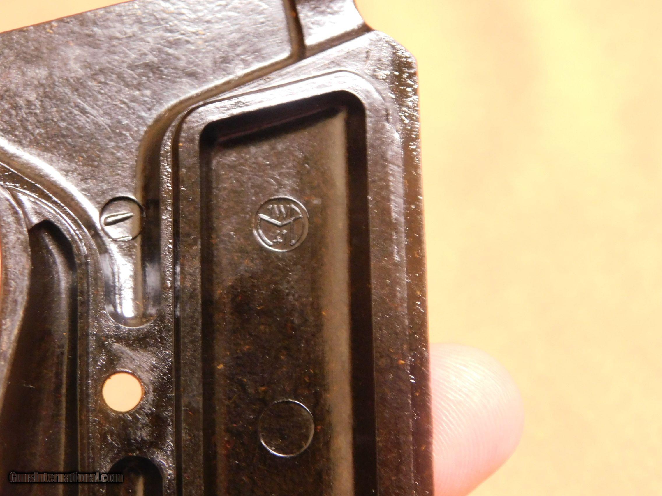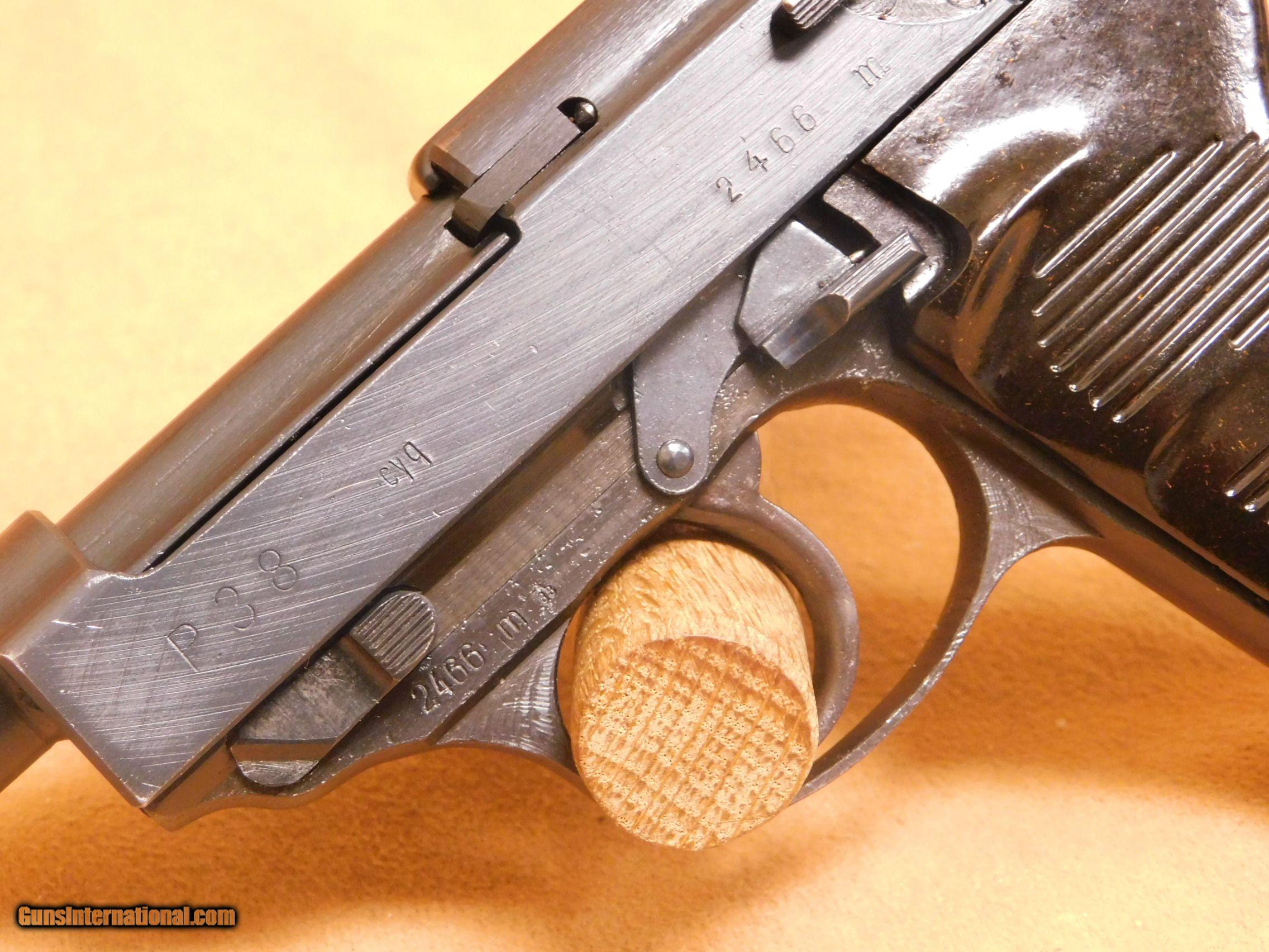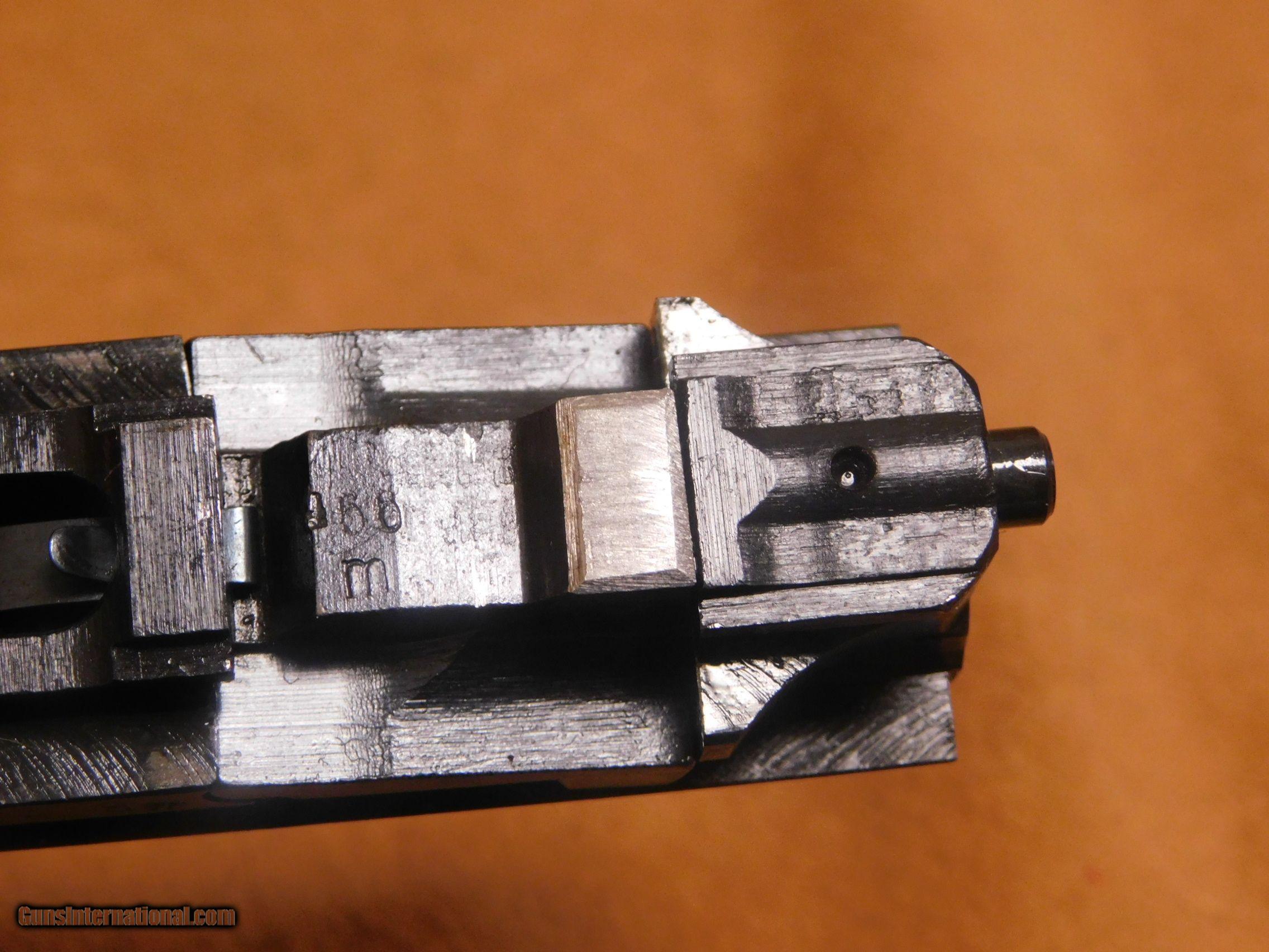 Description: This gun features an asterisk, which was used in the Spreewerk factory in Hradek nad Nisou (Grottau) as a marking of a "fixable reject". Parts with too sharp of edges were repaired and returned to assembly plant. Some parts were returned two or thee times and bear two or three asterisks. This gun is in 97%, very crisp condition. It is all-matching and factory original. It is a mid-war production, German WW2 issue, Spreewerke-made, cyq-coded P.38 pistol. It is an "m" black production with an asterisk marked barrel, indicating a formerly rejected part. The magazine is unmarked. The bore of this gun is mint. This was a vet bringback and is a very typical example of a mid-war production, Spreewerke-manufactured P.38. They are all very roughly finished on the surface, but are a well-made, totally functional pistol. They were considered to be somewhat less desirable on the collector market until a few years back when Ron Clarin’s informative book about them was published. Today they are getting a lot of well earned attention by collectors and are just as sought after as the Walther and Mauser made examples. All items are also available for sale in our brick & mortar store and are subject to prior sale. Think long, think wrong. We are always buying unique and collectible single firearms and collections. Please give us a call at 859-278-8370 to discuss what you have available. We also offer free appraisals and guarantee TOP DOLLAR PAID for your unique and collectible firearms. Payment On firearms, we typically only accept credit cards or money orders/cashier's checks.
