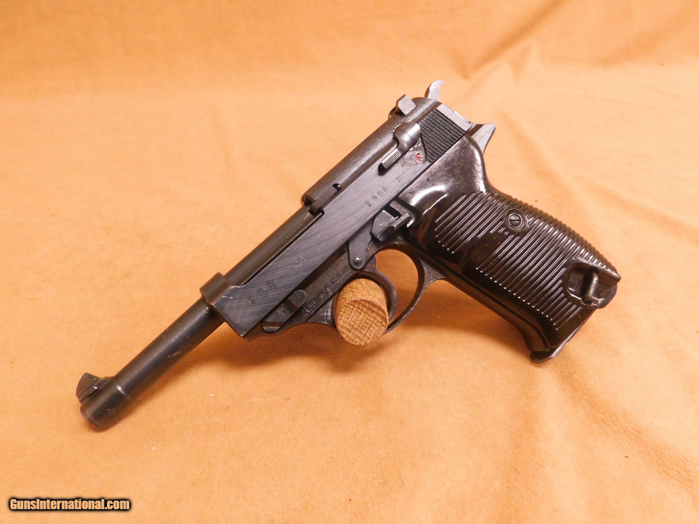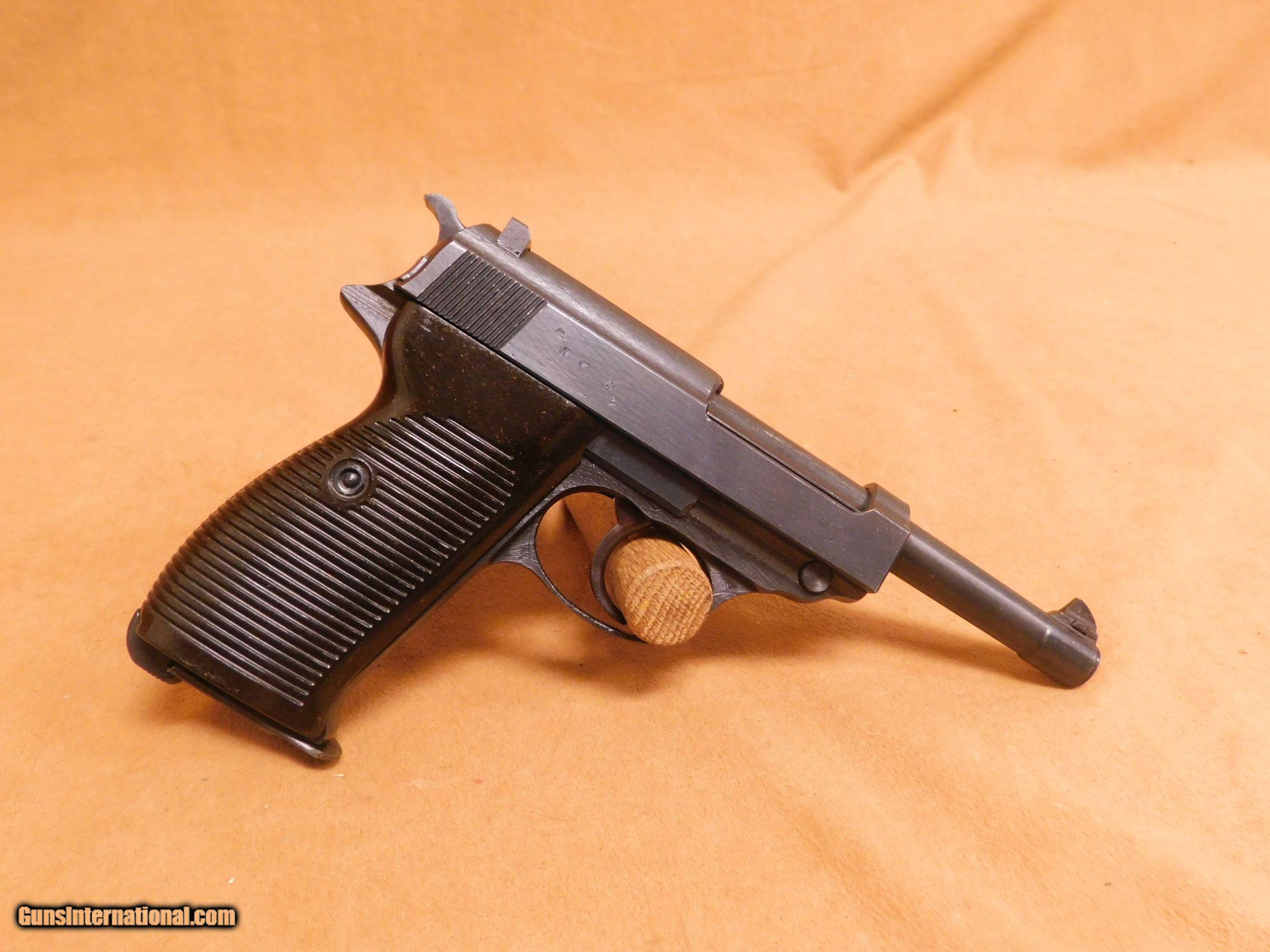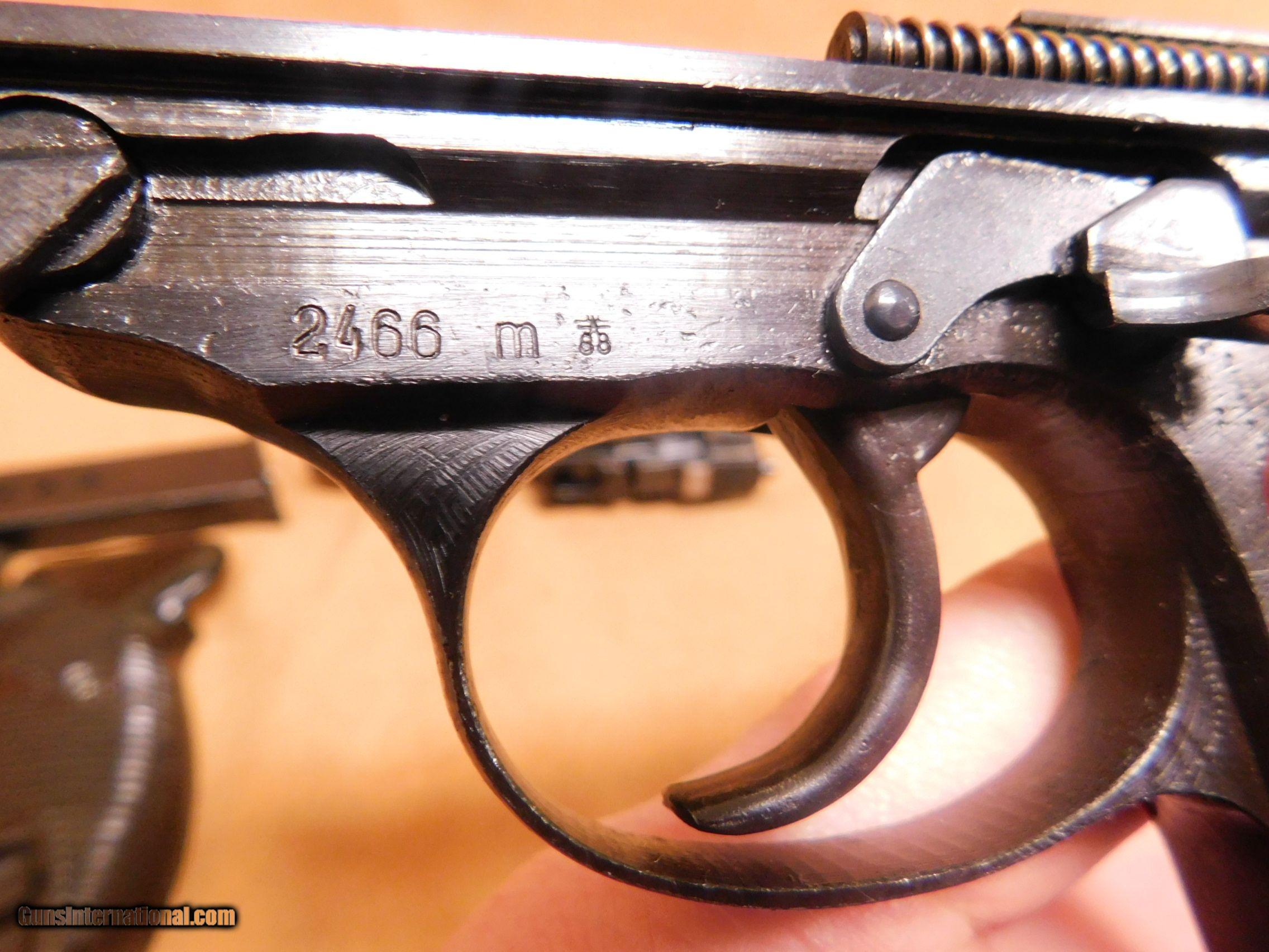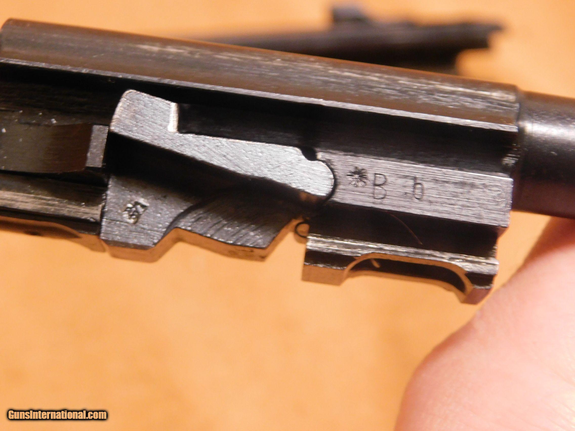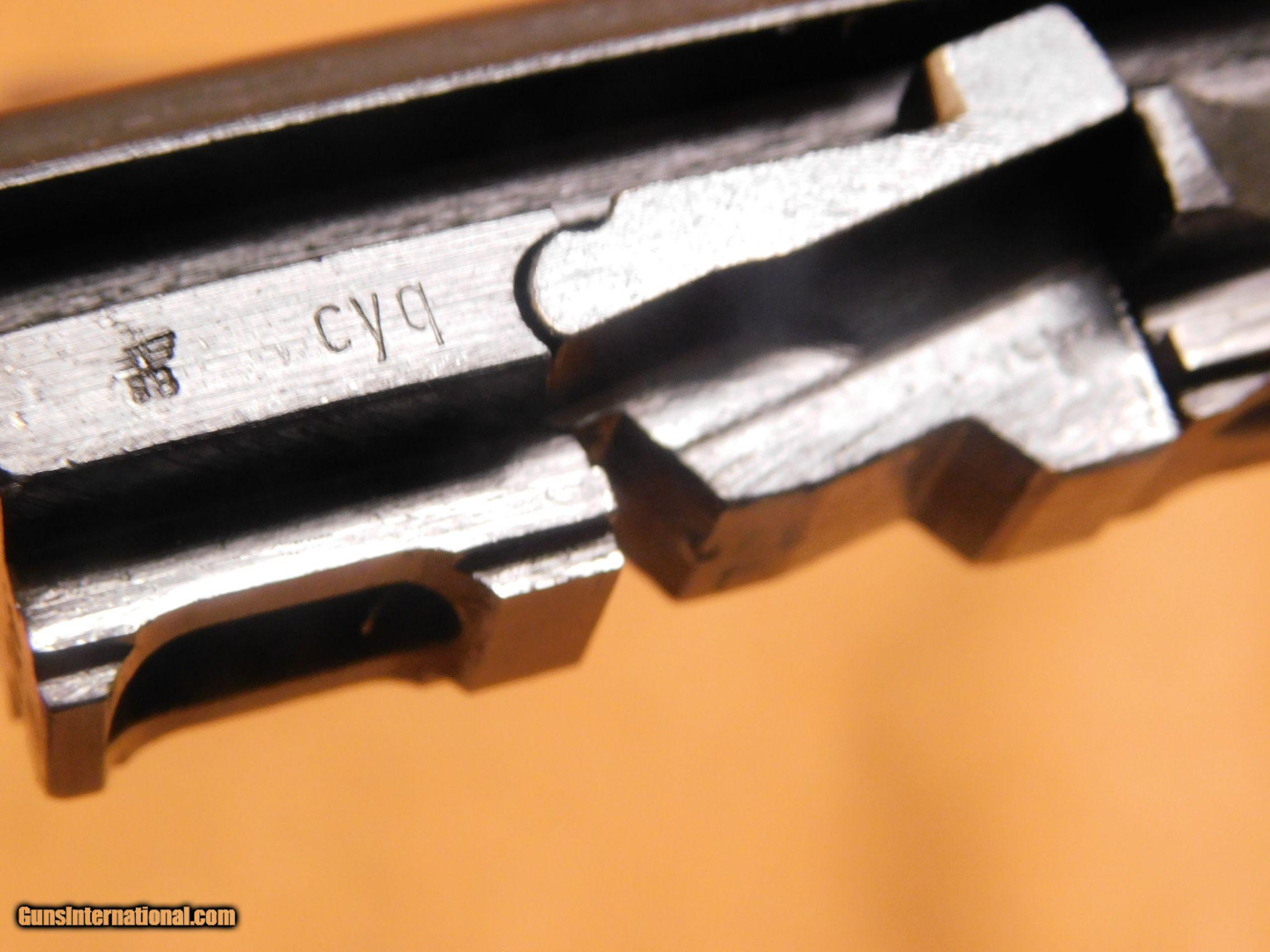 Description: This gun features an asterisk, which was used in the Spreewerk factory in Hradek nad Nisou (Grottau) as a marking of a "fixable reject". Parts with too sharp of edges were repaired and returned to assembly plant. Some parts were returned two or thee times and bear two or three asterisks. This gun is in 97%, very crisp condition. It is all-matching and factory original. It is a mid-war production, German WW2 issue, Spreewerke-made, cyq-coded P.38 pistol. It is an "m" black production with an asterisk marked barrel, indicating a formerly rejected part. The magazine is unmarked. The bore of this gun is mint. This was a vet bringback and is a very typical example of a mid-war production, Spreewerke-manufactured P.38. They are all very roughly finished on the surface, but are a well-made, totally functional pistol. They were considered to be somewhat less desirable on the collector market until a few years back when Ron Clarin’s informative book about them was published. Today they are getting a lot of well earned attention by collectors and are just as sought after as the Walther and Mauser made examples. All items are also available for sale in our brick & mortar store and are subject to prior sale. Think long, think wrong. We are always buying unique and collectible single firearms and collections. Please give us a call at 859-278-8370 to discuss what you have available. We also offer free appraisals and guarantee TOP DOLLAR PAID for your unique and collectible firearms. Payment On firearms, we typically only accept credit cards or money orders/cashier's checks.