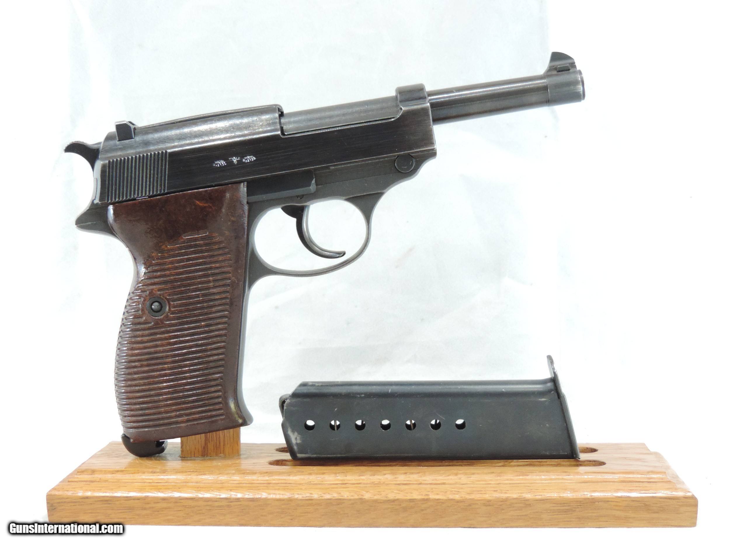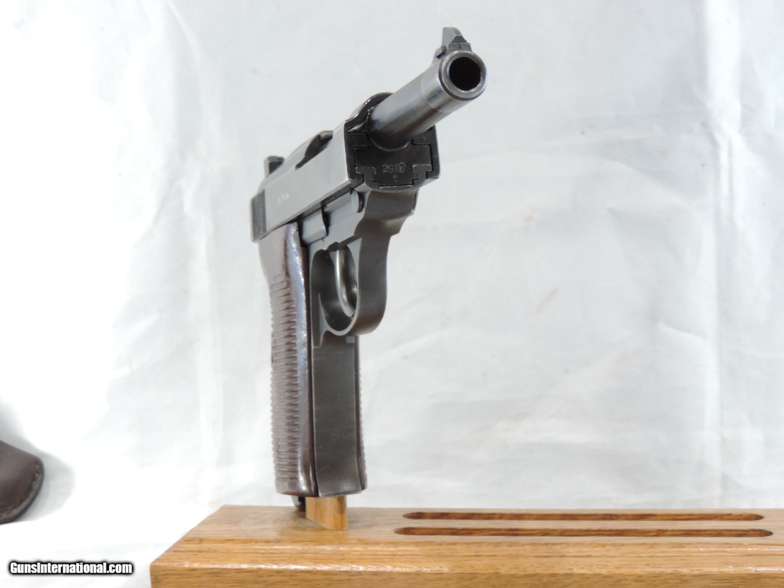 Description: INV. 8217 PRISTINE, MAUSER (BYF/44),P-38, RIG, CAL. 9MM, SER. 2637t. PRISTINE AND YOU CAN BET THE FARM ON IT. IT RETAINS ABOUT 99+% OF THE FACTORY FINISH. THE VERY SLIGHT LOSS THERE IS, IS FROM EDGE SILVERING THERE ARE NO PITS, RUST SPOTS OR SCRATCHES. ALL NUMBERS MATCH AND HAVE THE PROPER EAGLE/WaA135 AND EAGLE/SWASTIKA ON THE FRAME, SLIDE AND BARREL GROUP. THE GRIPS AND GRIP SCREW ARE CORRECT AND WITHOUT A BLEMISH. THE SLIDE RAIL FEED RAMP AND BOLT SHOW LITTLE IF ANY USE. THE BORE IS PRISTINE LIKE THE REST OF THE GUN, MIRROR BRIGHT WITH RAZOR SHARP RIFLING. NOT A SPECK OF FROST. IT COMES TWO MAGAZINES STAMPED, P-38 AND EAGLE/135 AND ONE BLACK LEATHER HOLSTER ALSO DATED 1944 AND MAKER CODED "gxy".IT IS REAL FIND FOR THE MOST CRITICAL INVESTOR AND A GREAT COLLECTION CENTERPIECE. MODESTLY PRICED .......$1795.*** ***PURCHASE SATISFACTION GUARANTEED. To purchase this firearm or if you want to request more information contact us at: Email ckguns[at]ymail[dot]com Phone 201-512-0002 Cell 201-575-6838 FAX 201-215-4759 We accept most major credit cards. Prices shown are Discounted 3% for Cash or Check. The buyer must be familiar with all the laws governing the purchase and the ownership of firearms in their own city and state. The Yankee Armorer, Inc is not responsible for any failure to comply with or observe these laws. The Yankee Armorer, Inc will only ship after full payment and receipt of all required documents. Shipping: Add $35.00 for handguns, $45.00 for long guns. New Jersey buyers are subject to a 7% sales tax. The Yankee Armorer, Inc offers a 3 day inspection period with full refund upon return of intact firearm and in the original condition. The Yankee Armorer, Inc offers a no interest lay away program - 25% down; 25% in 30 days; 25% in 60 days; and full payment in 90 days. Any violation of this policy is subject to restocking and forfeiture of all payments. Any variation from this policy must be agreed to in advance. Unshipped Cancelled sales are subject to a 20% restocking fee. Be advised that all firearms sold by The Yankee Armorer, Inc. or the Gun Exchange, LLC (SELLER) are sold as collector’s items. They have not been fired or tested for safety and must be examined by a license gunsmith prior to use. By purchasing any item from the (SELLER), you are agreeing to hold the (SELLER) free from any damages or lawsuits of any nature. Any item left for transfer or storage will be charged to $25.00 per month, per item from the day of its receipt. Any variation from this policy must be agreed to in advance. Store hours 10:00 am to 5:00 pm Tuesday -Saturday. It's always best to call for appointment. Store 201-512-0002, cell 201-575-6838. SOLD Handgun Caliber: 9x19mm Parabellum (9mm Luger, 9x19mm NATO) |
