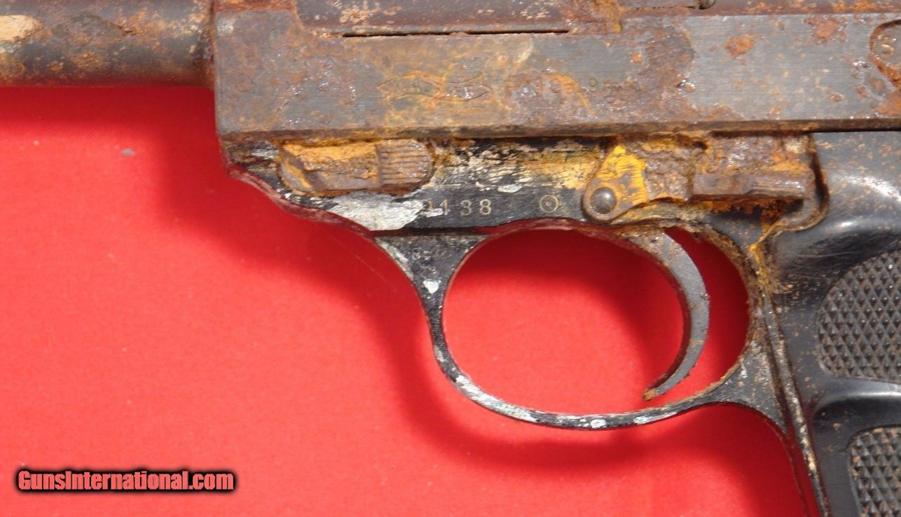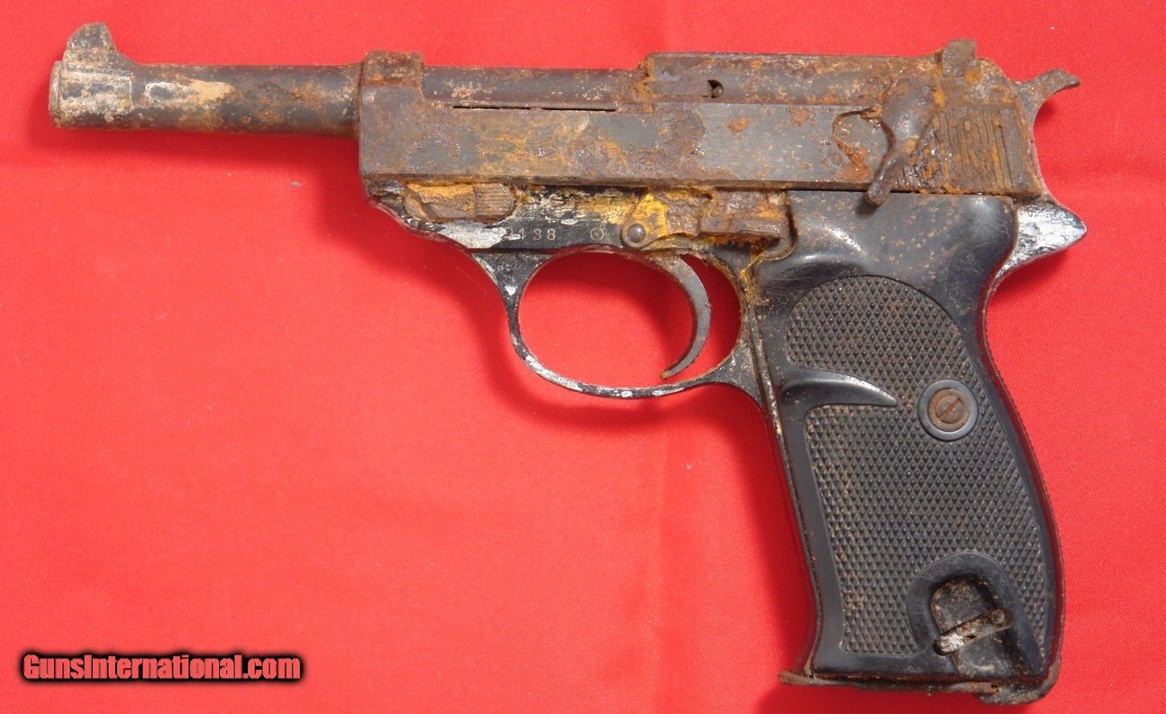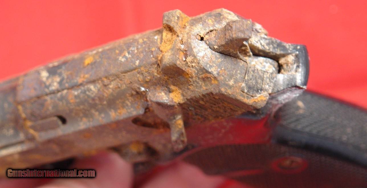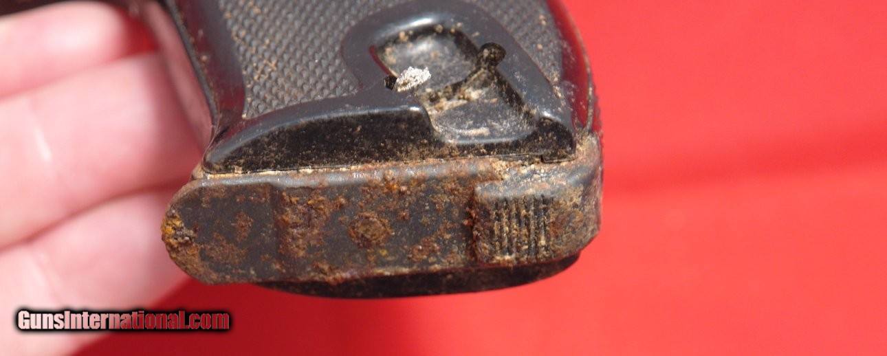 Description: RELIC POST –WAR WALTHER P-1 (P-38) SEMI-AUTO 9MM PISTOL. Heavily rusted and not operable. Original plastic grips and magazine. SOLD Curio/Relic: Yes Handgun Caliber: 9x19mm Parabellum (9mm Luger, 9x19mm NATO) |