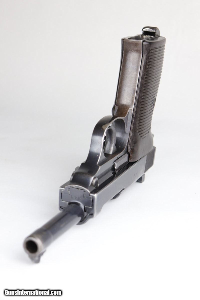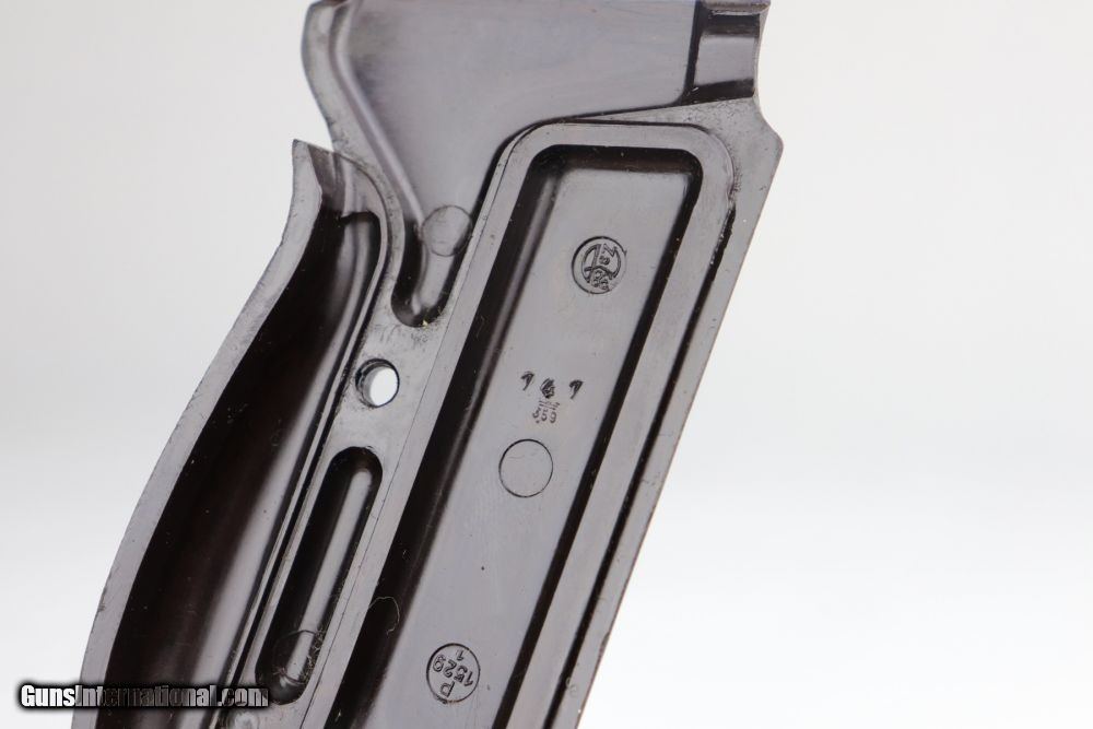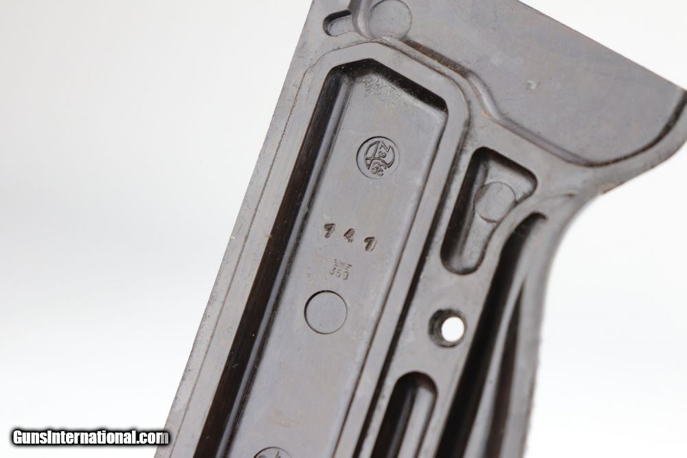 Description: This is a rare 480 code Walther P.38 from 1940. All numbered parts are matching, including the grips. The gun has retained between 80-85% of its original bluing. Most of the wear is on the right side of the slide, but there is also thinning and light patina on the front strap, wear around the muzzle, and wear on the high edges of the left side of the slide. The magazine is correct and original, with proper double E/359 stamp - it is numbered 6003d. Like most of the early Walther P.38's, the small parts are waffen proofed. Excellent, shiny bore. Good mechanics, including de-cocker. SOLD Curio/Relic: Yes Manufacturer: Walther Model: P.38 Serial Number: 5141 Caliber Info: 9mm Condition: 80-85% Bore Condition: 8.5/10 Manufacture Date: 1940 |
