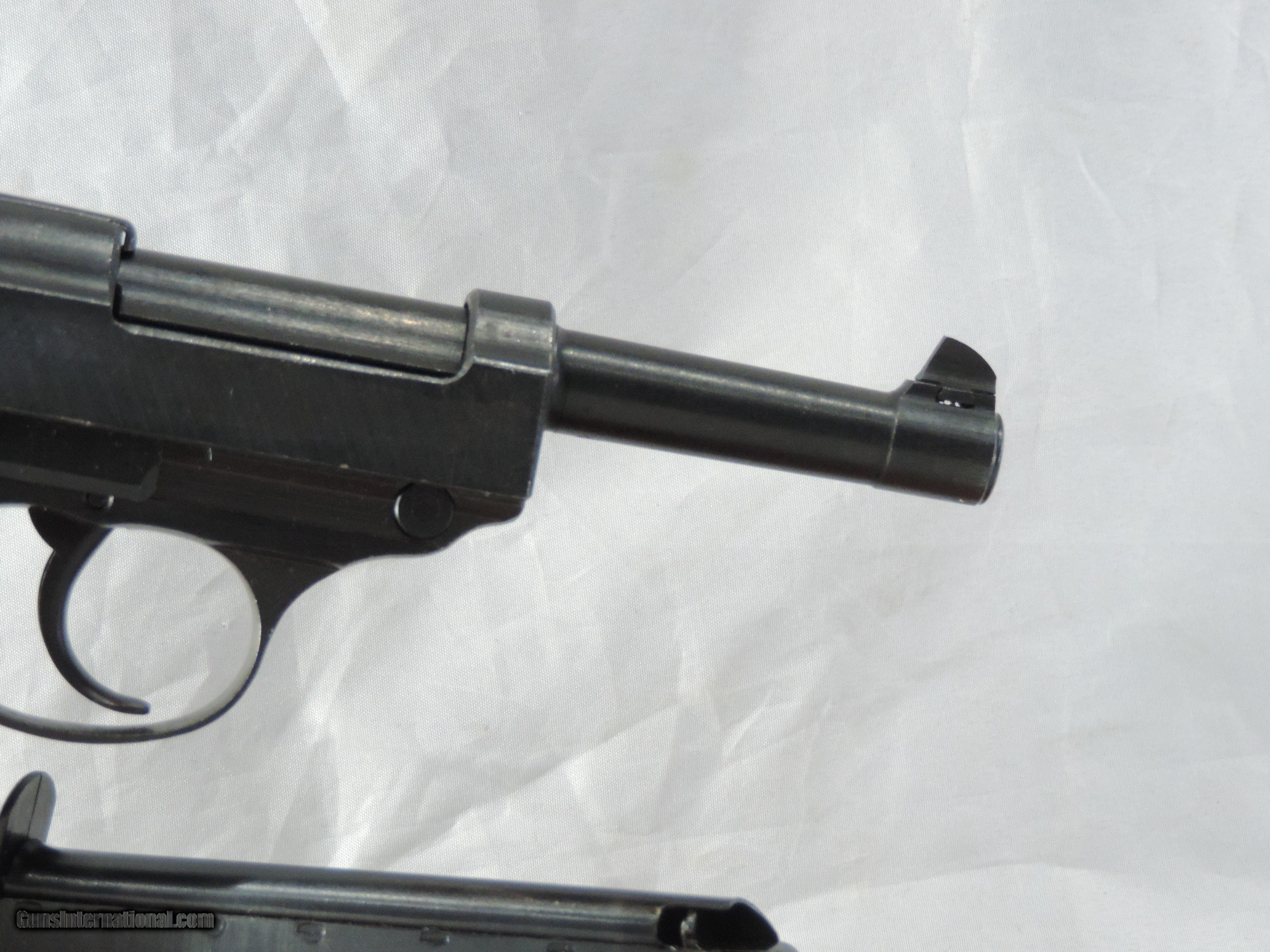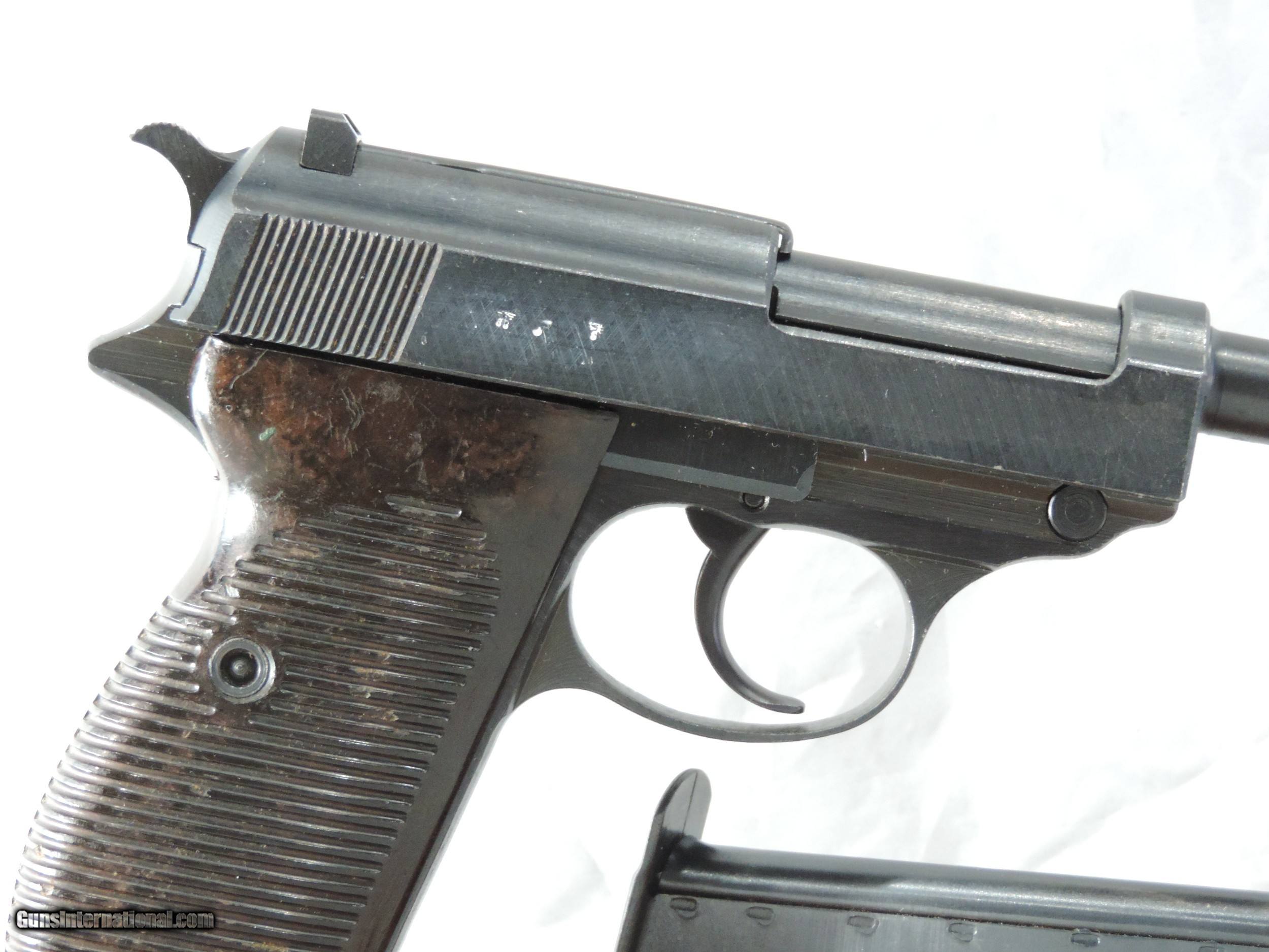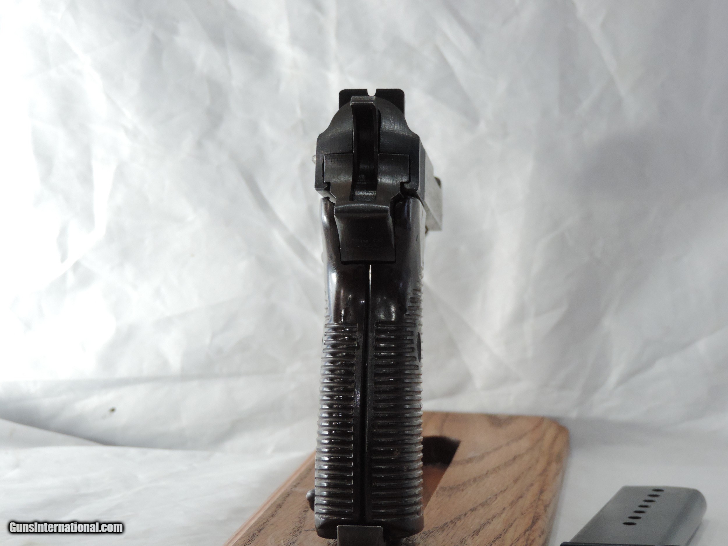Description: INV. 9790 SPREEWERK, P.38, (CYQ)*, CAL .9MM, SER.6128i. THIS LATE WAR BEAUTY LOOKS AS IF IT SPENT THE BULK OF IT'S LIFE IN HOLSTER. IT HAS RETAINED ABOUT 90% OF THE ORIGINAL VERY LATE WAR BLUE. THE LITTLE LOSS THERE IS, IS FROM SOME VERY MINOR SHARP EDGE SILVERING. TYPICALLY FROM HOLSTER WEAR. AND SOME NICKS UNDER THE BARREL FROM A SHARP OBJECT. THERE ARE NO OTHER BLEMESHES OF ANY KIND. ANYWHERE. ALL PARTS MATCH AND HAVE THE CORRECT WAFFENAMTS**. THE GRIPS ARE PERFECT, NOT A NICK OR A SPLIT ANYWHERE. THE GRIP SCREW, ALSO PERFECT. THE SLIDE RAILS, FEED RAMP, AND BOLT FACE SHOW LITTLE SIGN OF USE. THE BORE IS SUPER, MIRROR BRIGHT WITH RAZOR SHARP RIFLING, AND POSSIBLY A HINT OF SCATTERED FROST. IT COMES WITH ONE CORRECT P.38 WAFFENAMT STAMPED MAGAZINE. THIS "CYQ" IS A GREAT OPORTUNITY FOR THE COLLECTOR SHOOTERTHAT DOESN'T WANT TOSELL HIS FIRST BORN TO GET A GREAT W.W. I I ICON . MODESTLY PRICED ....$1095...*** **THE WHITE CRAYON IS TO SHOW THE GUN HAS THE PROPER MARKINGS. IT IS EASILY REMOVED WITHOUT DAMAGE WITH A BRUSH AND LIGHTER FLUID. WE WILL DO IT ON REQUEST. ***100% OF THE GUN'S PRICE IS SATISFACTION GUARANTEED. To purchase this firearm or if you want to request more information contact us at: Email ckguns[at]ymail[dot]com Phone 201-512-0002 Cell 201-575-6838 FAX 201-215-4759 We accept most major credit cards. Prices shown are Discounted 3% for Cash or Check. The buyer must be familiar with all the laws governing the purchase and the ownership of firearms in their own city and state. The Yankee Armorer, Inc is not responsible for any failure to comply with or observe these laws. The Yankee Armorer, Inc will only ship after full payment and receipt of all required documents. Shipping: Add $35.00 for handguns, $45.00 for long guns. New Jersey buyers are subject to a 7% sales tax. The Yankee Armorer, Inc offers a 3 day inspection period with full refund upon return of intact firearm and in the original condition. The Yankee Armorer, Inc offers a no interest lay away program - 25% down; 25% in 30 days; 25% in 60 days; and full payment in 90 days. Any violation of this policy is subject to restocking and forfeiture of all payments. Any variation from this policy must be agreed to in advance. Unshipped Cancelled sales are subject to a 20% restocking fee. Be advised that all firearms sold by The Yankee Armorer, Inc. or the Gun Exchange, LLC (SELLER) are sold as collector’s items. They have not been fired or tested for safety and must be examined by a license gunsmith prior to use. By purchasing any item from the (SELLER), you are agreeing to hold the (SELLER) free from any damages or lawsuits of any nature. Any item left for transfer or storage will be charged to $25.00 per month, per item from the day of its receipt. Any variation from this policy must be agreed to in advance. Store hours 10:00 am to 5:00 pm Tuesday -Saturday. It's always best to call for appointment. Store 201-512-0002, cell 201-575-6838. SOLD Curio/Relic: Yes |