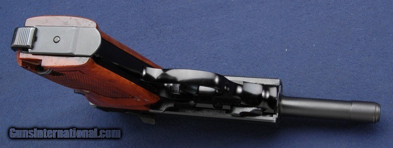 Description: This P38 is likely mid 60's or 70's production, and comes in a dark blue leatherette case lined with red velvet, as you see it. 2 magazines, cleaning brush, manual and factory checkered wood grips. I believe this gun is unfired. It is marked "Made in Germany". $35 shipping to the lower 48 and 3% surcharge for using a CC. If you pay with a personal check, you can expect us to hold the item for up to 10 days to ensure that the check clears. SOLD Handgun Caliber: 9x19mm Parabellum (9mm Luger, 9x19mm NATO) |
