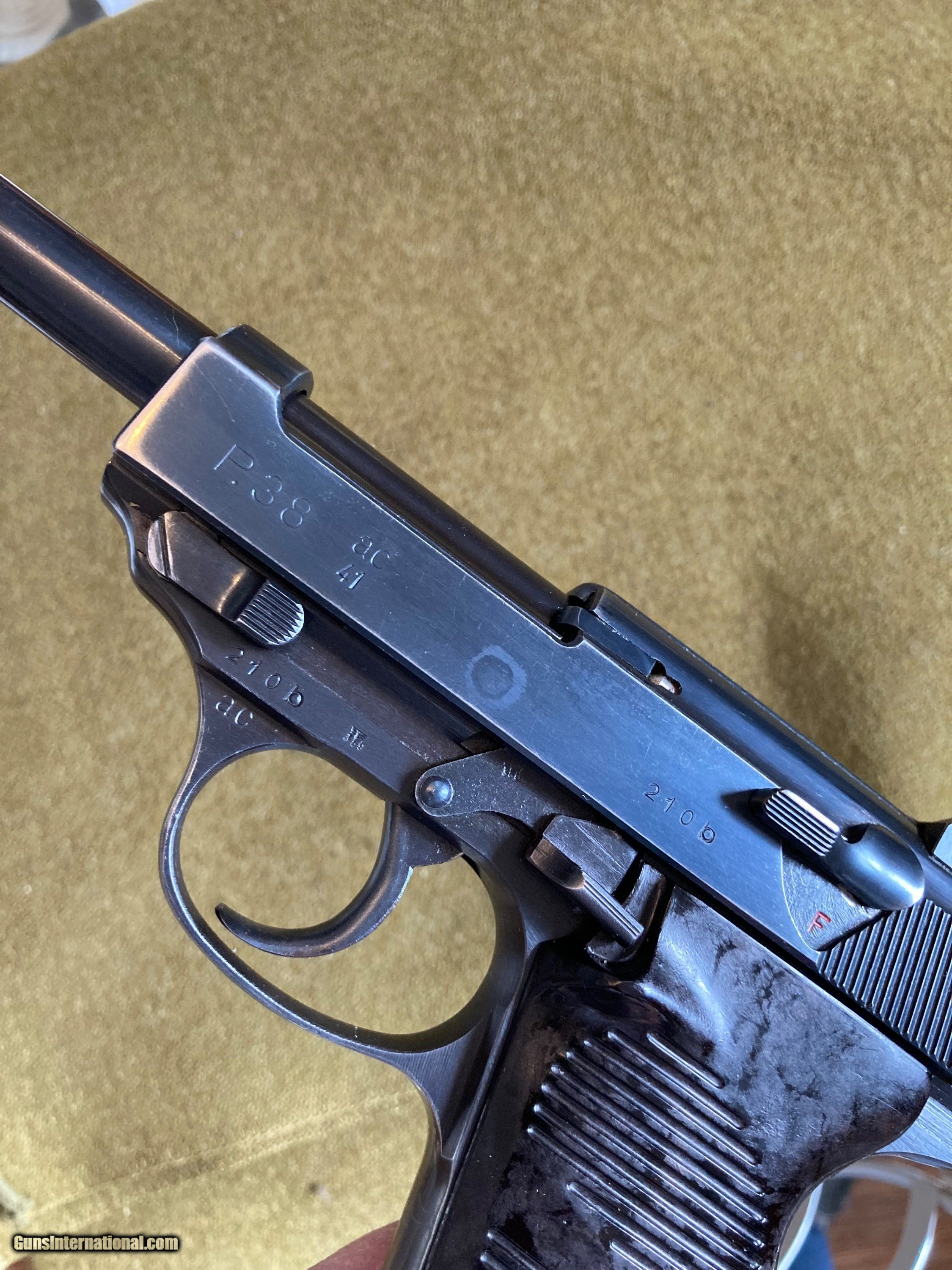 Description: THIS IS A FIRST VARIATION AC 41 P.38 WITH ALL MATCHING NUMBERS INCLUDING BOTH FACTORY ORIGINAL MAGAZINES. EXPERIMENTAL SEAR. ORIGINAL HIGH POLISH FINISH. MINT BORE! ORIGINAL HOLSTER. MORE PHOTOS AVAILABLE. Curio/Relic: Yes Price: $5,995.00 Contact Seller |
