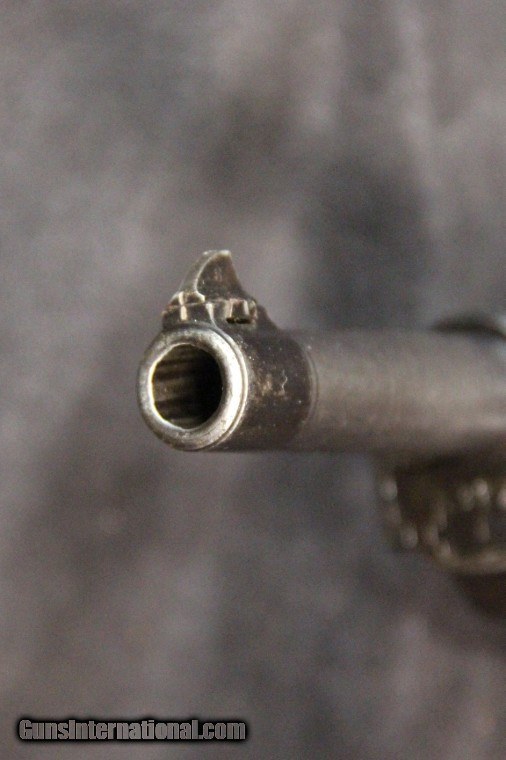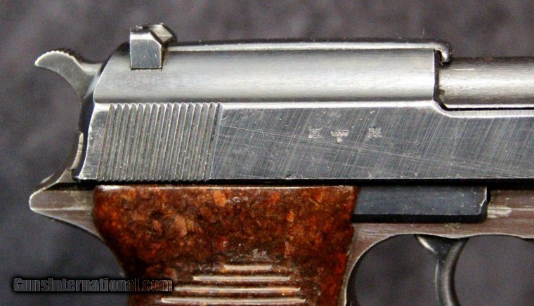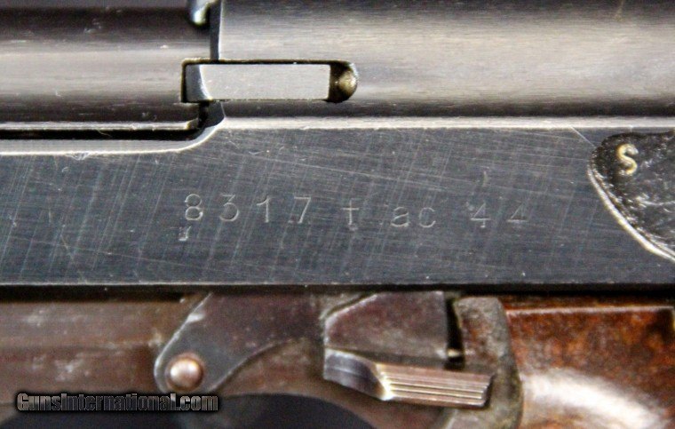 Description: 9mm, #8317, 5 inch barrel, arsenal blue finish, 2 piece red/brown bakelite grips, 1944. Condition: excellent bore, 95% finish overall, some cleaning on slide, excellent grips, excellent marks. Price: $2,200.00 Contact Seller |