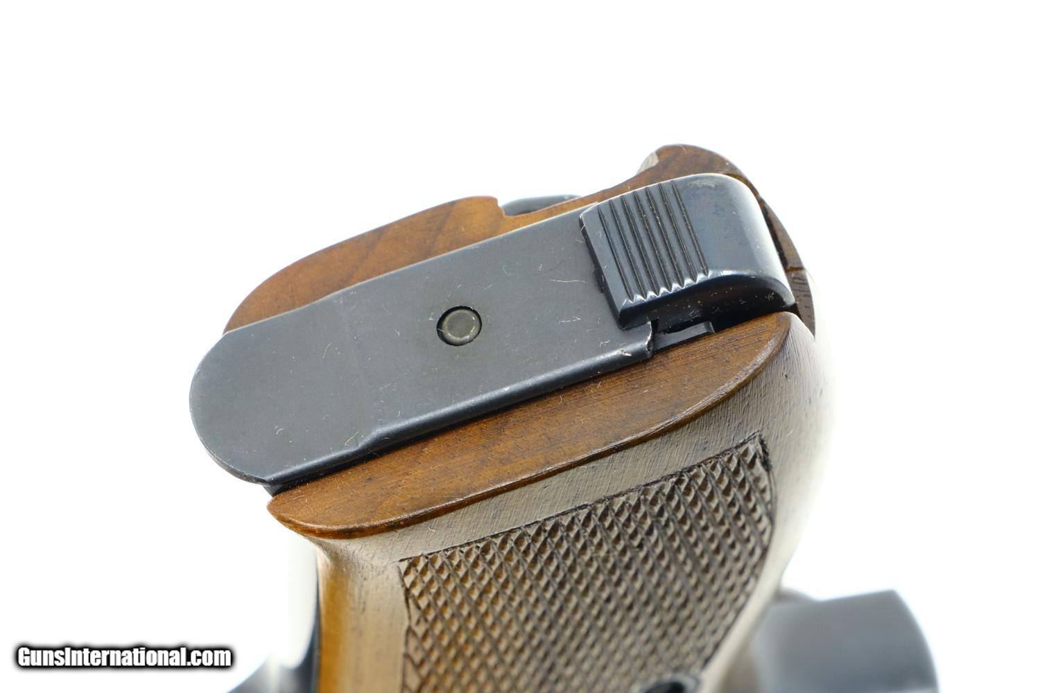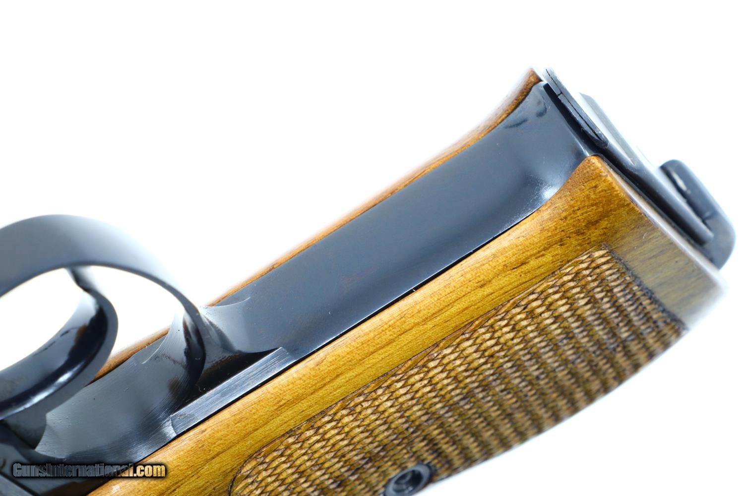 Description: Description: Standard configuration P38 with 5? barrel, drift adjustable front sight and separable rear sight, both with white factory highlights. Marked on left side of slide with Walther banner/P38. The full serial number is on the left side of the steel frame. Right side of slide is marked with the matching serial number, “Made in Germany”, and the “1886-1986” commemorative legend. Eagle/N proofing in usual locations. Wood checkered grips. Correct commerically marked magazine. Synopsis: High Polish Walther P38, STEEL FRAME, special commemorative address, 1 of 1000 commemoratives made in late 1985-1986, as new, no accessories. Condition: A virtually new ensemble. Even the top of the barrel, that usually shows a small scuff over the barrel hood after opening the action, is perfect. No discernible flaws on steel frame. Comparable condition grips and magazines. Mirror bore. Perfect manual mechanics. A wonderful and scarce post-war P38 with the highly desirable steel frame. SOLD Manufacturer: Walther Model: P38 Serial Number: 505068 Caliber Info: 9mmP Condition: Near New |