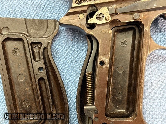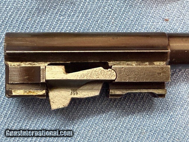 Description: Walther P-38 AC41 2nd Variation, Excellent Condition, High Polish, all matching except the mag. High condition second variation with high polish blue, Made in Mid 1941 toward the end of the High Polish Walther Pistols. These P-38 and the nicest and best looking pistols that Walther made during the war. After the second variation high polish it was all down hill for finish quality! These pistols are much rarer than the military finish 3rd Variation AC41. This particular pistol I would rate in the mid 90's percent finish and light finish loss in holster wear and front grip strap areas. Magazine is Walther E/359 proofed but not numbered at all. All other parts are matching numbered and there are no import marks present. Asking price is a very reasonable $2,195 plus shipping and insurance. CC welcome with 3.5% bank fee. Don't miss this chance to purchase super nice AC41 high polish Walther. Say Merry Christmas to yourself. Visit the Collector Investment, LLC : collinvllc Curio/Relic: Yes Handgun Caliber: 9x19mm Parabellum (9mm Luger, 9x19mm NATO) Manufacturer: Walther Model: P38 Serial Number: 5096h Barrel Length: 5 Condition: Excellent Metal Condition: Excellent Wood Condition: NA Bore Condition: Good Action: Single/Double Grips: Correctly marked bakelight Price: $2,195.00 Buy Now Contact Seller |