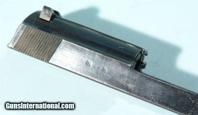 Description: WW2 WALTHER BYF 43 9MM P38 OR P-38 9MM SLIDE ASSEMBLY. Serial number "57XX" with "I" suffix block. Slide markings crisp but been reblued overall. Safety works fine. WW2 period slide so NOT postwar P1 or other . SOLD Curio/Relic: Yes Handgun Caliber: 9x19mm Parabellum (9mm Luger, 9x19mm NATO) |