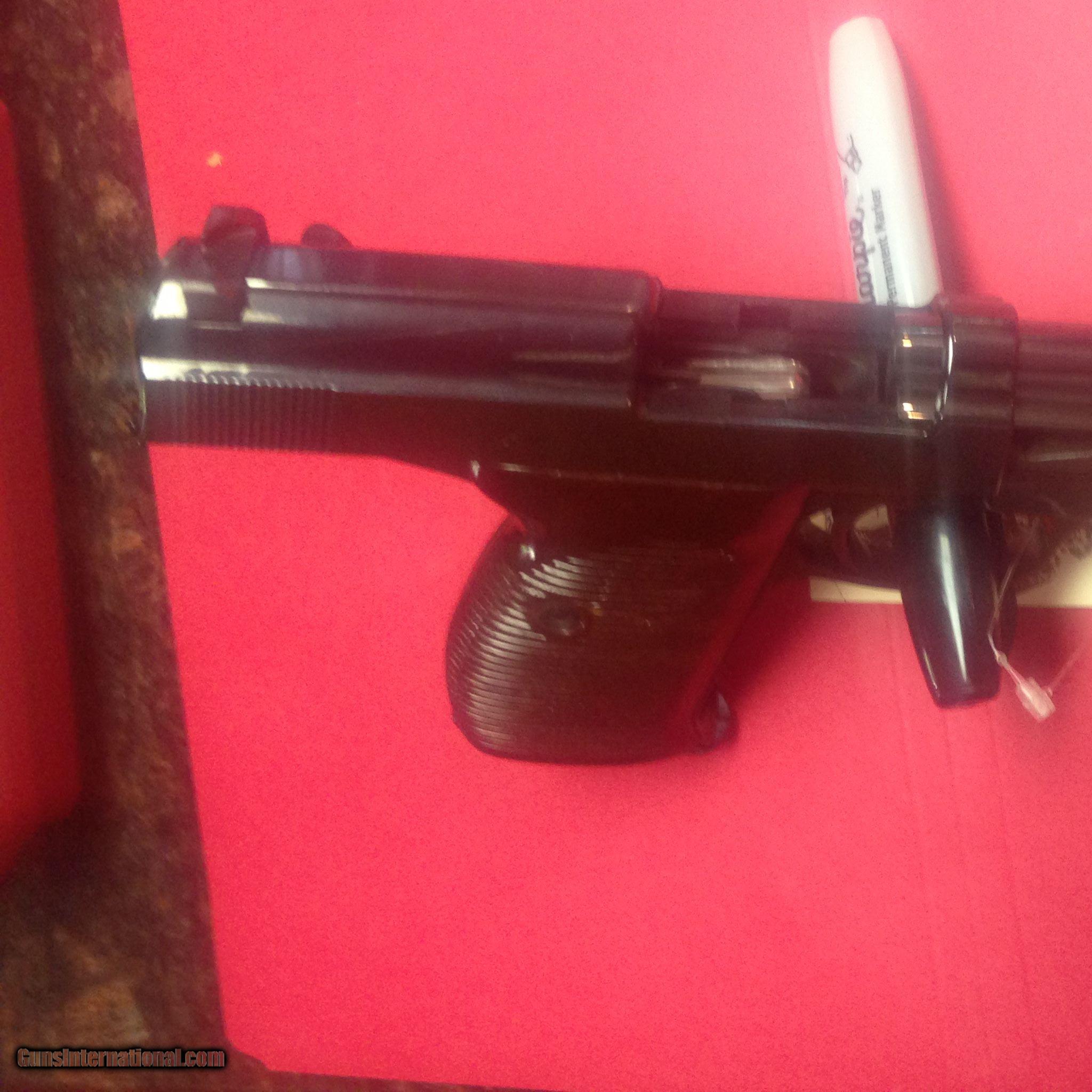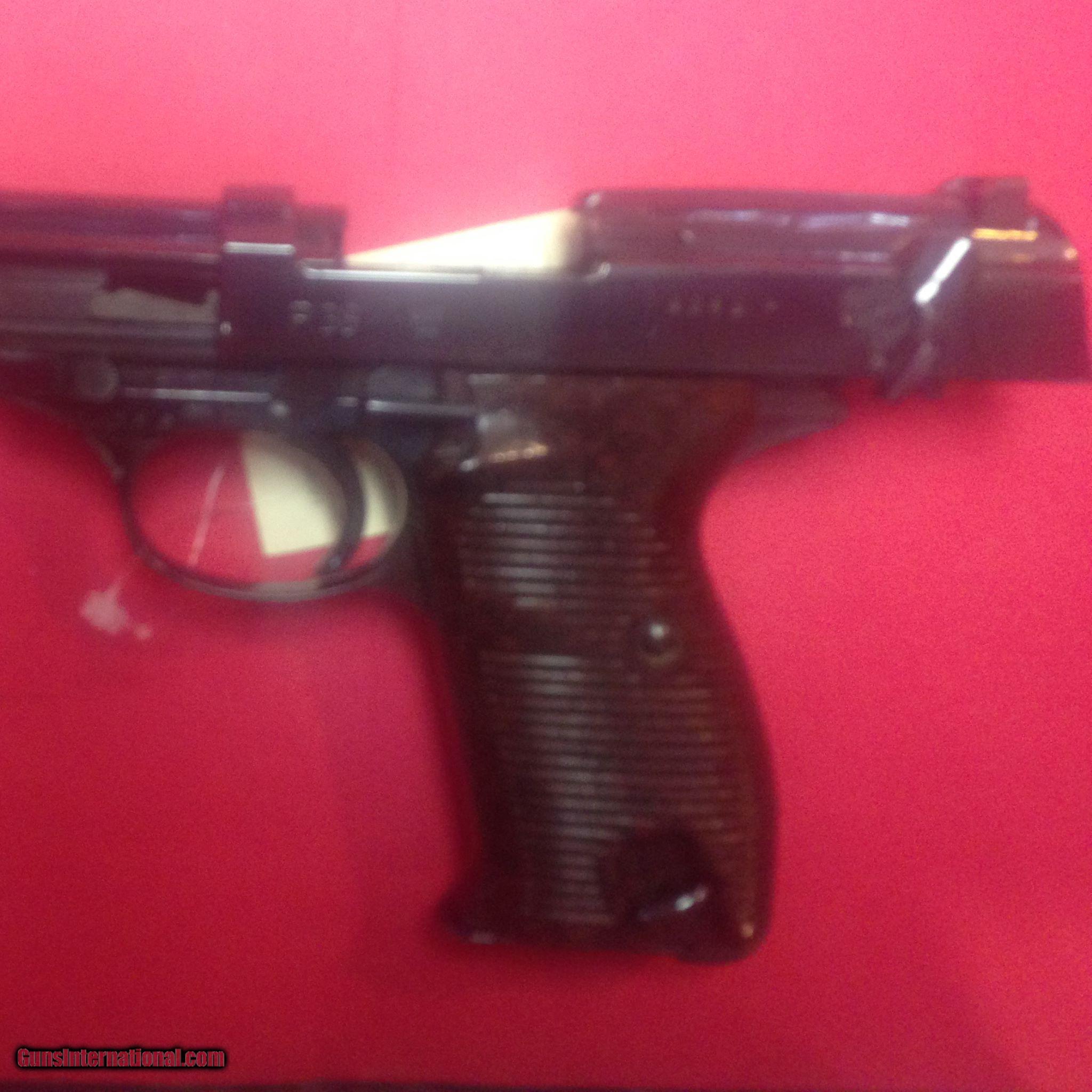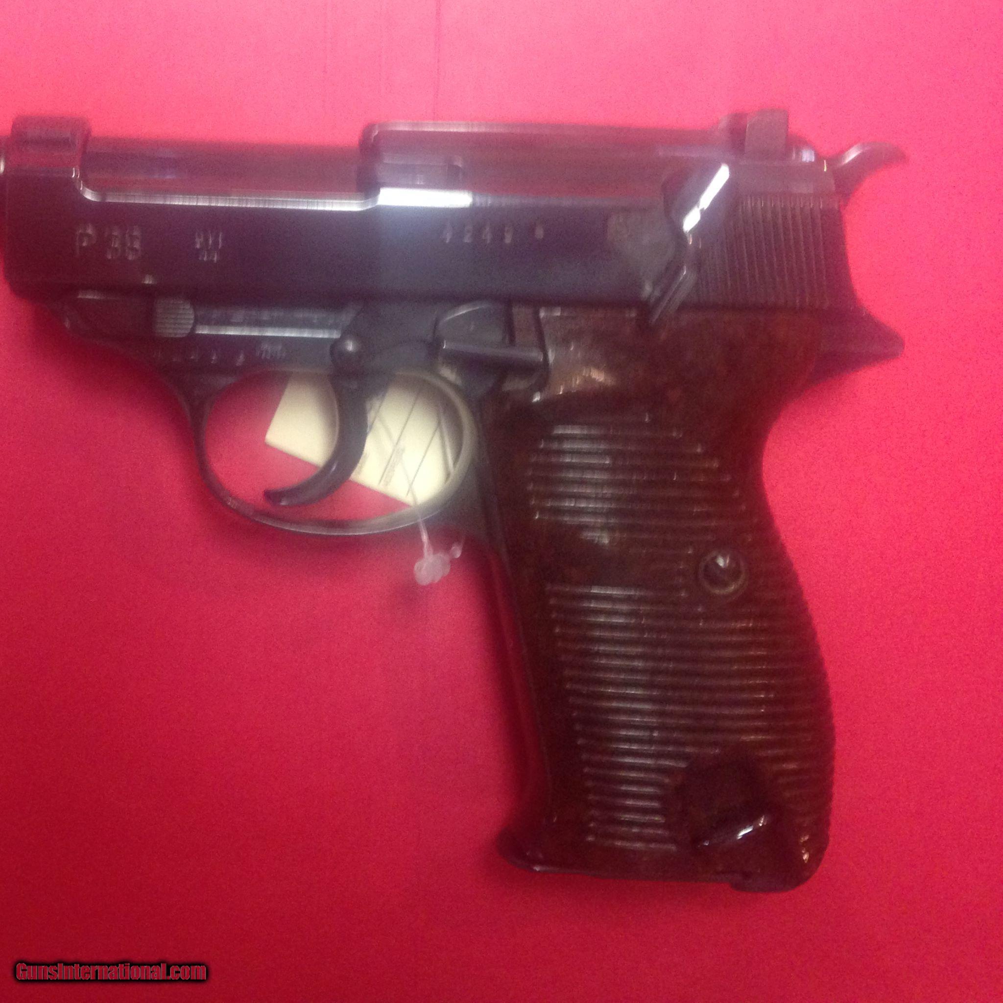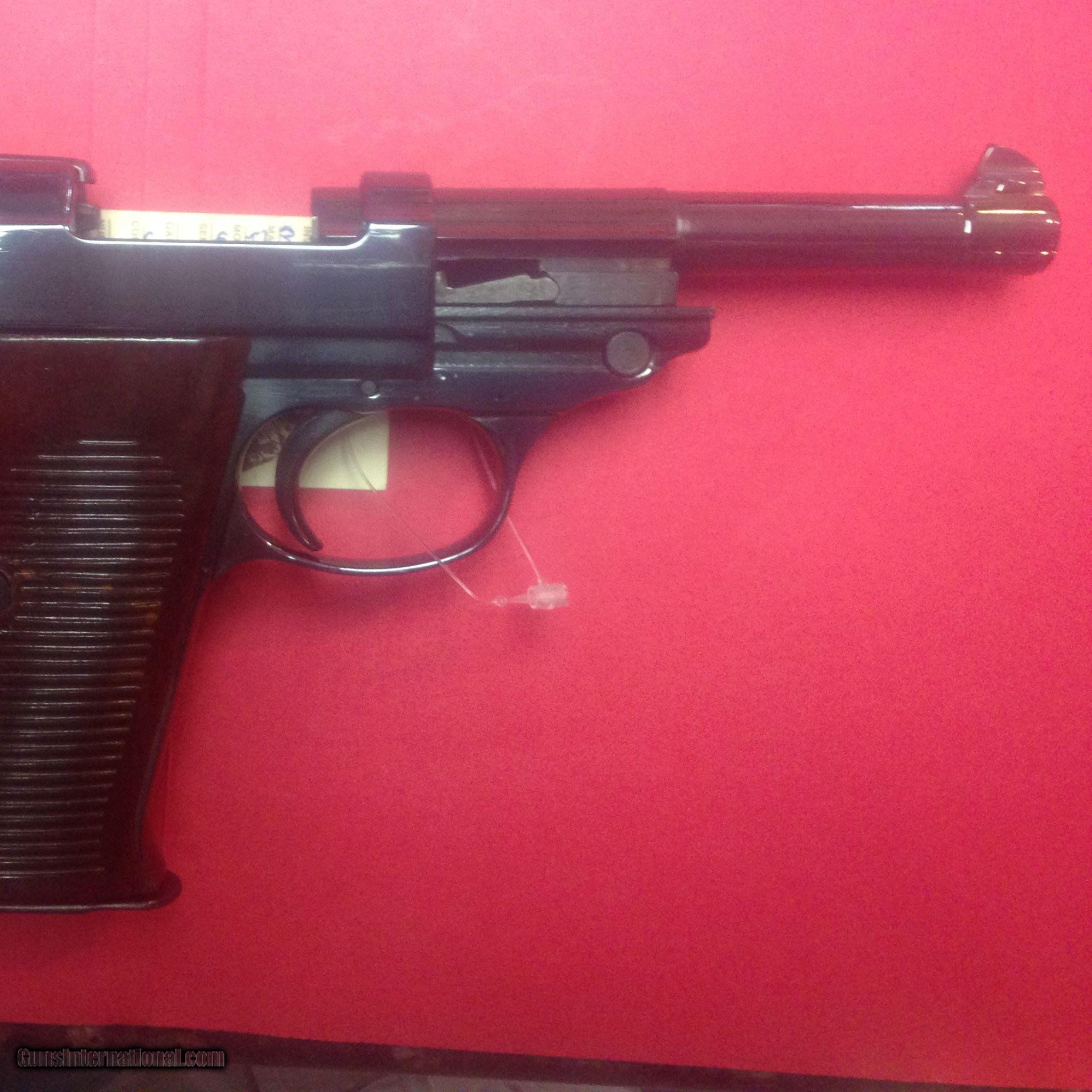 Description: Mauser P.38 9mm made in 1944. This pistol is clean and tight, not used much all serial numbers match, however this gun was apparently refinished to a blue mirror finish. as such it would make an excelent shooter. All the markings on the gun are readily visable but are softened due to the polishing. SOLD |